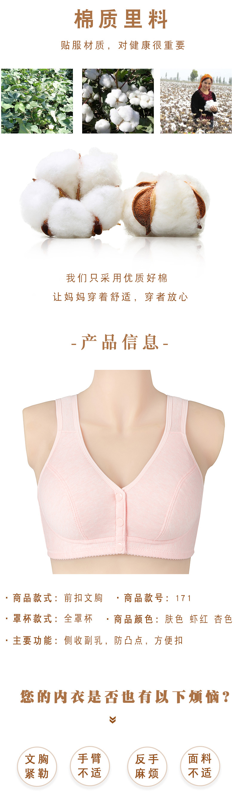 Бюстгальтер среднего и пожилого возраста с пряжкой спереди, нижнее белье, новый женский мягкий хлопок, большие размеры без стального кольца, глянцевое нижнее белье для женщин