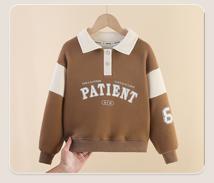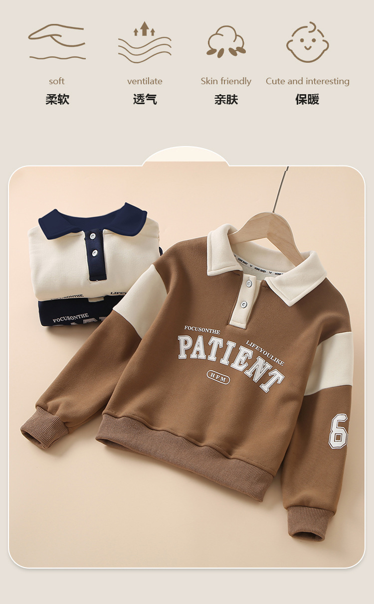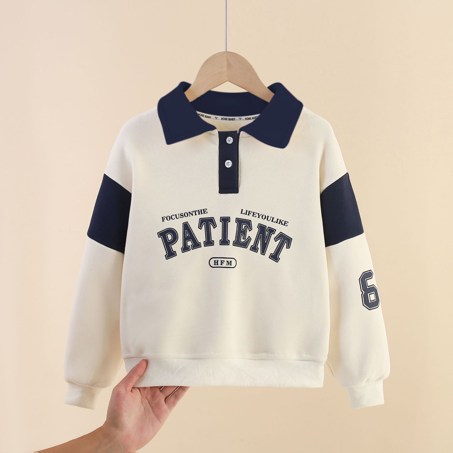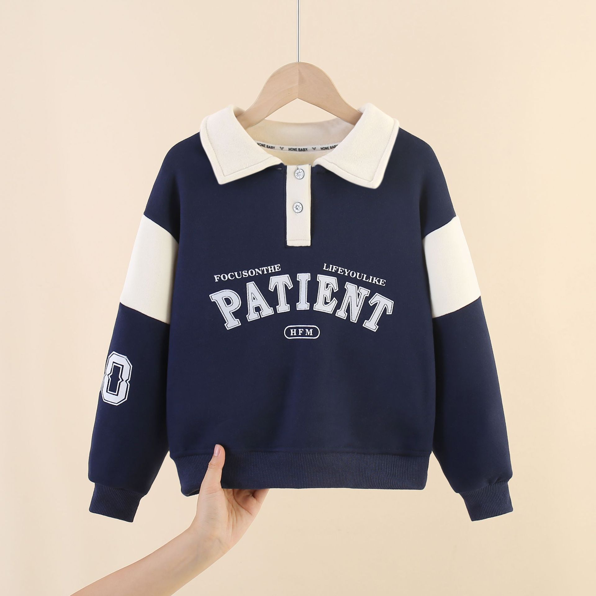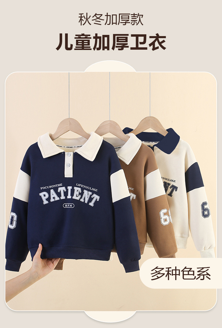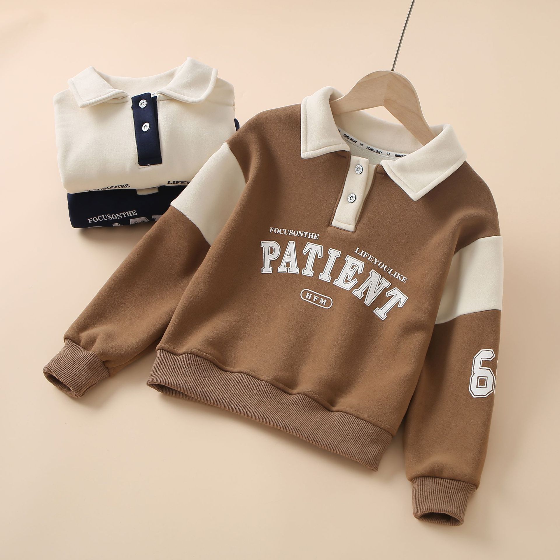 Детская толстовка-поло с длинными рукавами, воротником, утепленная, с мультяшным принтом, стильный топ для мальчиков, осенне-зимний теплый пуловер для малышей