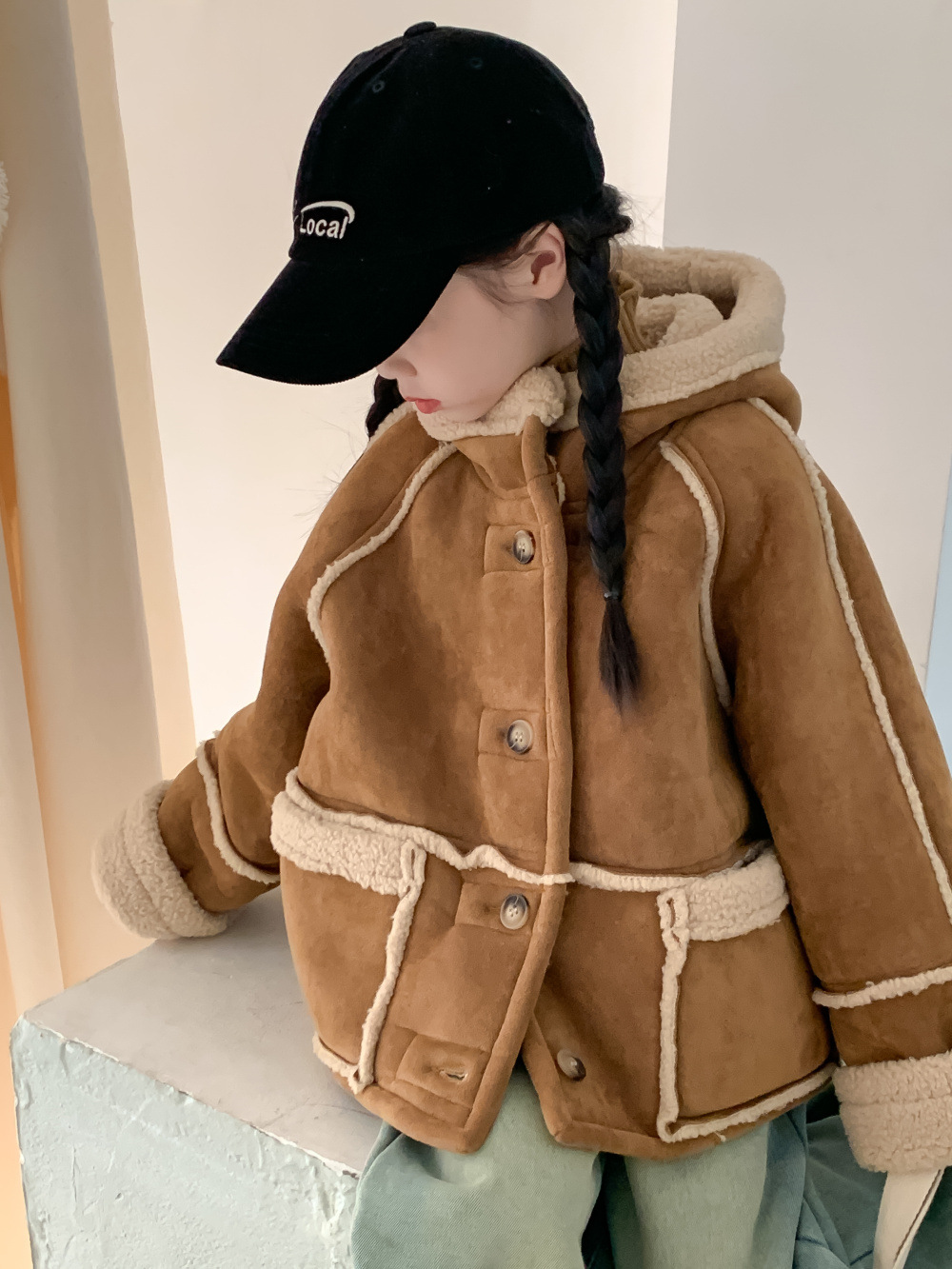 Детская верхняя одежда 2025 года, зимний стиль, девичьи куртки с капюшоном и меховой отделкой, утепленные короткие теплые куртки для детей.