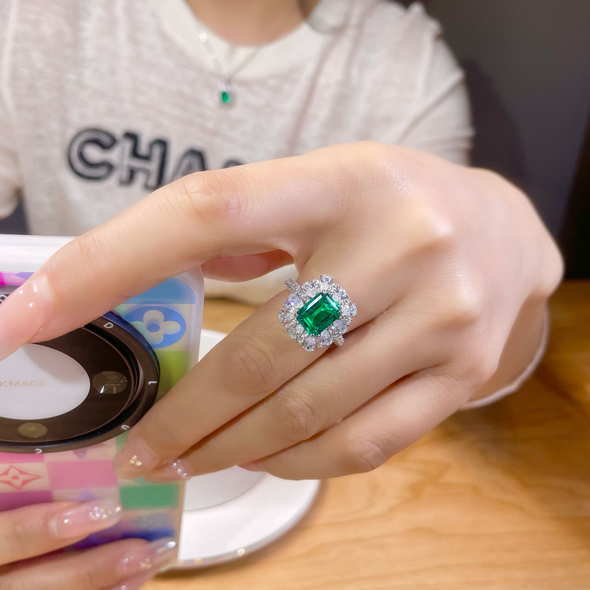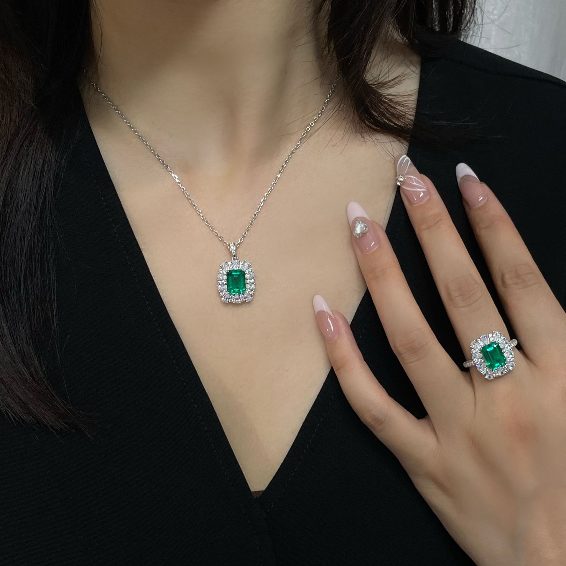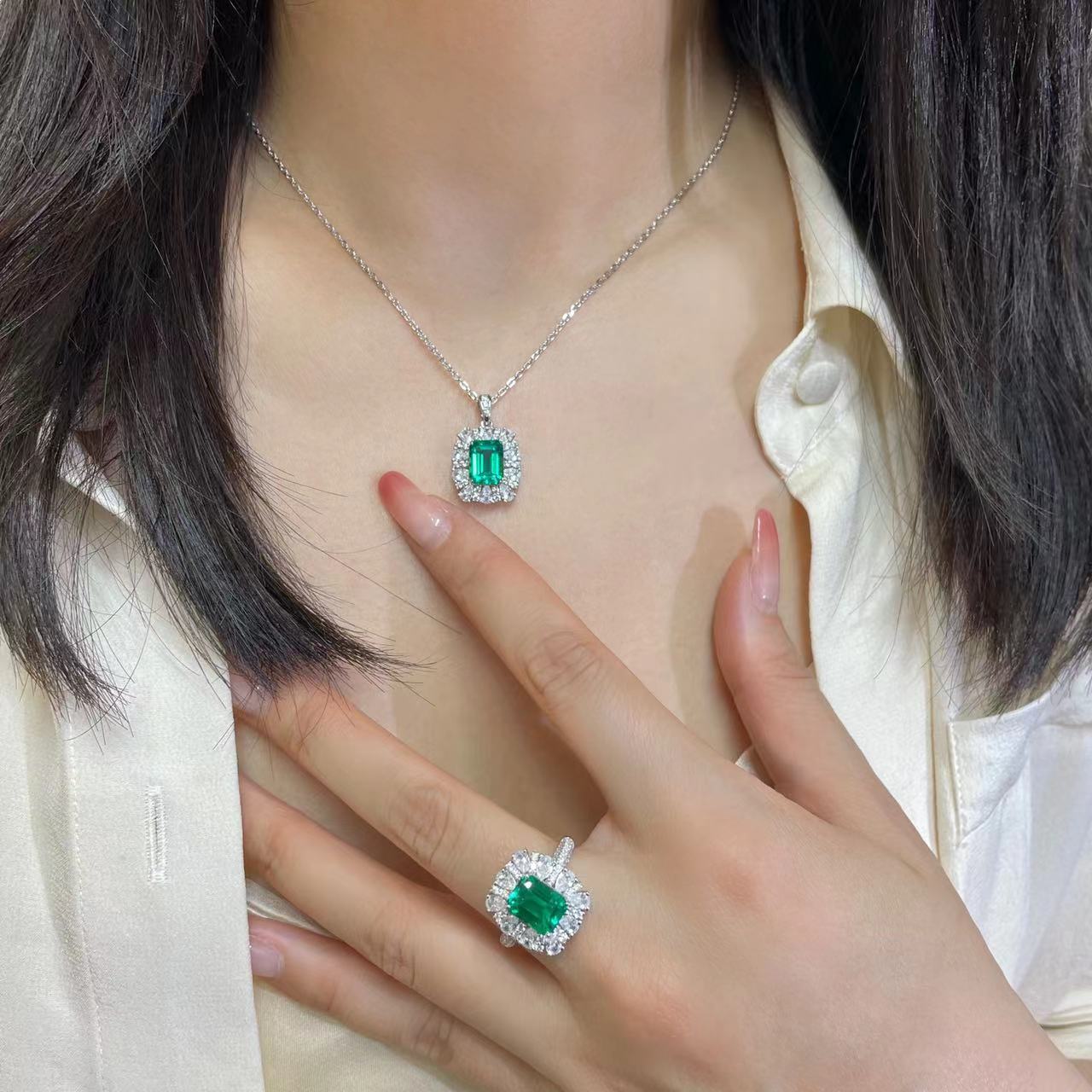 Колье и кольцо с изумрудами из колумбийского культивированного камня весом 3 карата, роскошные украшения из натурального камня цвета дерева премиум-класса