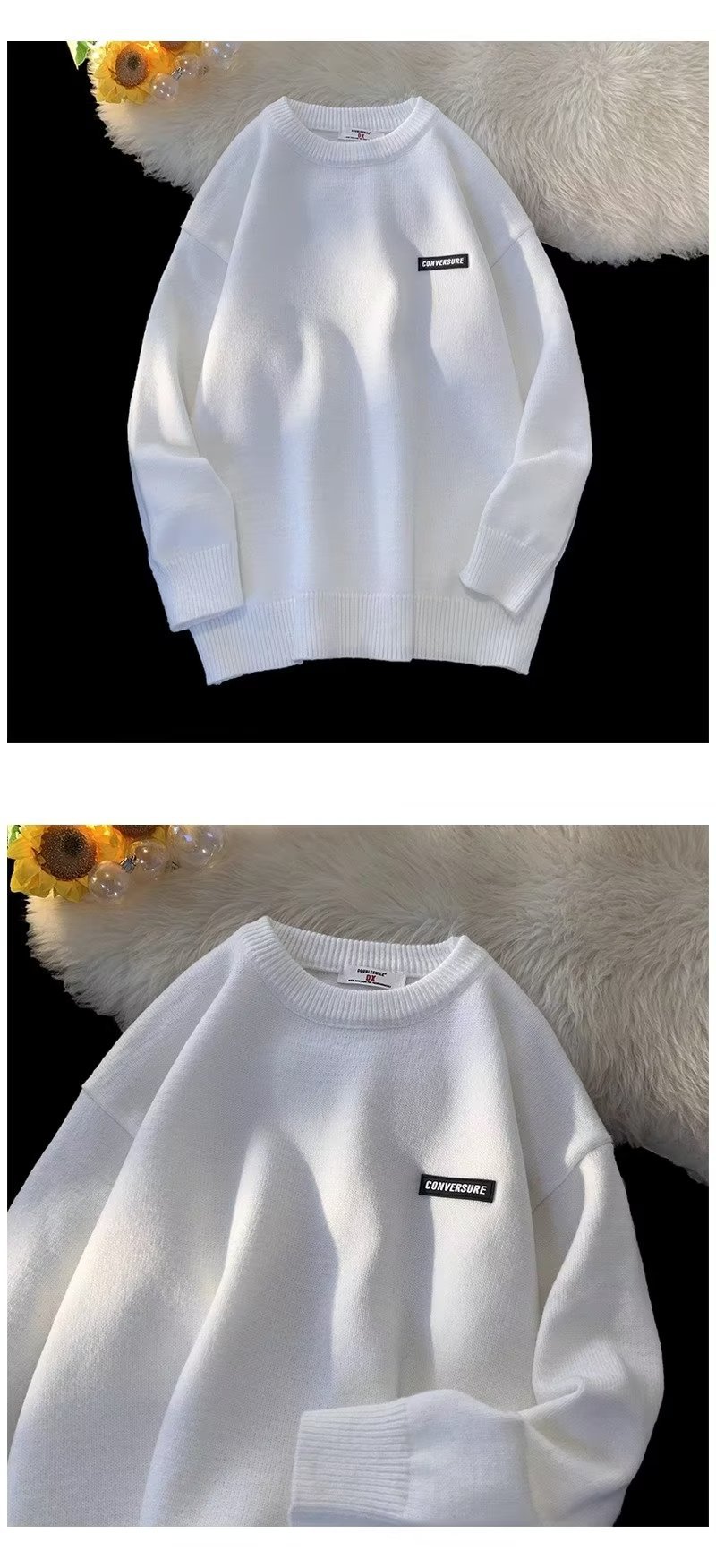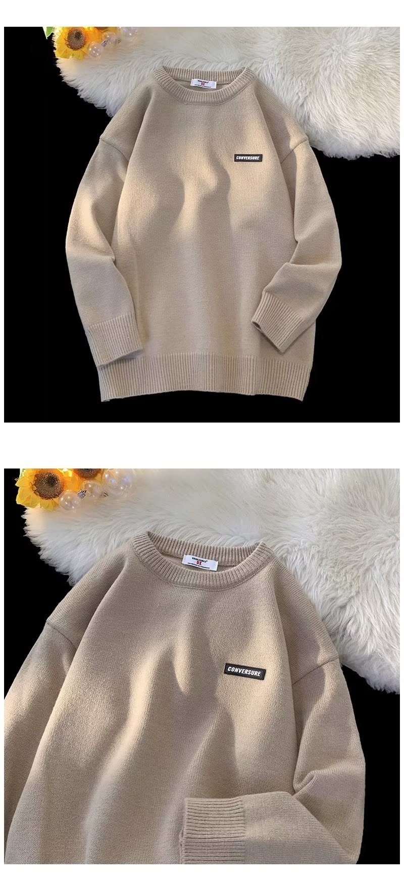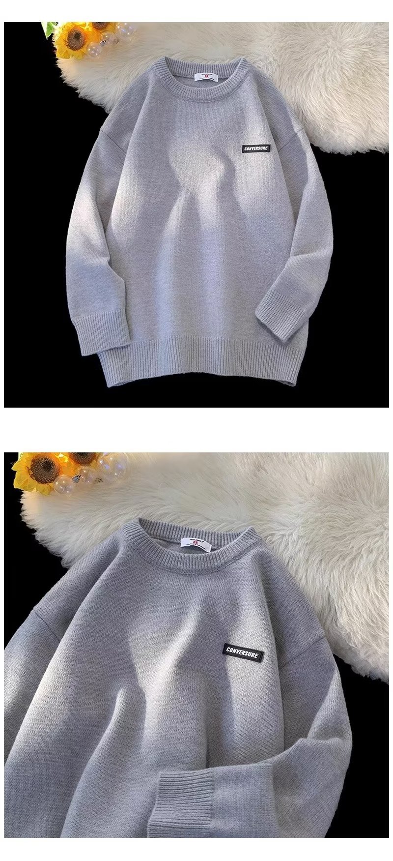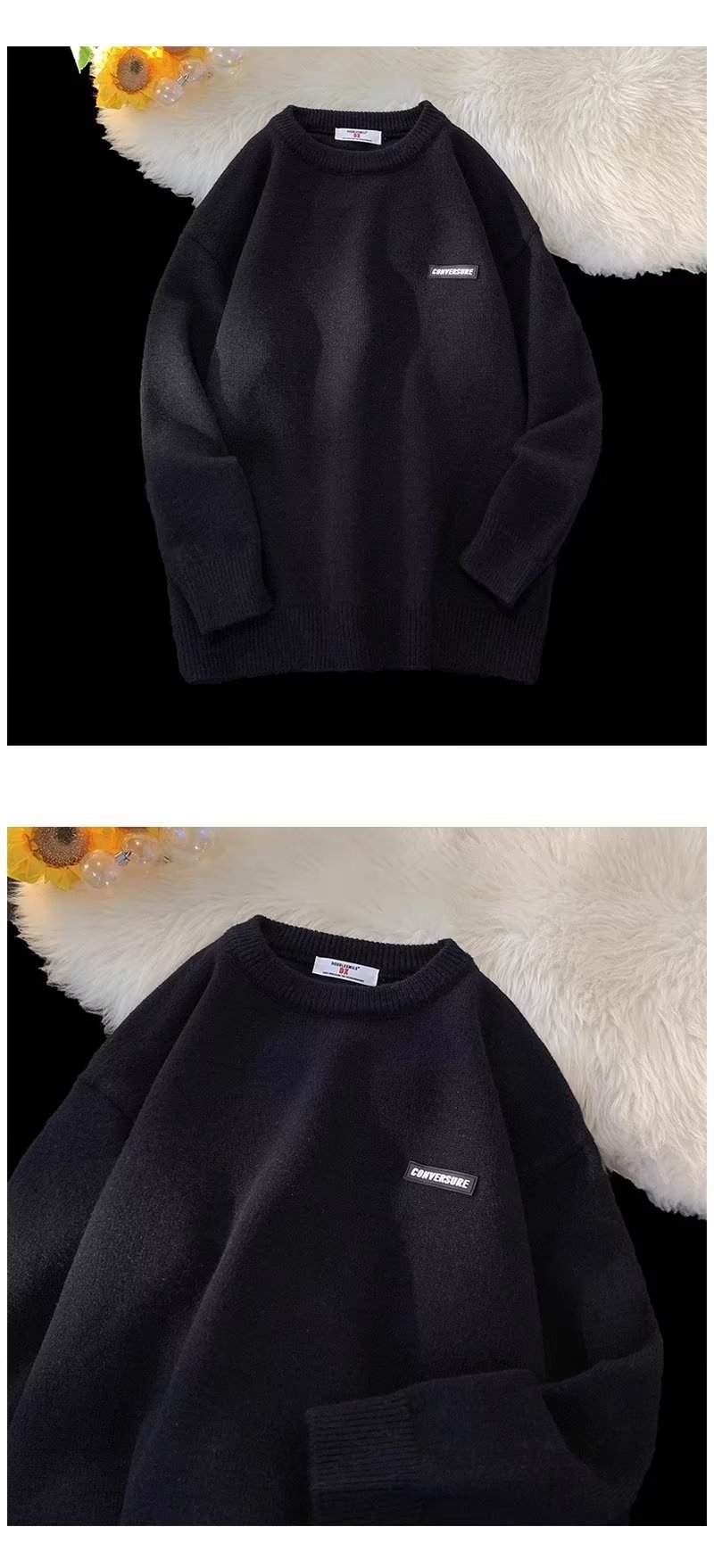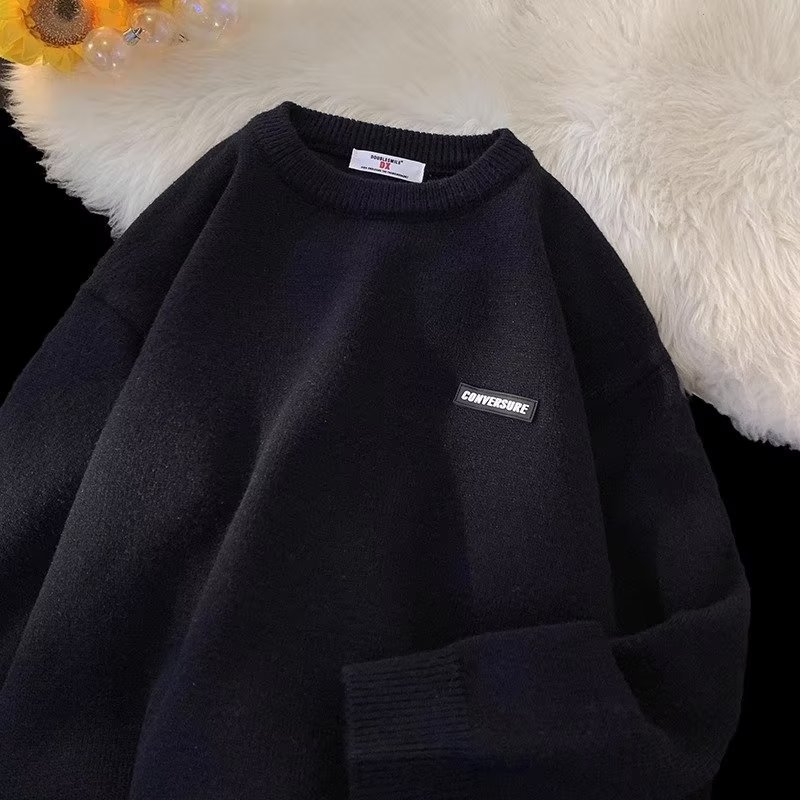 Свитер мужской зимний прилив свободный с круглым вырезом свитер молодежный толстый простой внутренний свитер