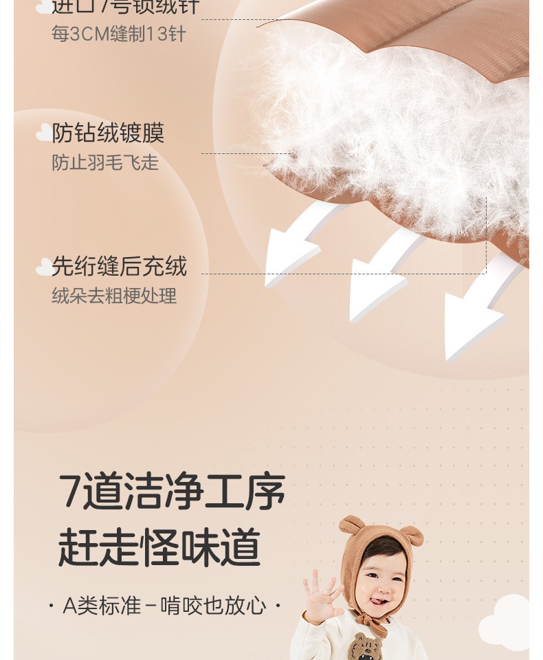 80 см, наполнитель: пух, плотность: 22 г; 90 см, наполнитель: пух, плотность: 24,8 г; 100 см, наполнитель: пух, плотность: 28,1 г; 110 см, наполнитель из пуха 32 г.