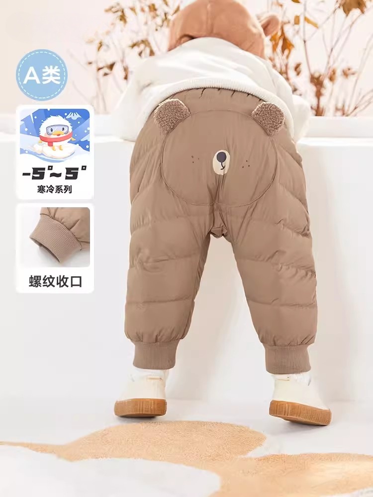 Детские зимние утепленные штаны с высокой талией на утином пуху, теплые белые штаны для девочек, зимние штаны с эффектом "большой попы"