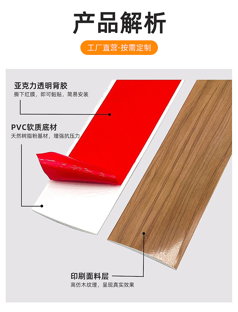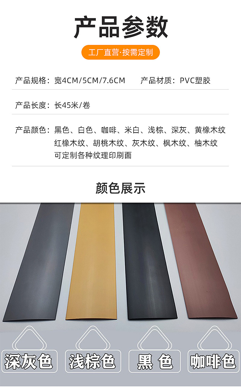 ПВХ-лента для скрытия швов в напольных покрытиях, плоская пороженная лента, декоративная самоклеящаяся лента для скрытия зазоров и дверных проемов.