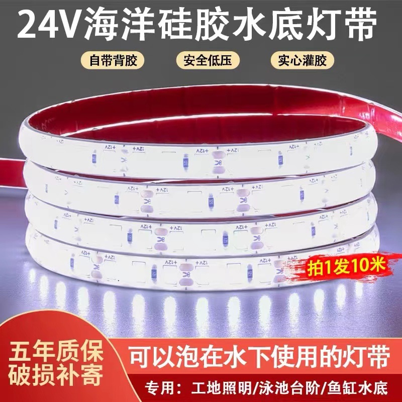 Подводная световая полоса для замачивания, светодиодная уличная водонепроницаемая 24 В, заполненная клеем, без пятен, самоклеящаяся линейная лампа для бассейна, бассейна, пруда с рыбой