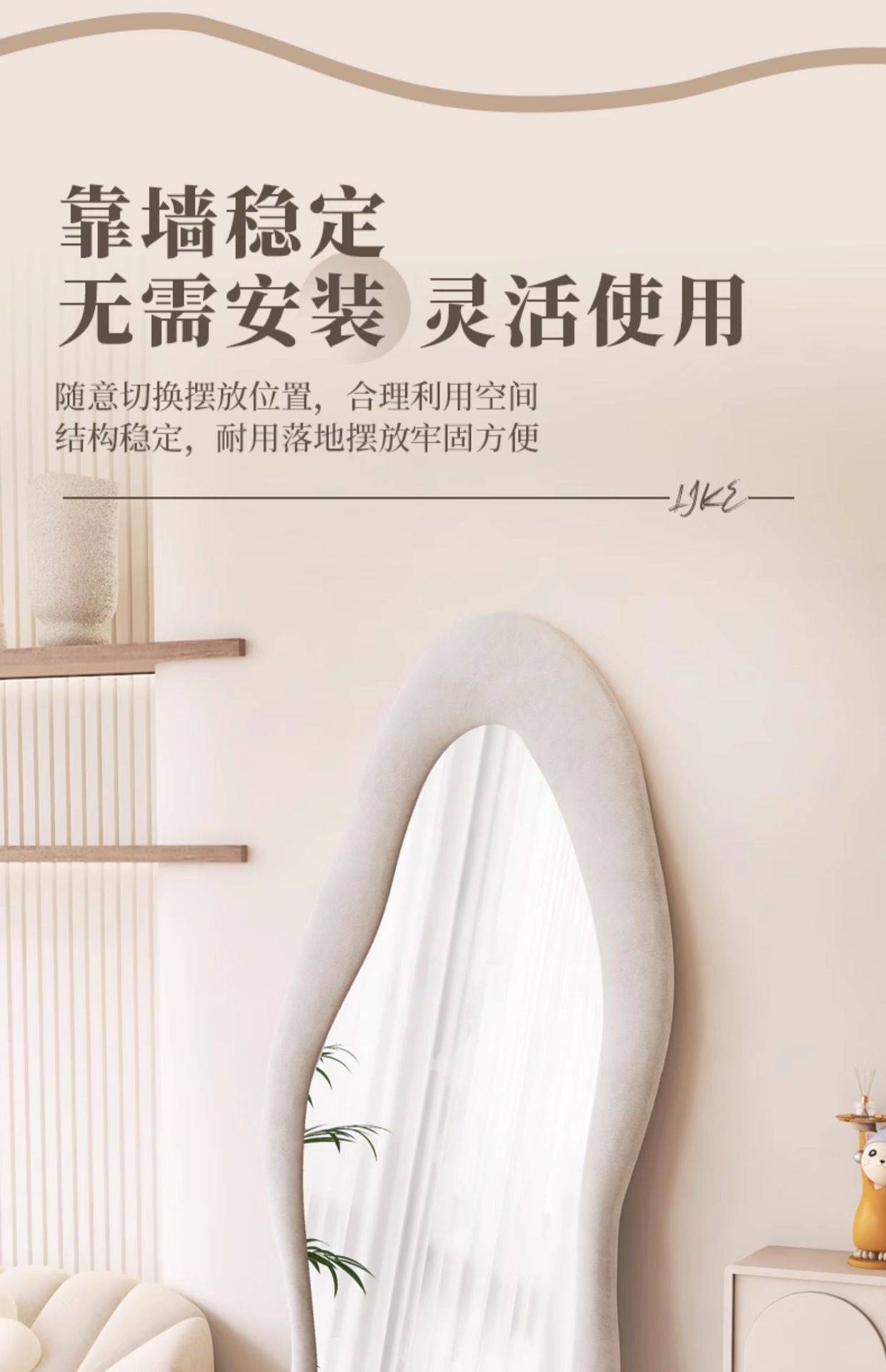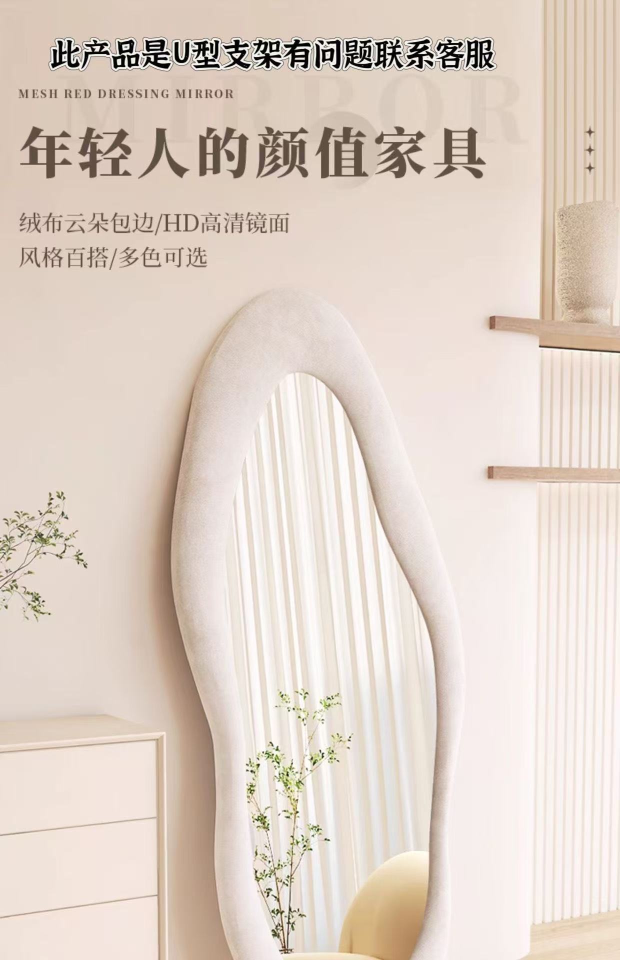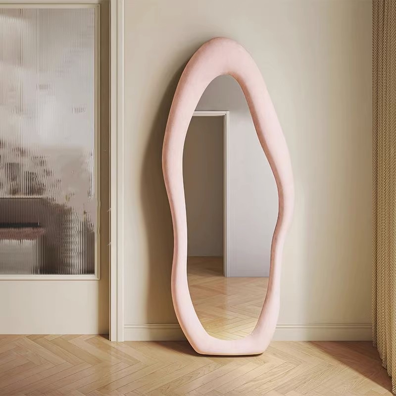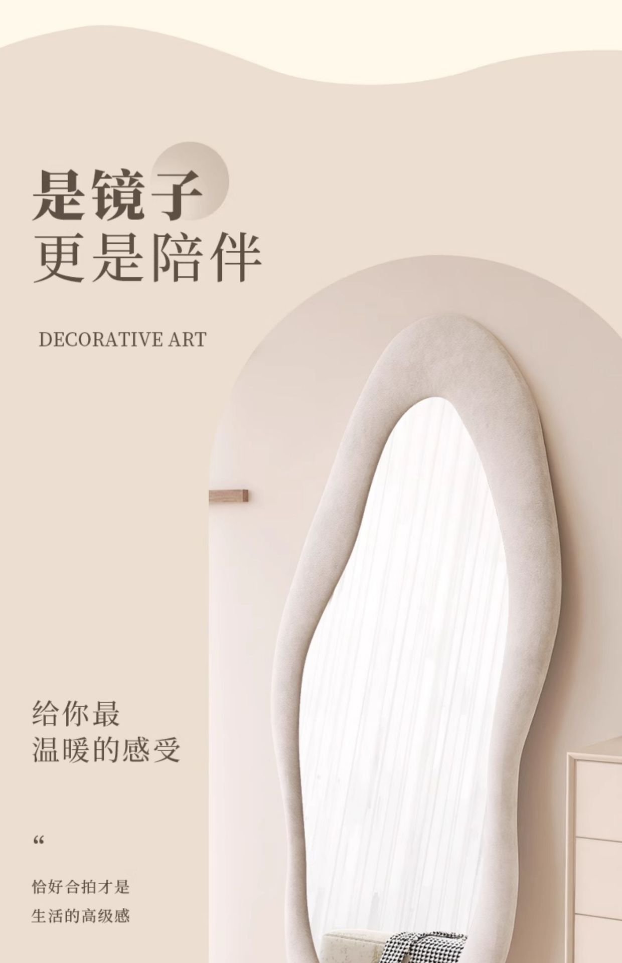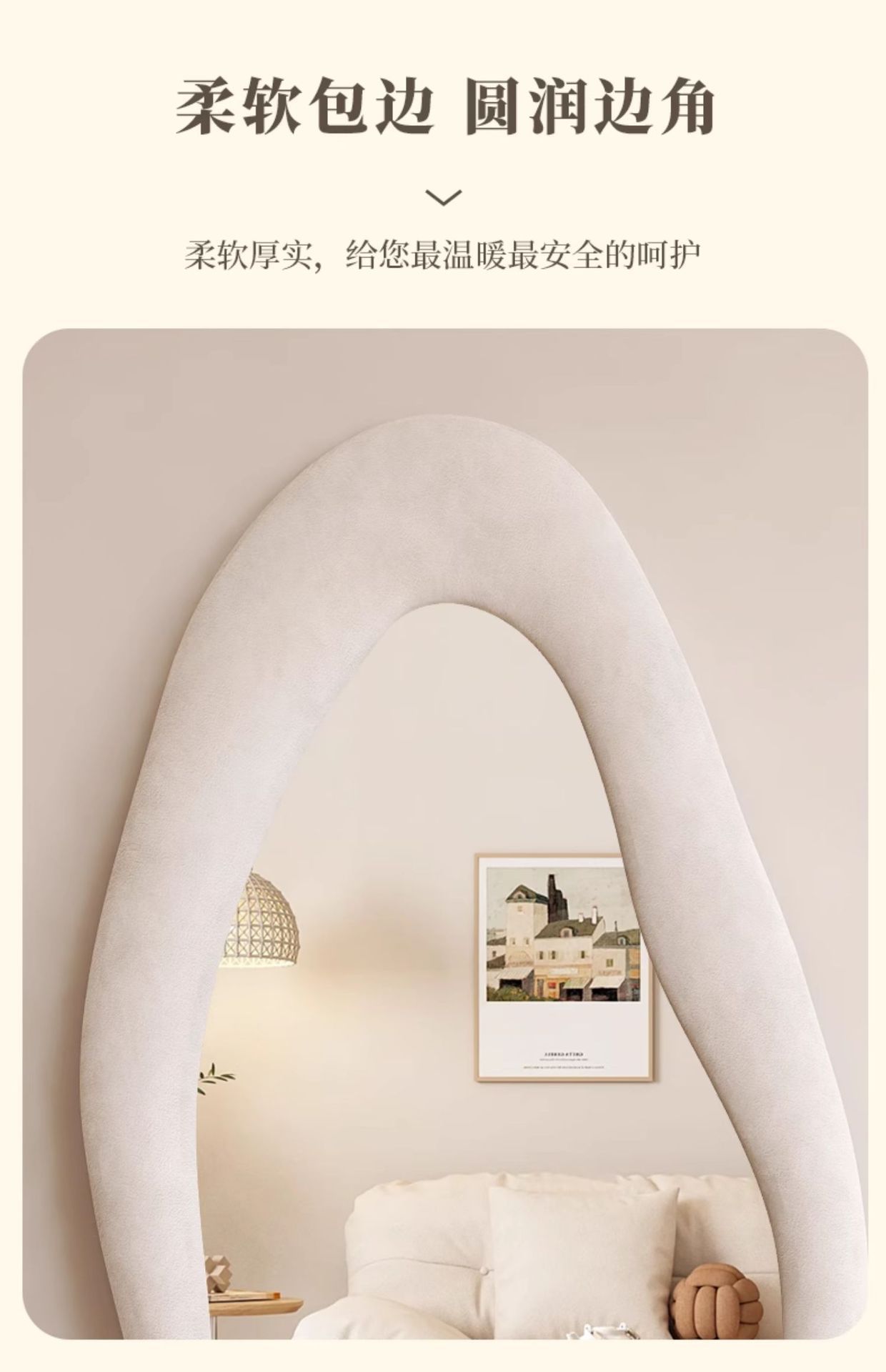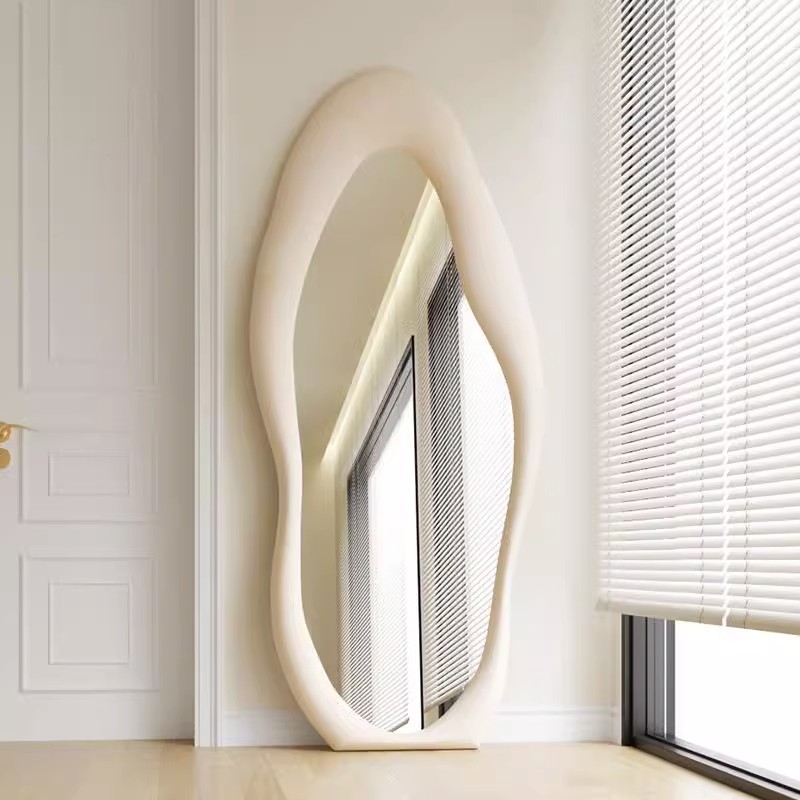 Модное напольное зеркало в полный рост для спальни, зеркало для гардеробной в стиле инс с нестандартной формой и кремовым цветом.