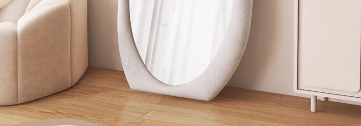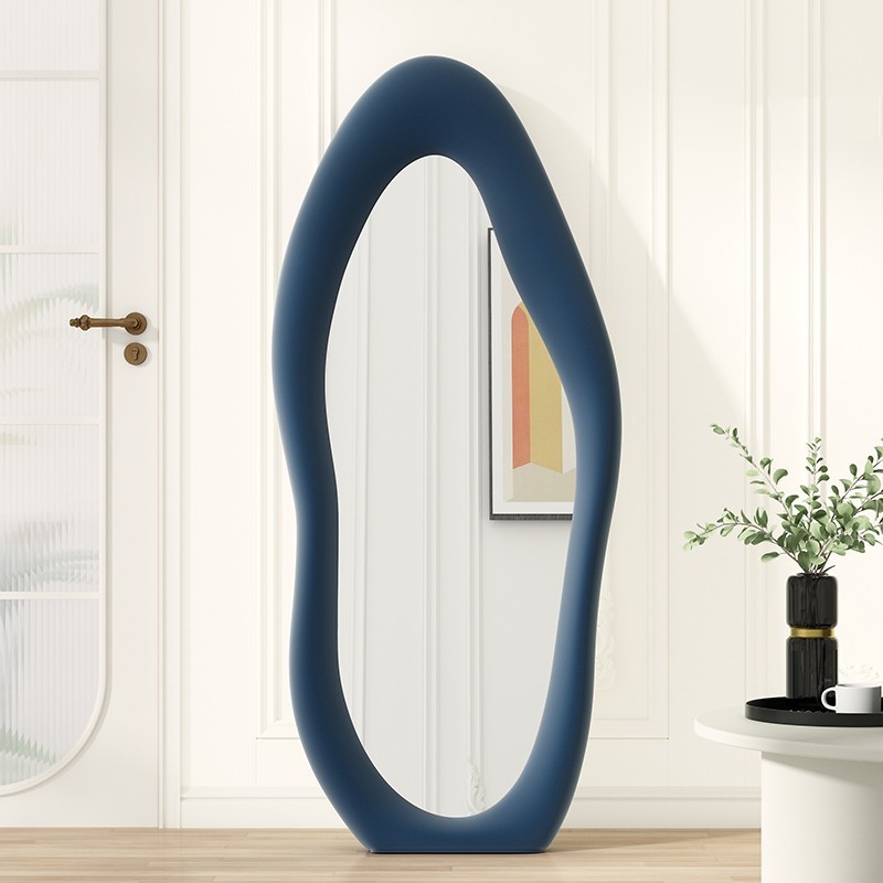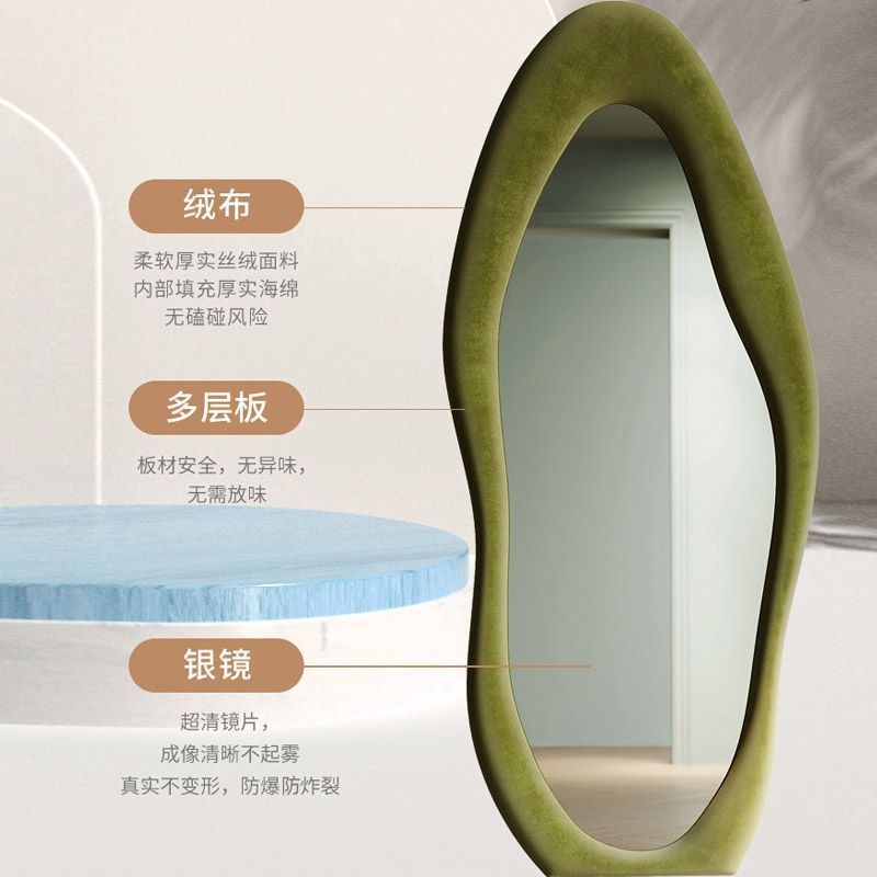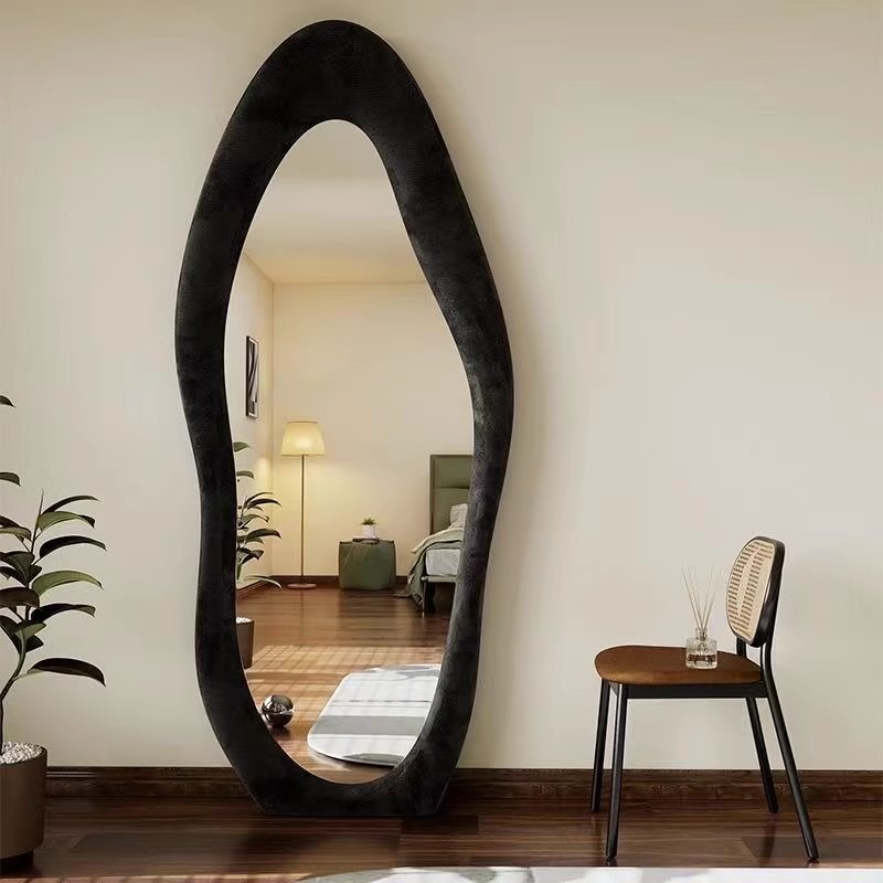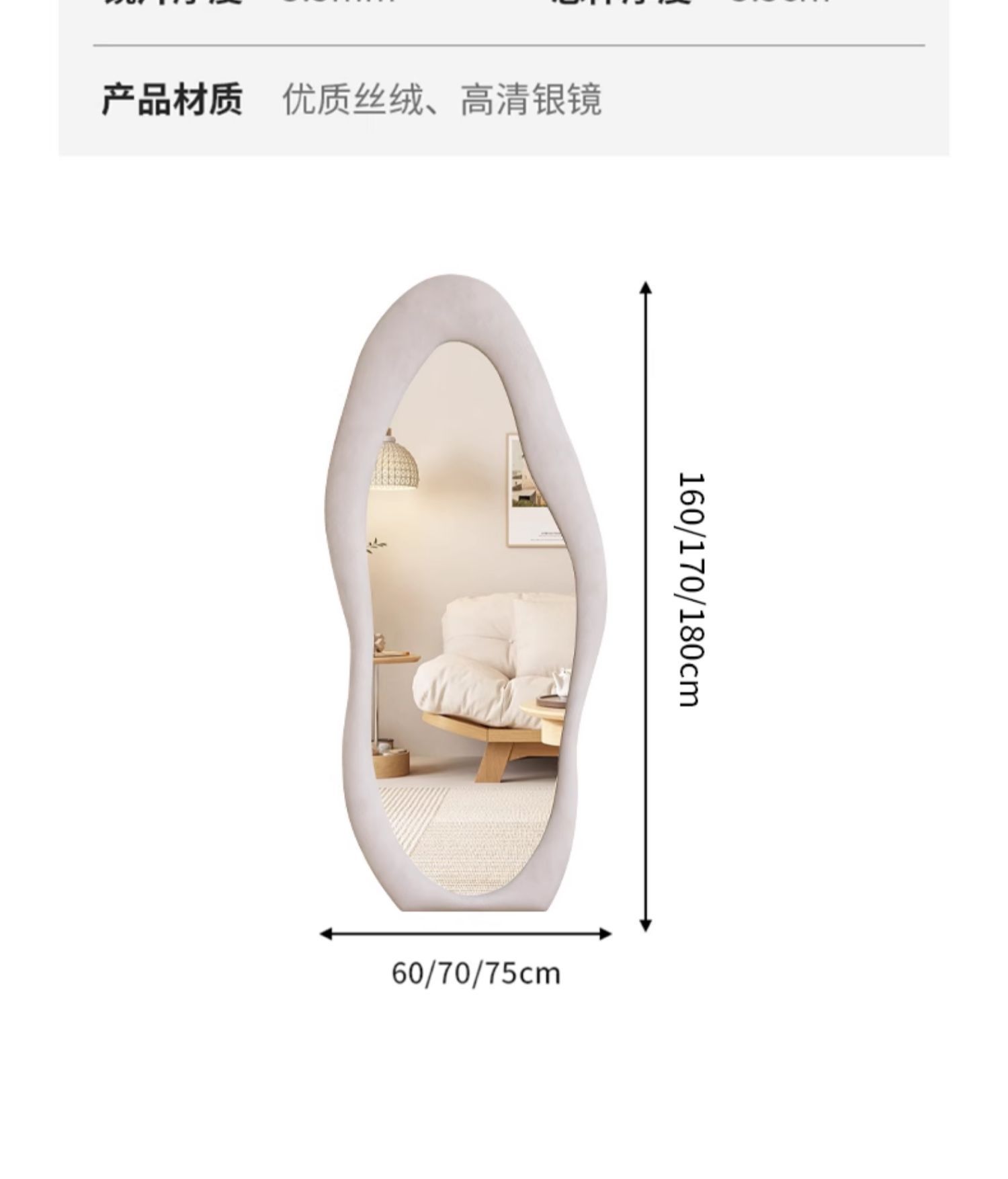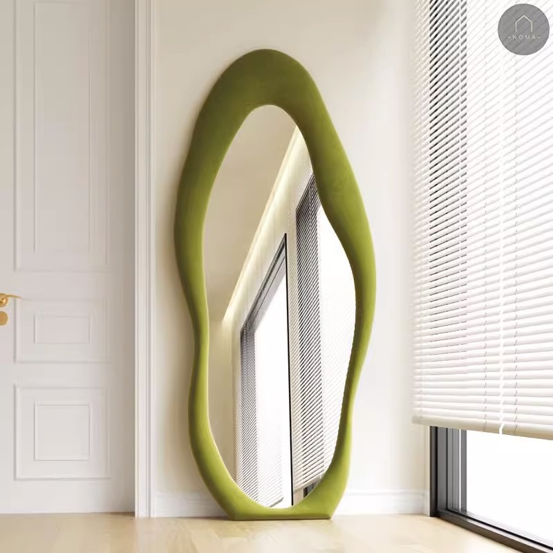 Модное напольное зеркало в полный рост для спальни, зеркало для гардеробной в стиле инс с нестандартной формой и кремовым цветом.