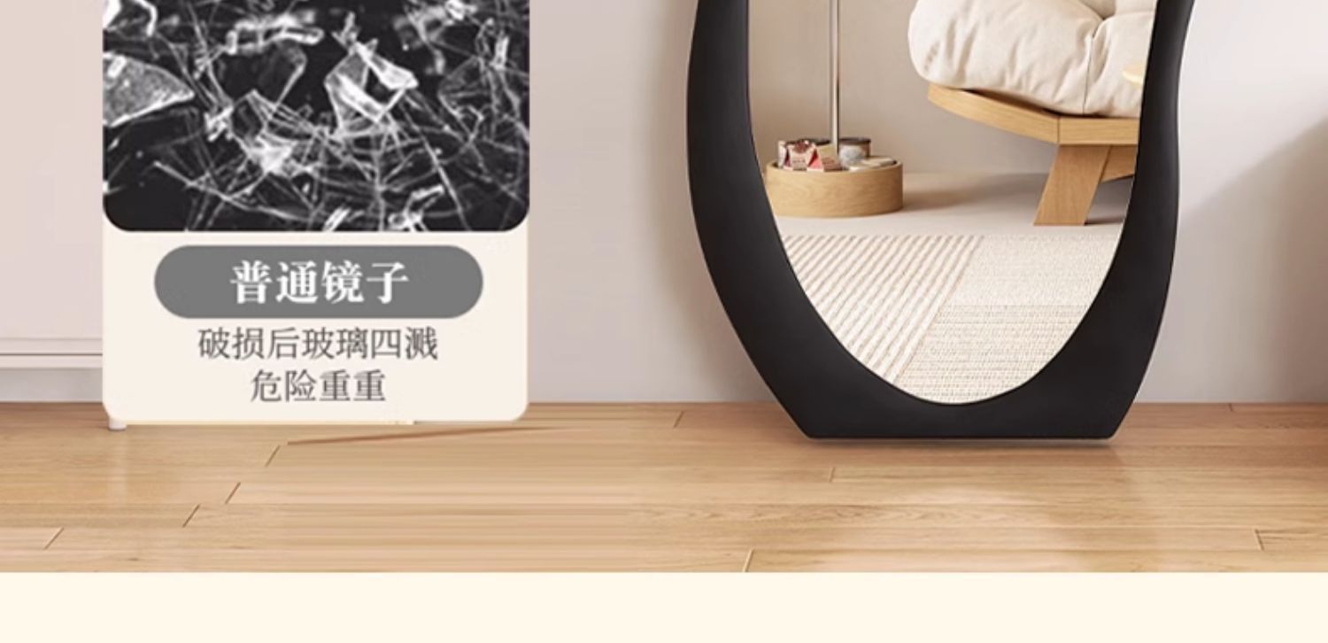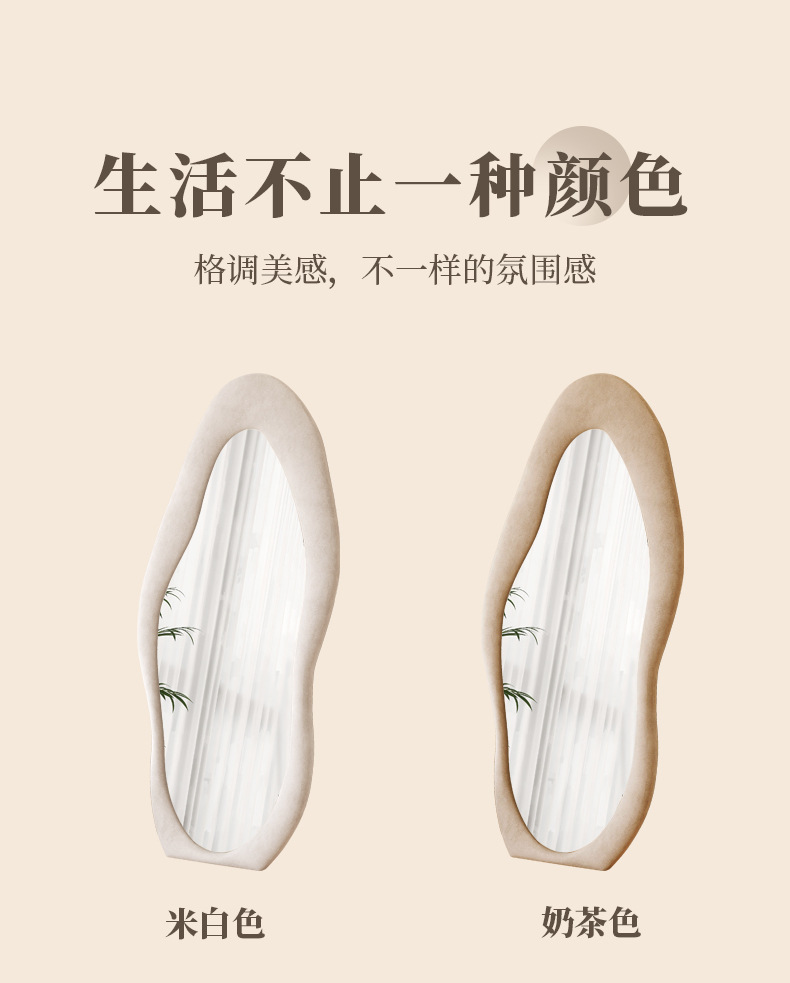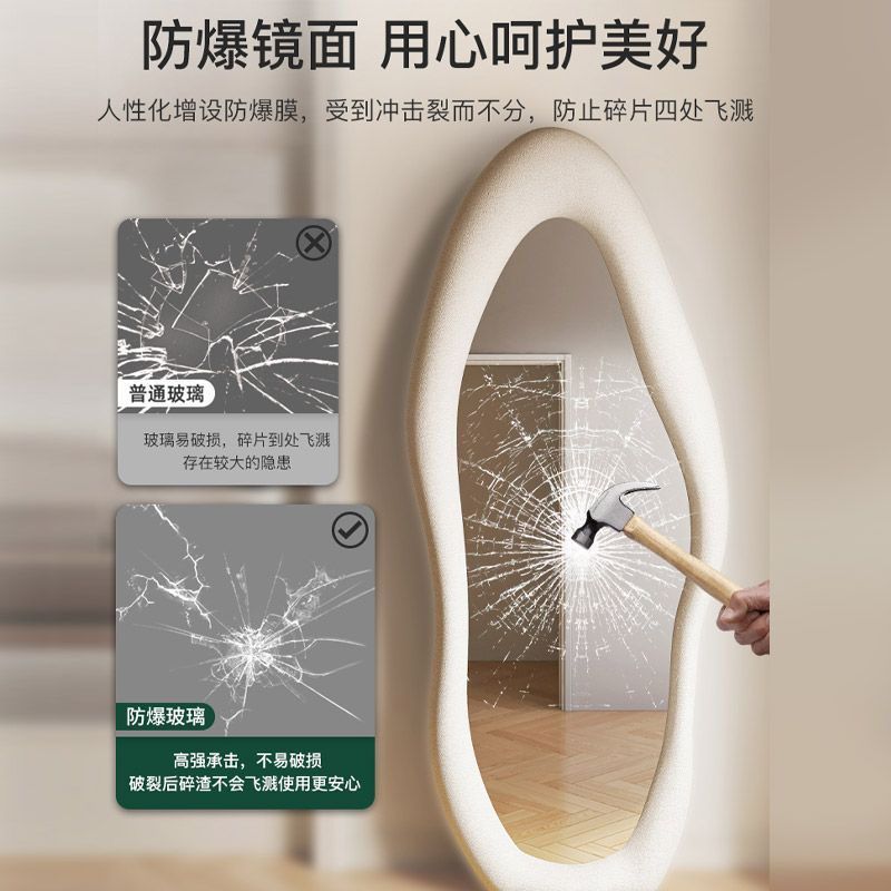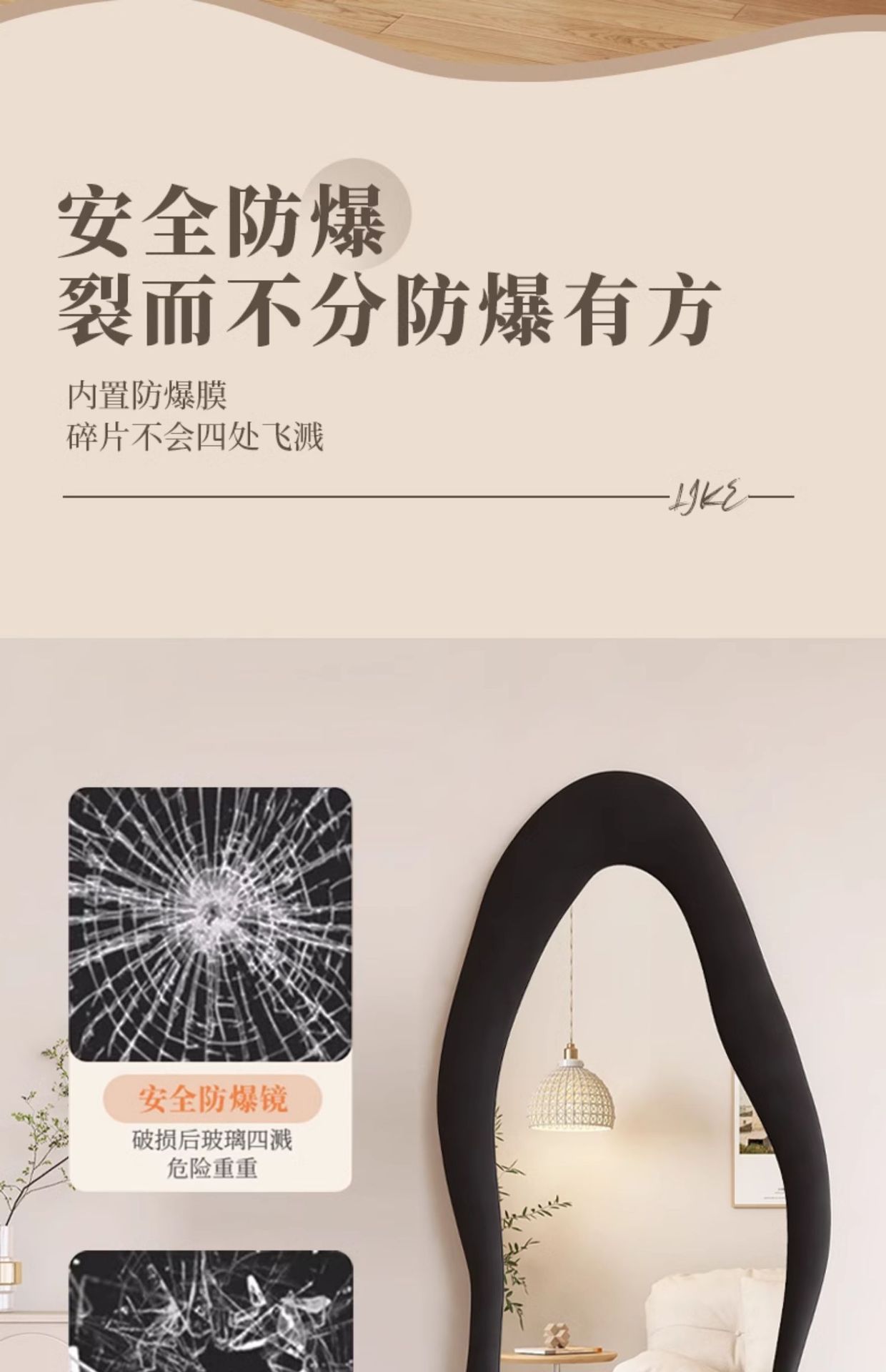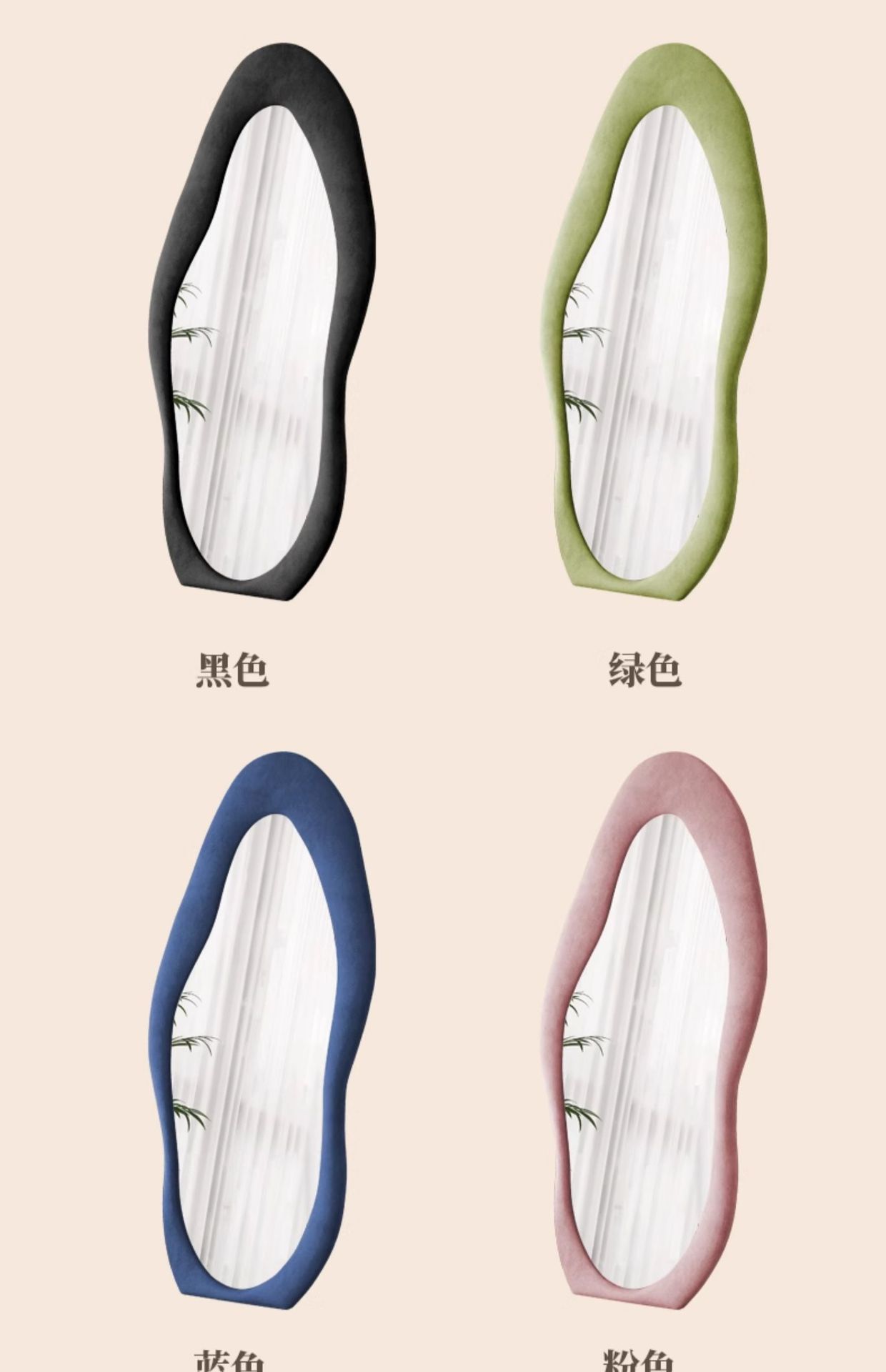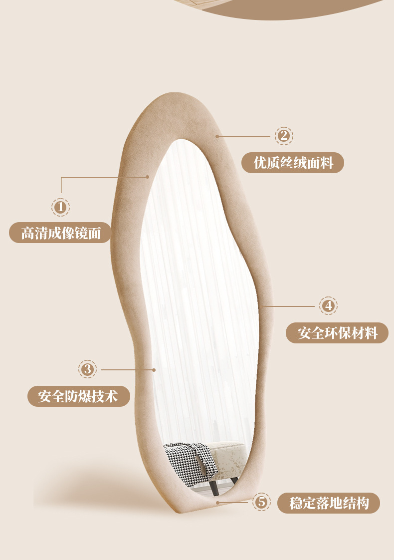 Модное напольное зеркало в полный рост для спальни, зеркало для гардеробной в стиле инс с нестандартной формой и кремовым цветом.