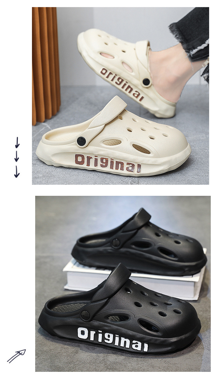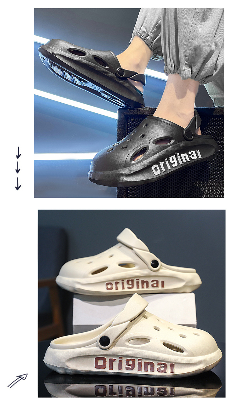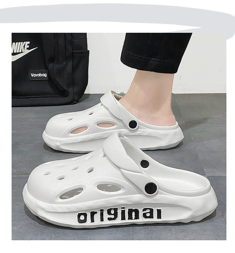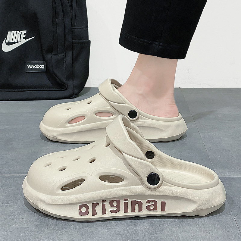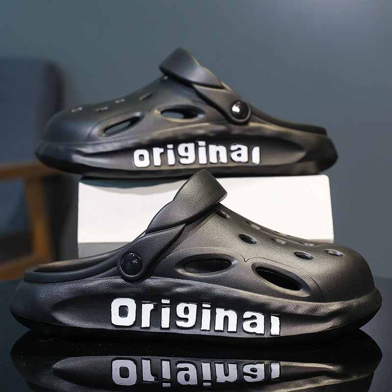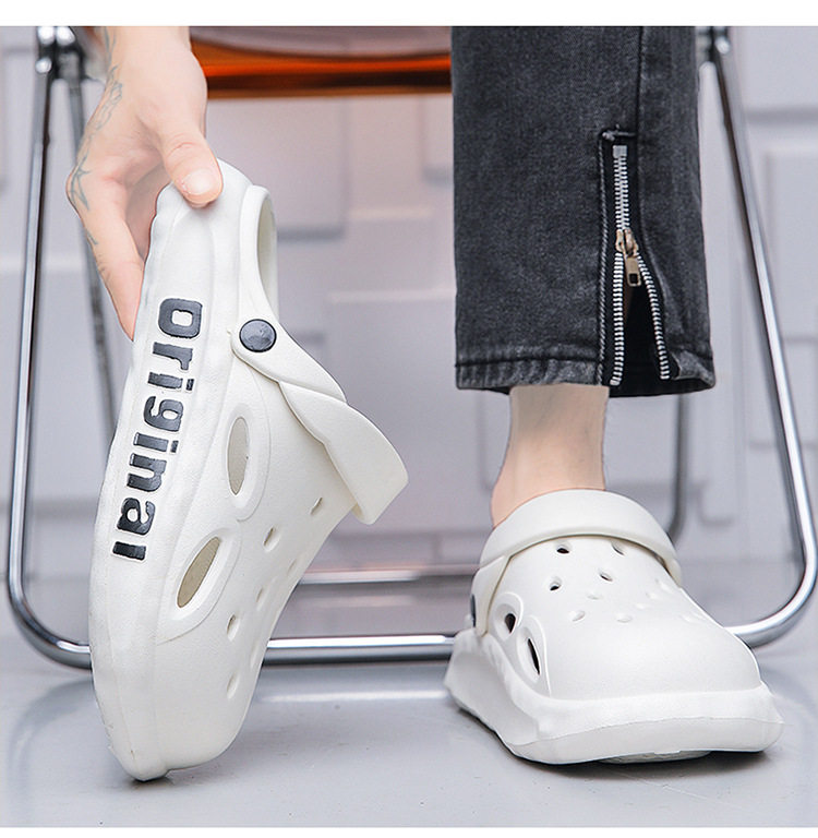 Мужские сабо с защитным носком, пляжные шлепанцы из ЭВА с отверстиями, летние уличные тапочки на толстой подошве с амортизацией, нескользящие сандалии для мужчин.