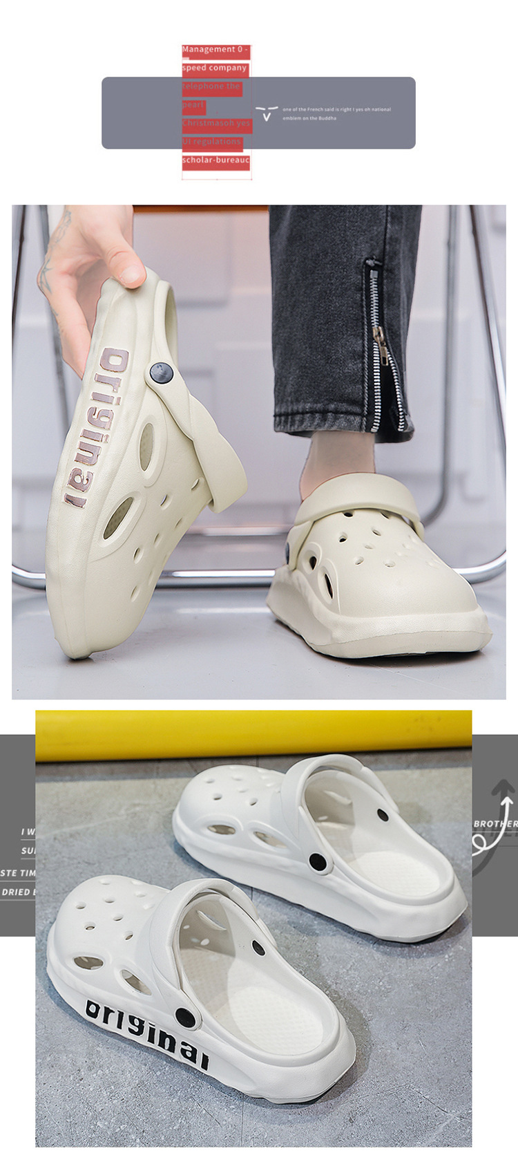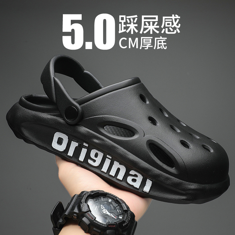洞洞拖鞋男鞋运动机车厚底潮流夏季新款沙滩男士防滑防臭凉拖鞋男款