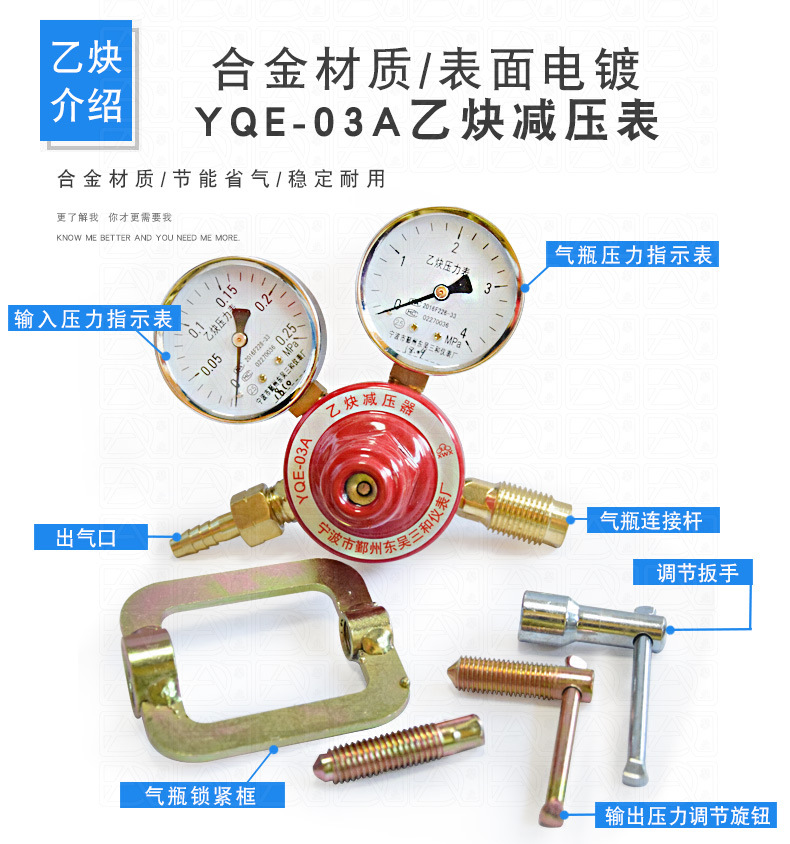 Soochow Sanhe Instrument Factory YQE-03A Ацетиленметр, редукционный клапан YQY-07A Кислородный измеритель, манометр, медное покрытие