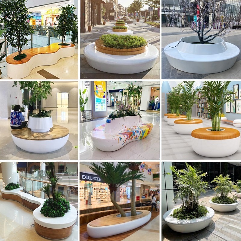 Садовая скамейка из стекловолокна для бассейна, торгового центра, парка, площади, отдыха на открытом воздухе, ландшафтная скамейка специальной формы, цветочный бассейн