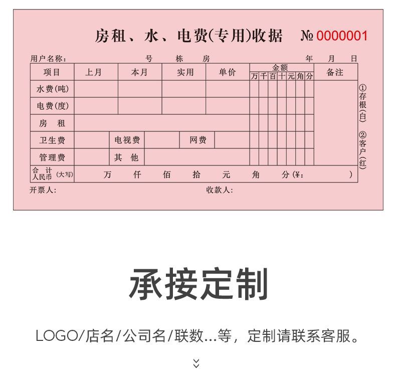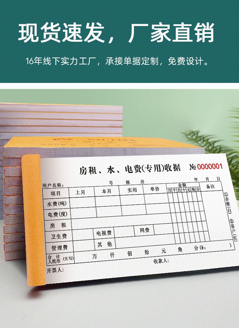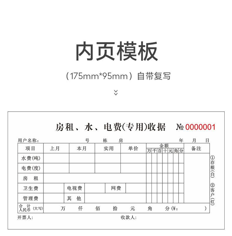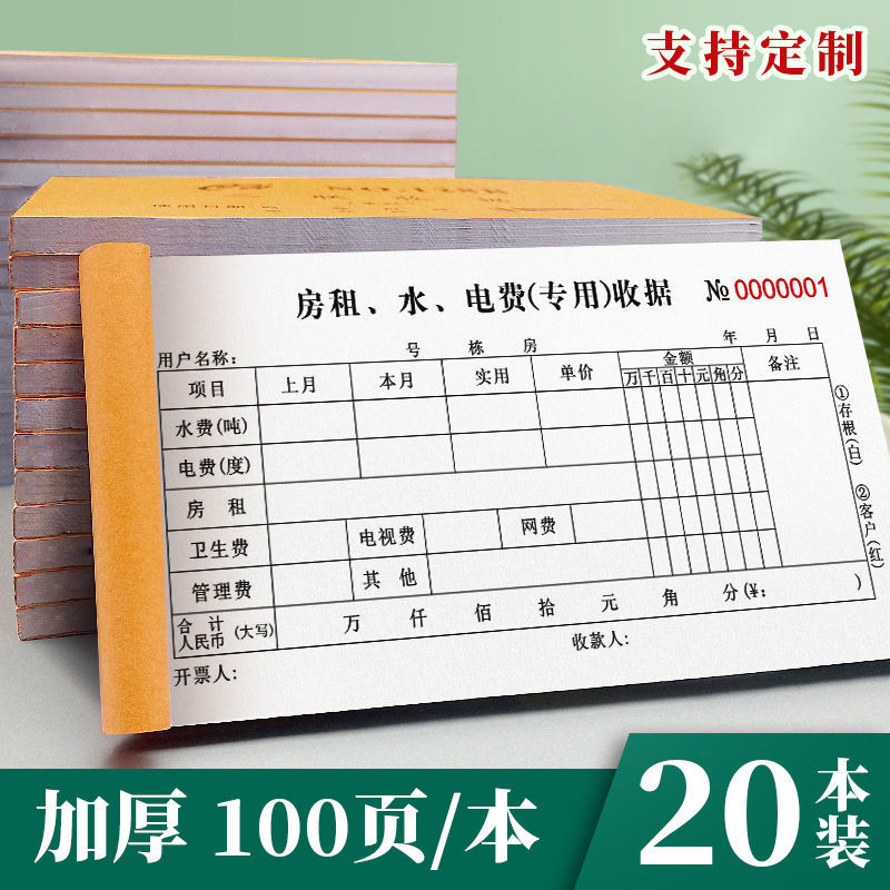 Квитанция об аренде дома счет за воду и электричество, двусторонний счет в соответствии с книгой сбора арендной платы арендодателя, рукописный счет, двусторонний