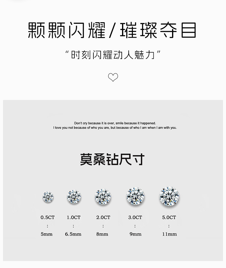 1 карат (восемь сердец восемь стрел Циркон); Белый бриллиант 1 карат (Mosan Diamond + сертификат GRA + черная карта + код талии); 1 карат оранжевый (Mosan Diamond + сертификат GRA + черная карта + талия код); Порошок вишни 1 карат (бриллиант Mosan + сертификат GRA + черная карта + талия); Изумруд 1 карат (мозаичный бриллиант + сертификат GRA + Черная карта + Код талии); 1-каратный красочный синий (Mosan Diamond + сертификат GRA + черная карта + код талии); 1 карат золота шампанского (бриллиант Mosan + сертификат GRA + черная карта + код талии); 1 карат Элегантный серый (Mosan Diamond + сертификат GRA + Черная карта + Код талии)