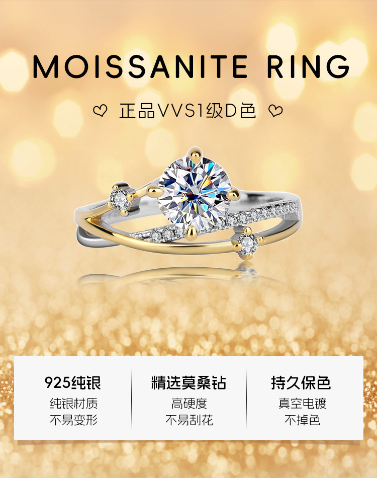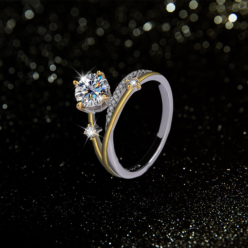 Прямые поставки с фабрики, женское кольцо из стерлингового серебра s925 с четырьмя зубцами, инкрустированное золотом, с раздельной звездой и муассанитом, оптовая продажа.