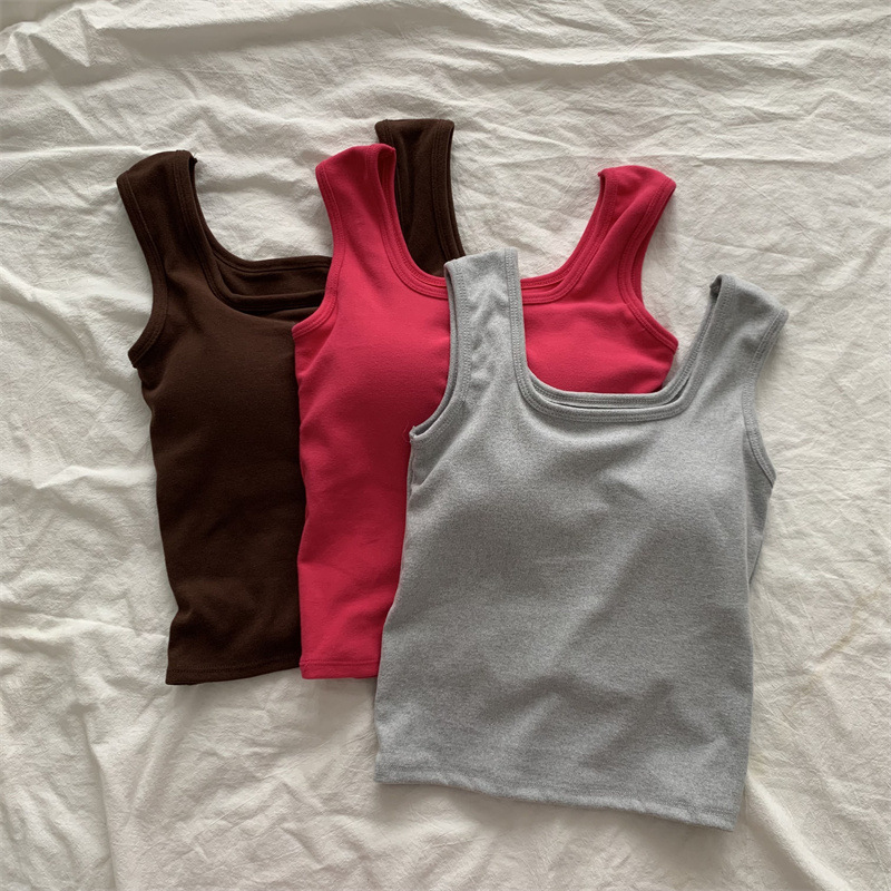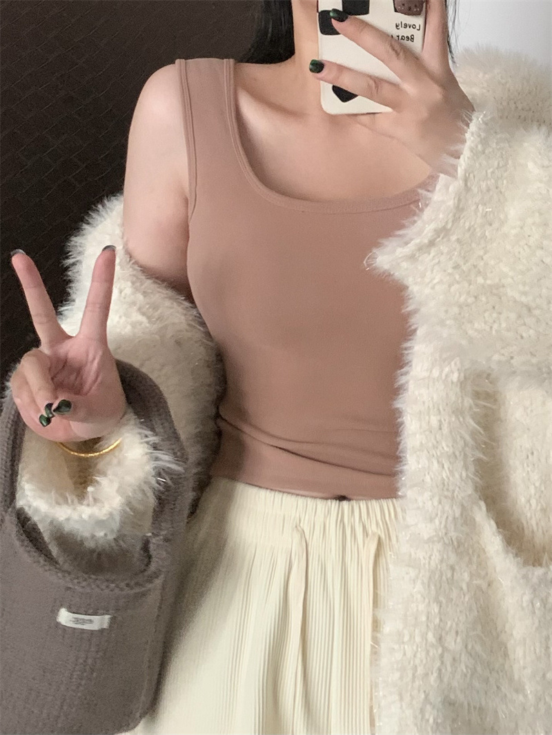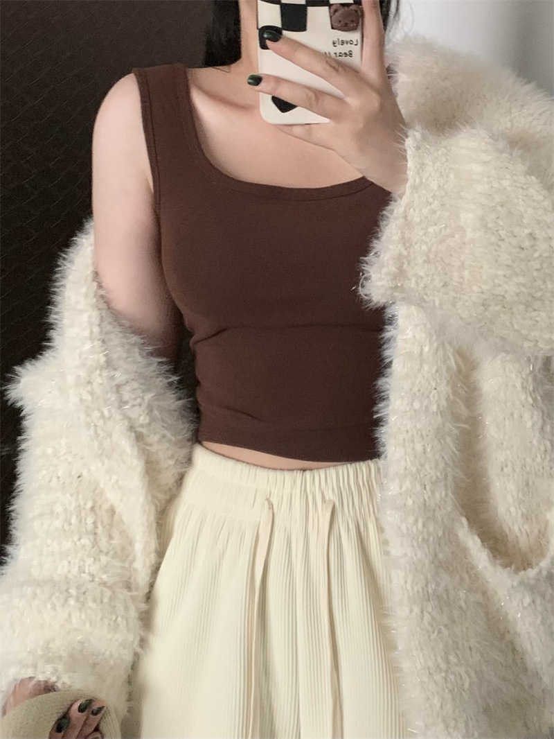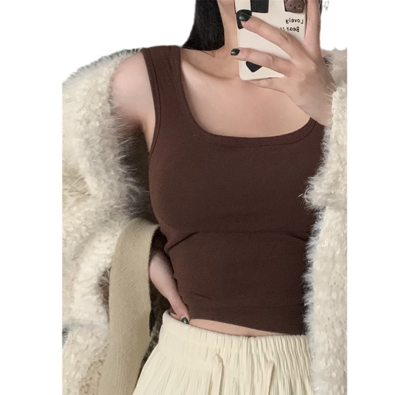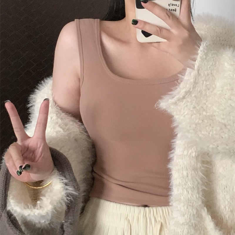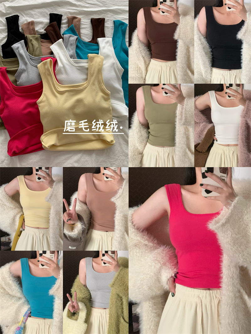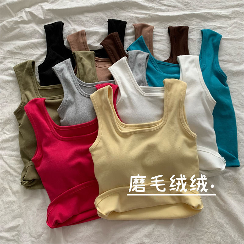 Шлифовка с нагрудной подкладкой Маленький жилет Женская осенне-зимняя Новинка Pure Desire Короткая внутренняя одежда Внешняя одежда Базовая рубашка с флисовой подкладкой Топ