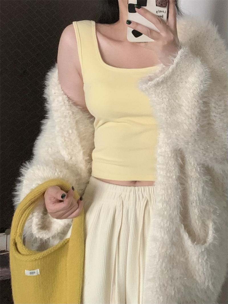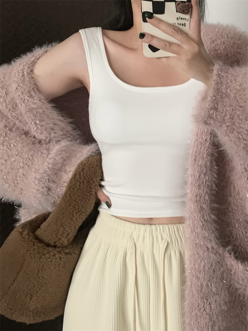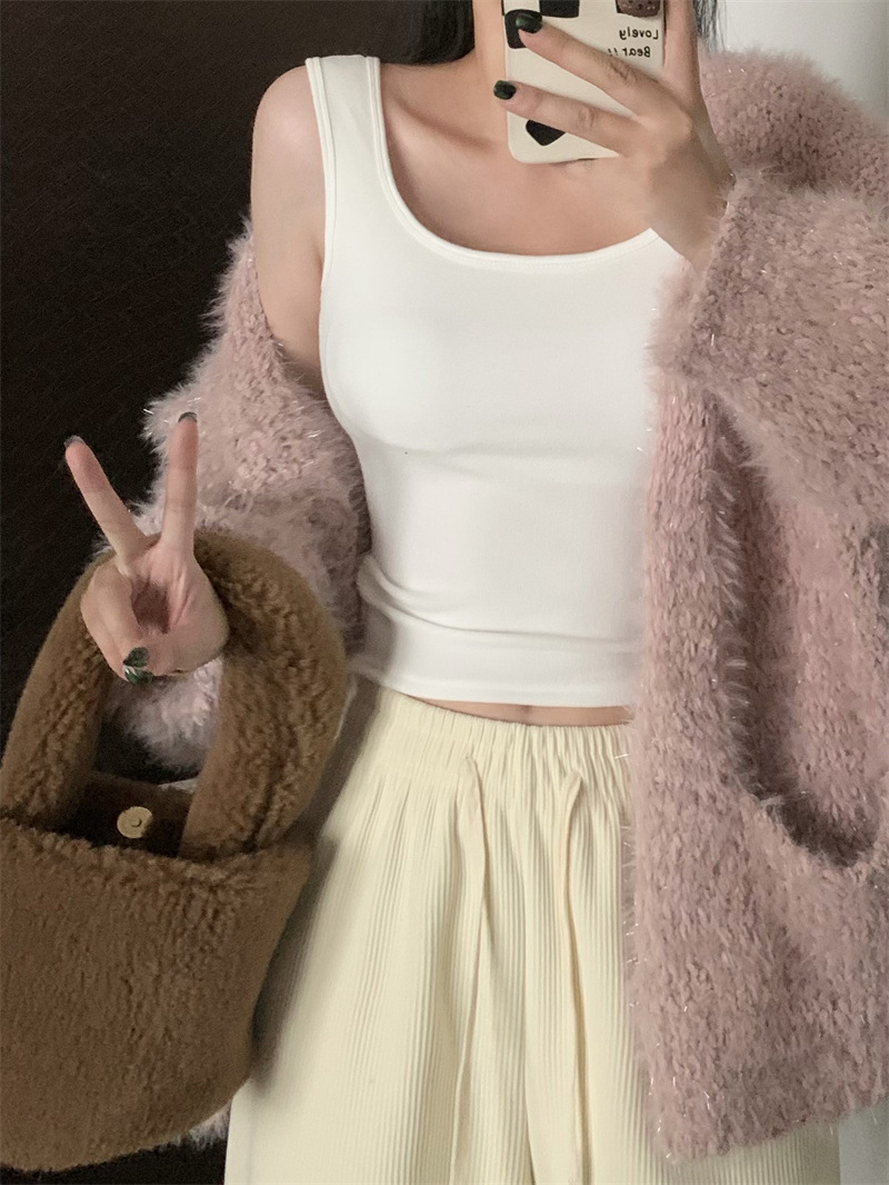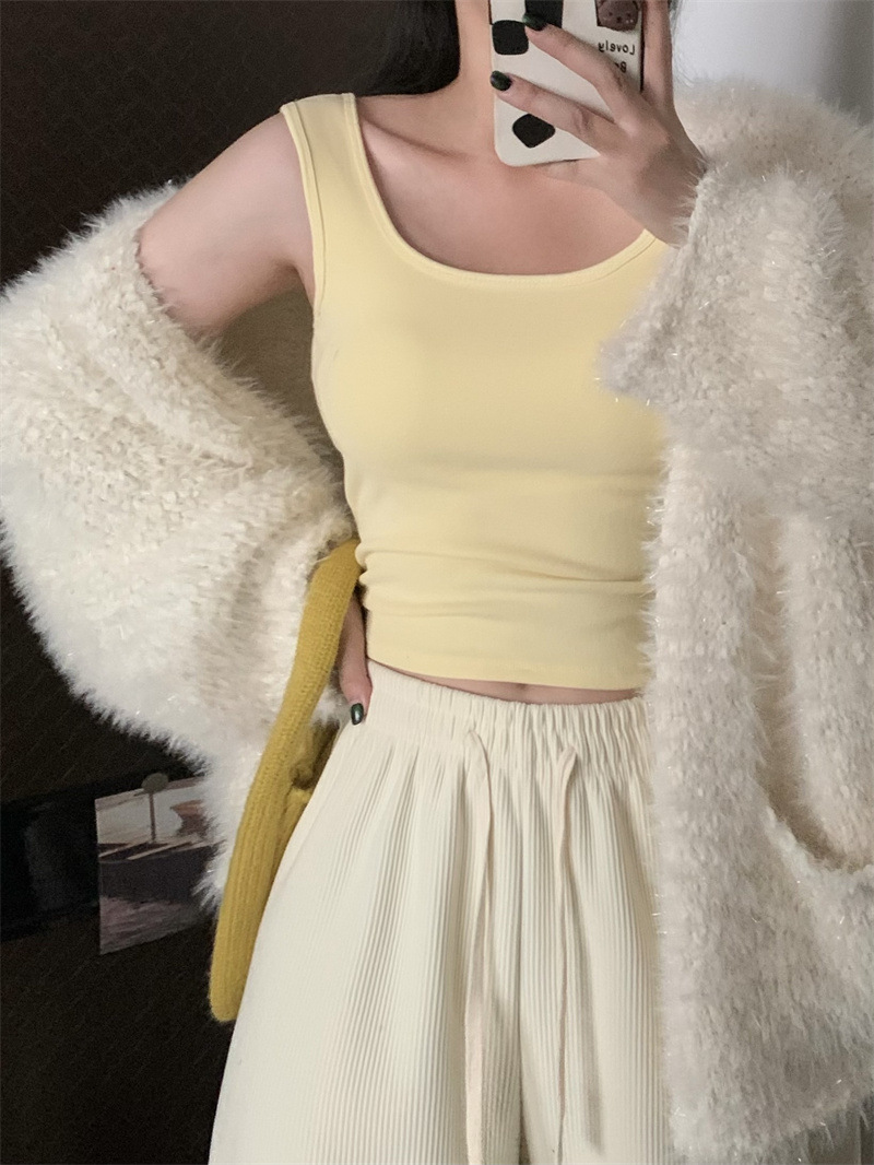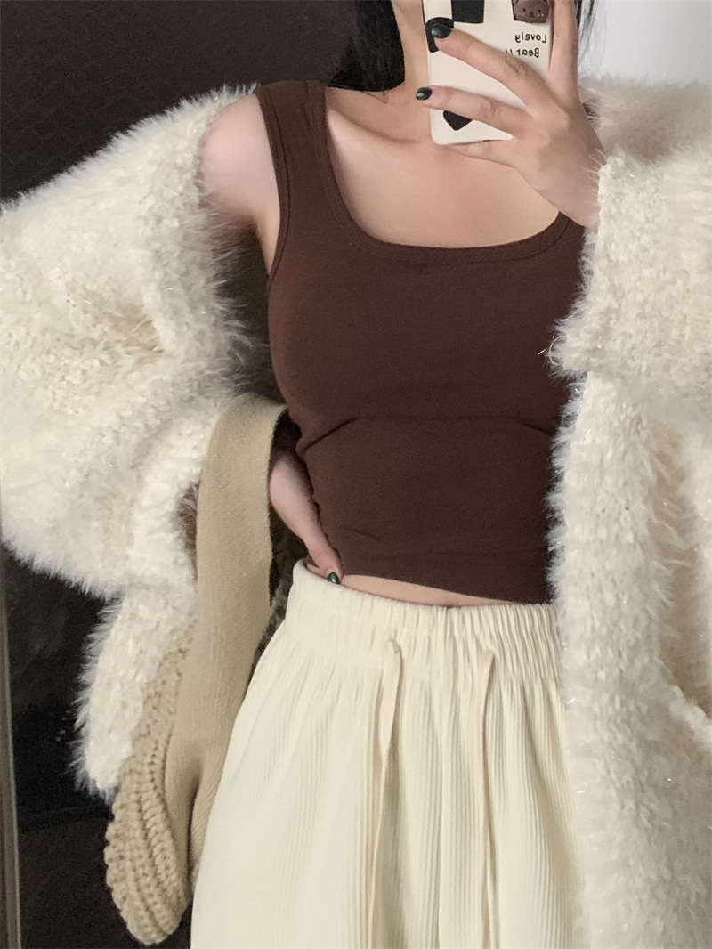 Шлифовка с нагрудной подкладкой Маленький жилет Женская осенне-зимняя Новинка Pure Desire Короткая внутренняя одежда Внешняя одежда Базовая рубашка с флисовой подкладкой Топ