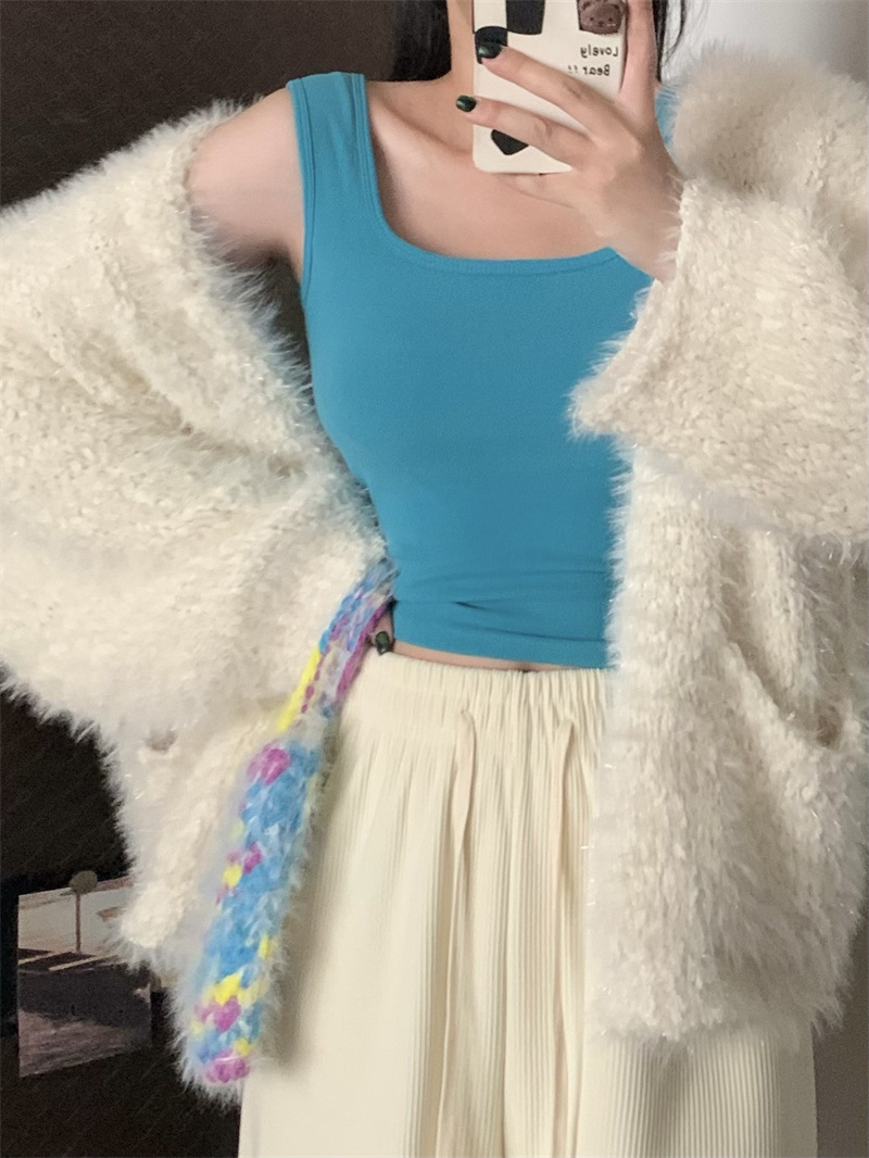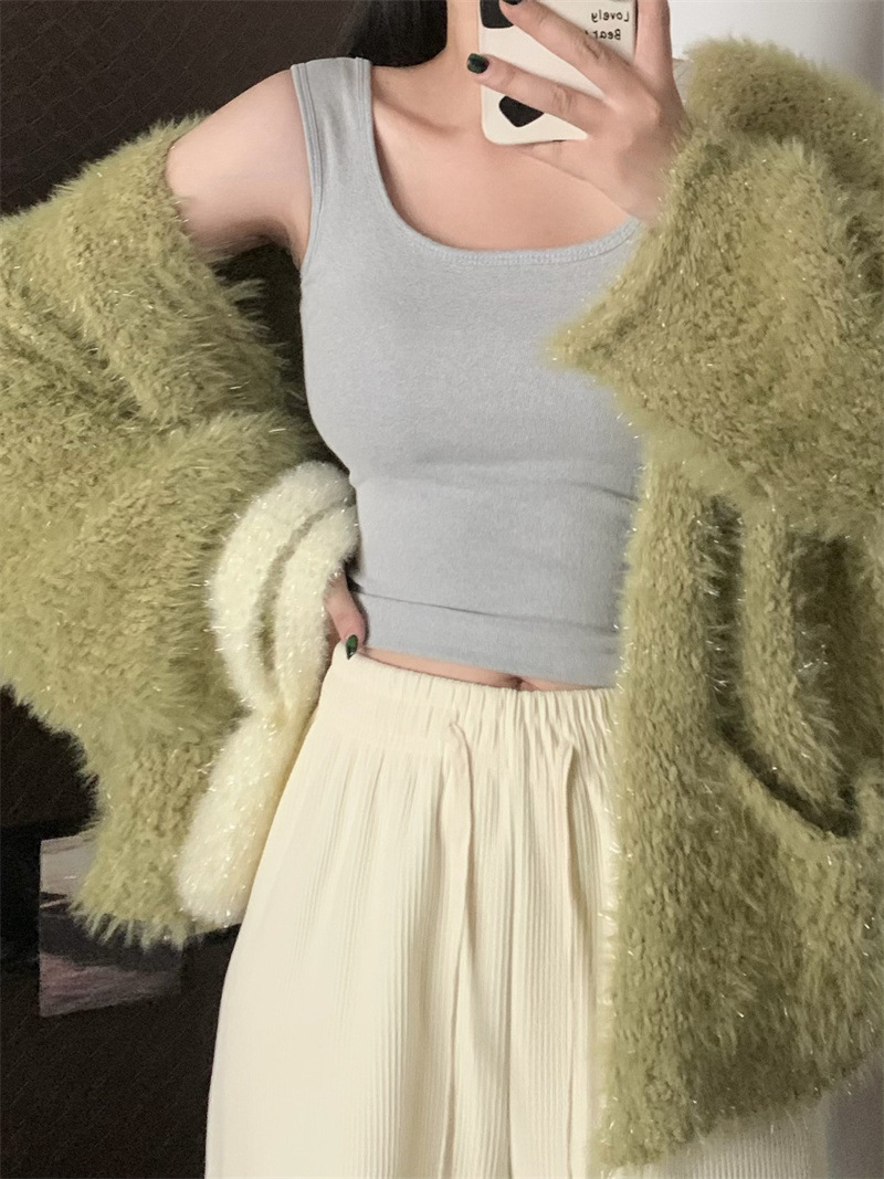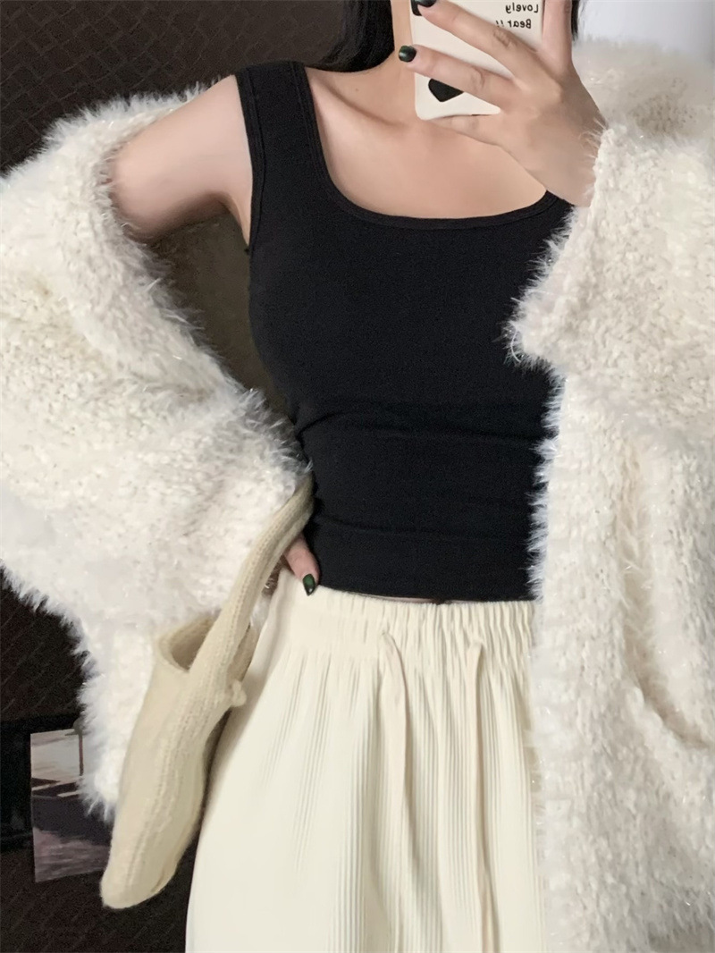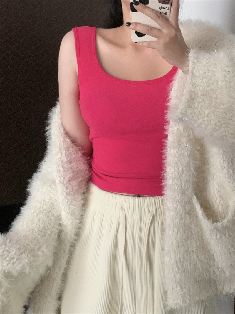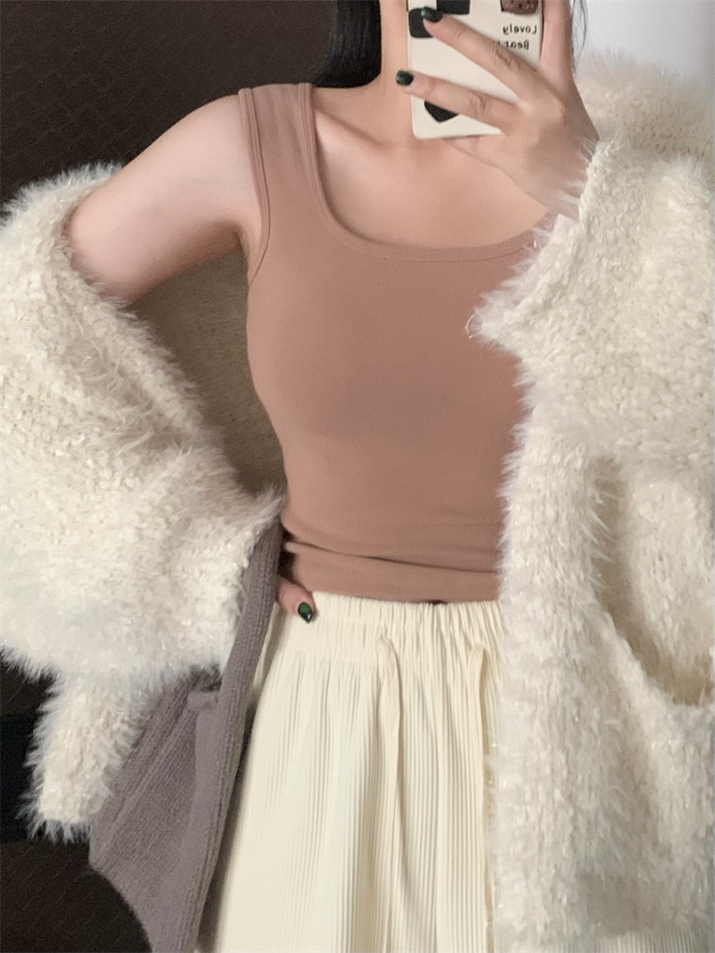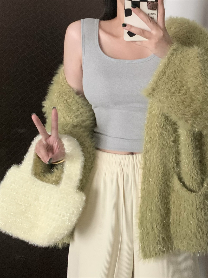 Шлифовка с нагрудной подкладкой Маленький жилет Женская осенне-зимняя Новинка Pure Desire Короткая внутренняя одежда Внешняя одежда Базовая рубашка с флисовой подкладкой Топ