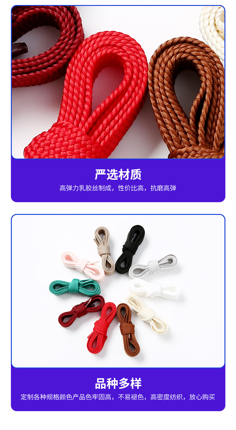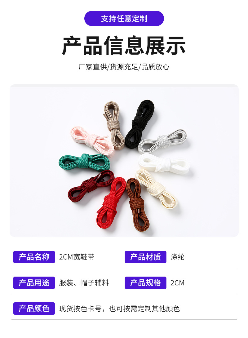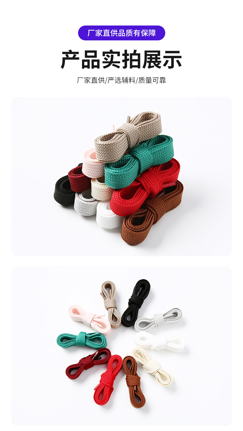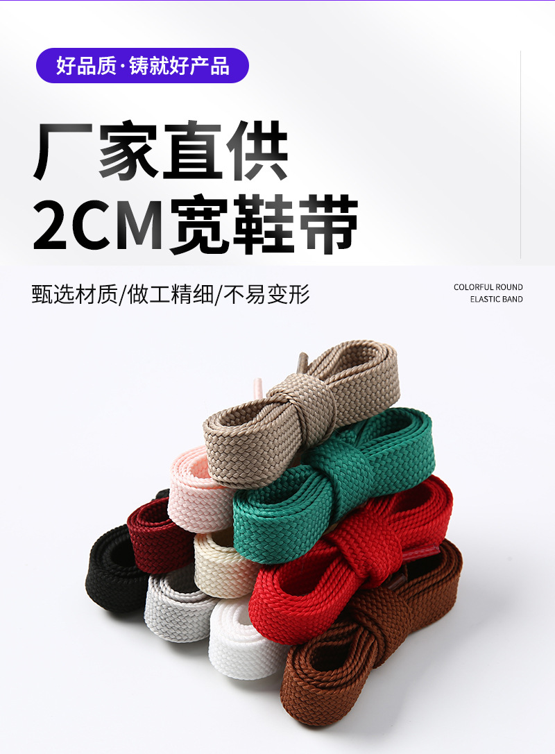 Оптовые поставки от производителя: плоские шнурки 2 см, плоские шнурки, сверхширокие плоские шнурки, плоские шнурки-веревки, односторонние шнурки.