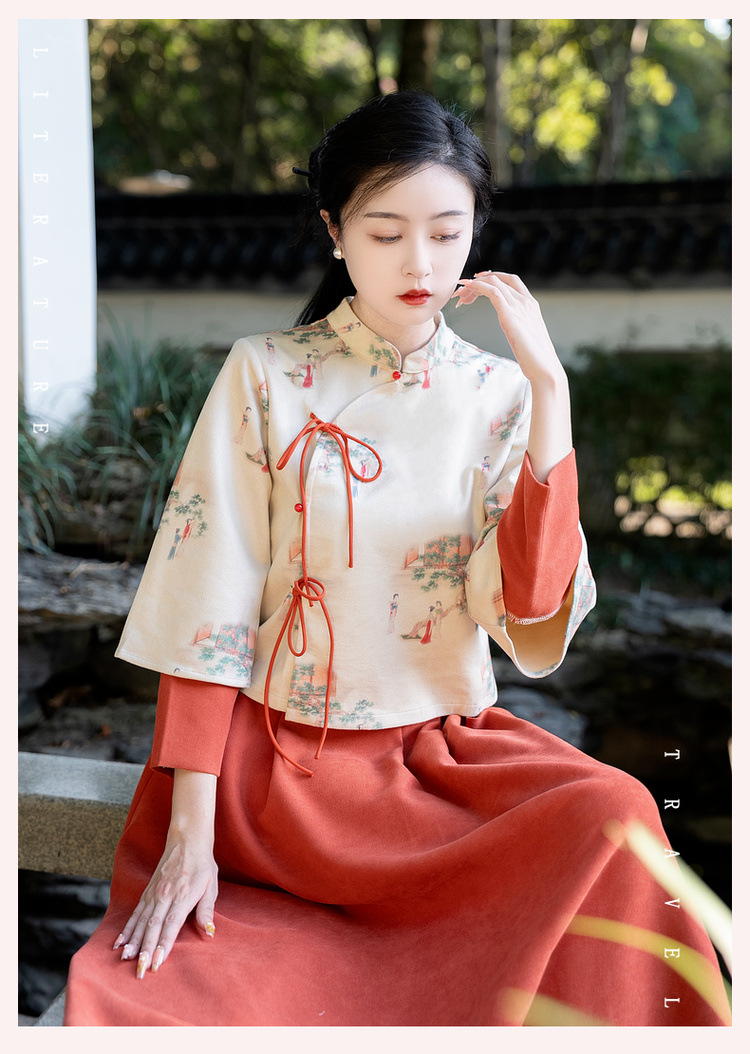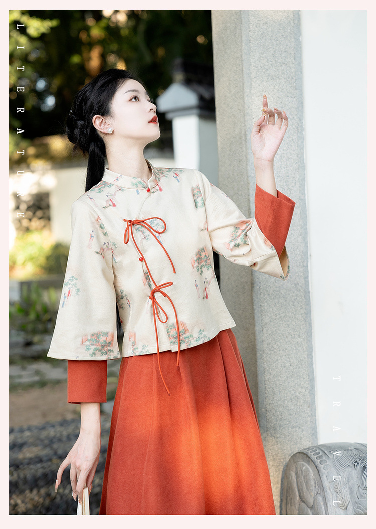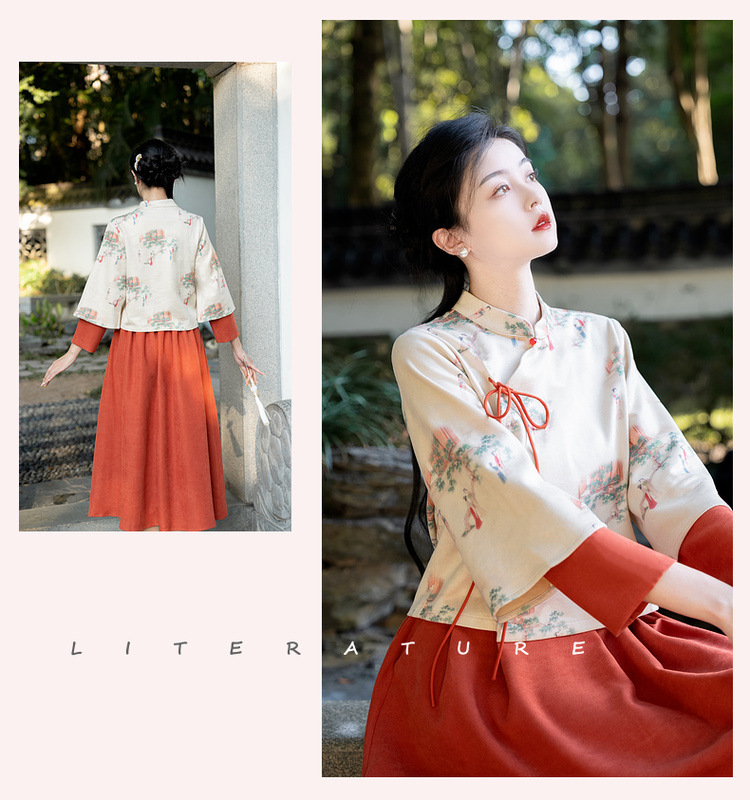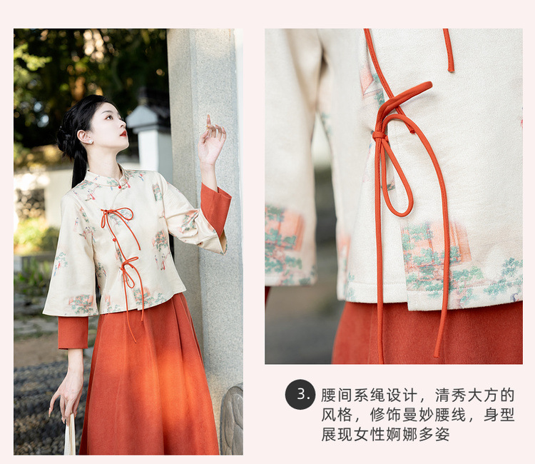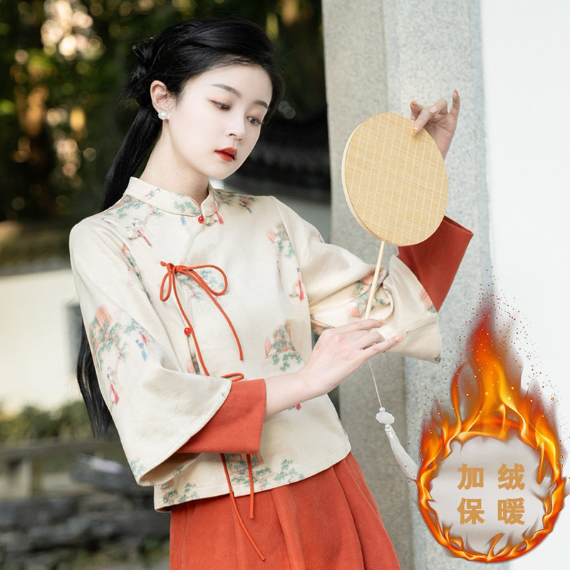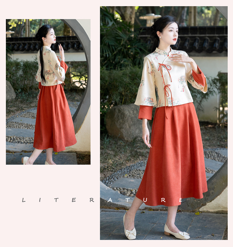 Новый Улучшенный Чонсам в китайском стиле, свободная Теплая Бархатная винтажная верхняя юбка из двух предметов, комплект для тура по саду