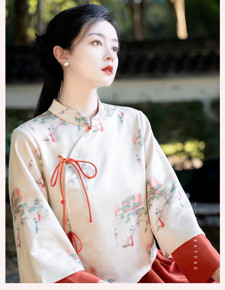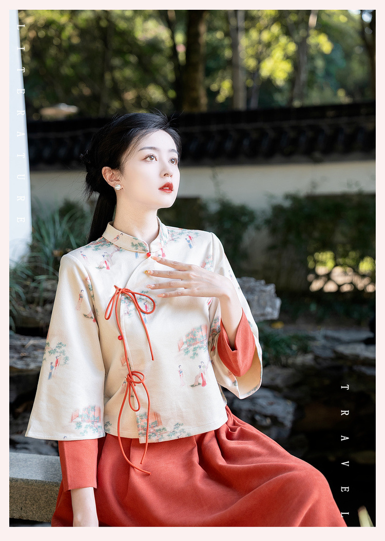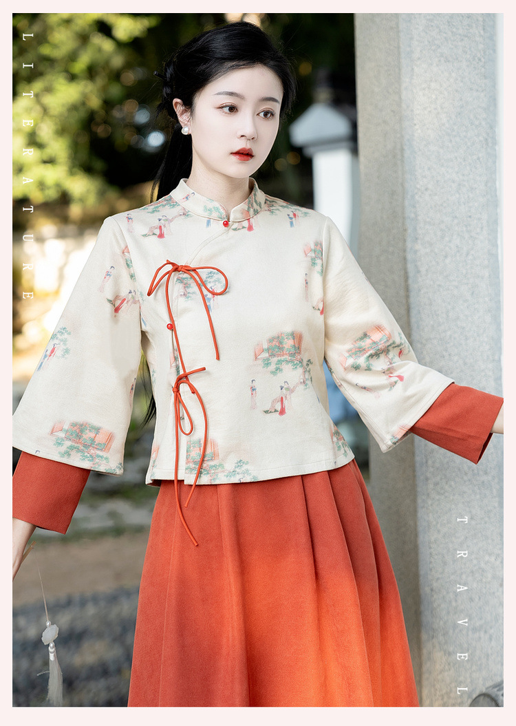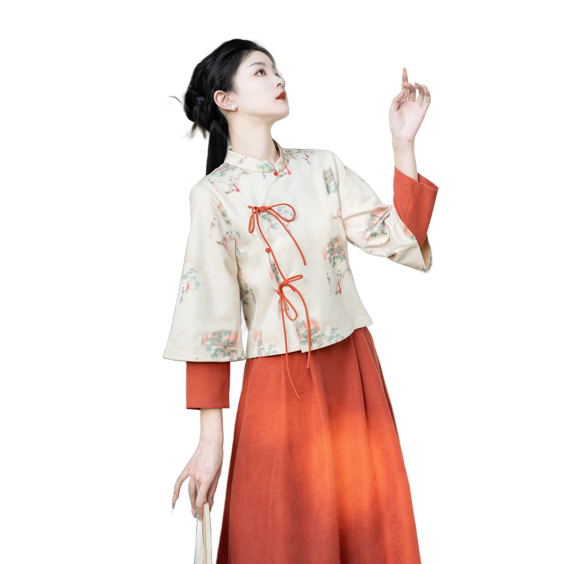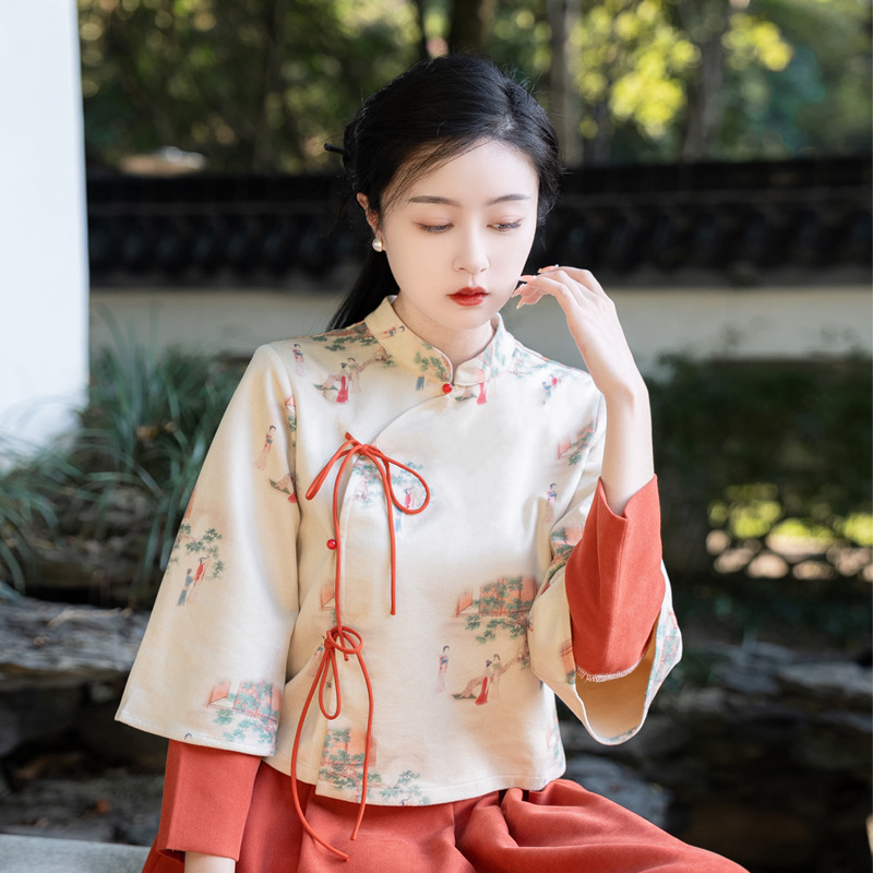 Новый Улучшенный Чонсам в китайском стиле, свободная Теплая Бархатная винтажная верхняя юбка из двух предметов, комплект для тура по саду