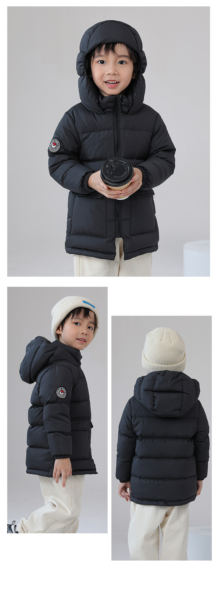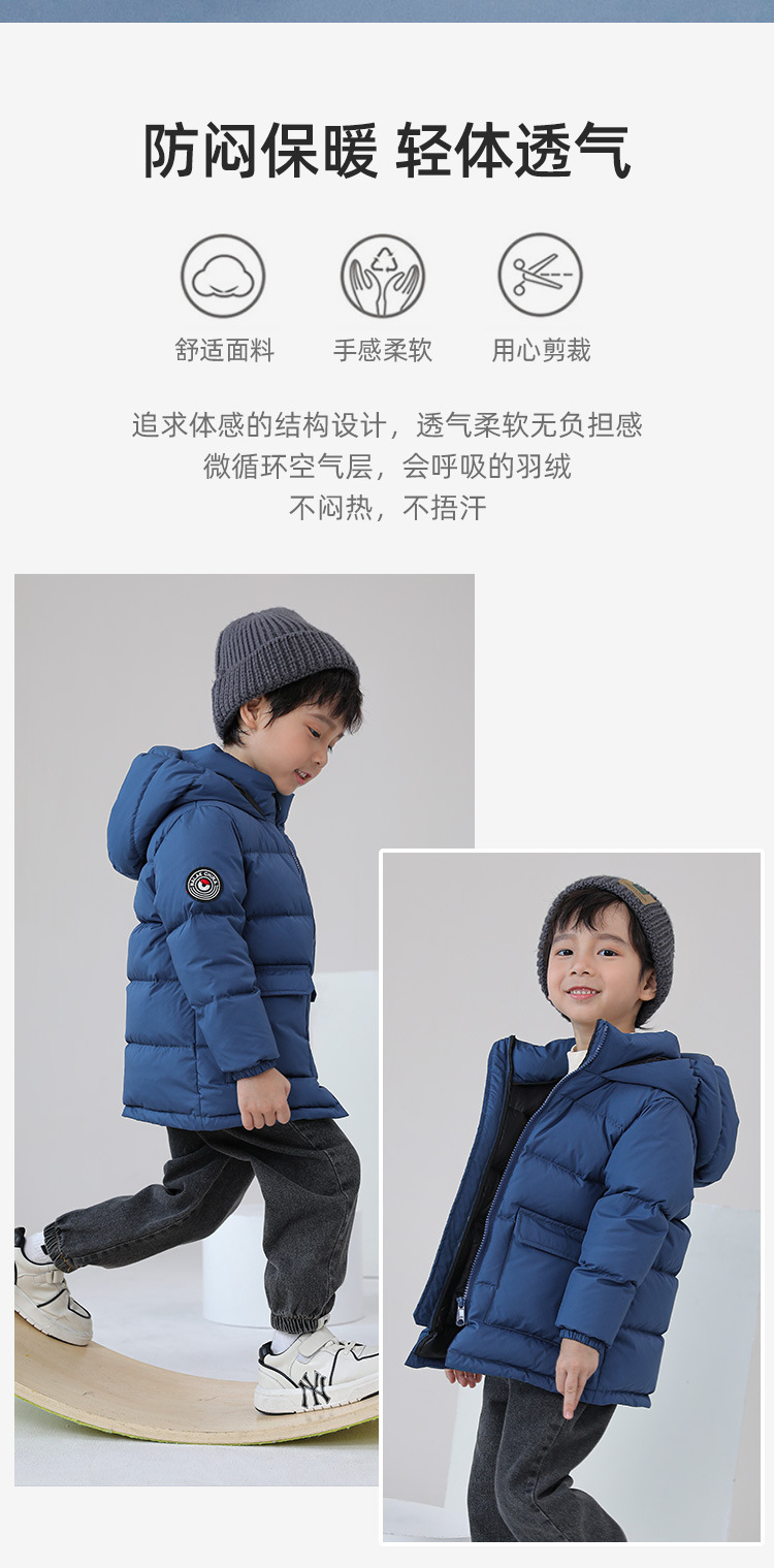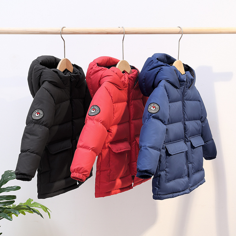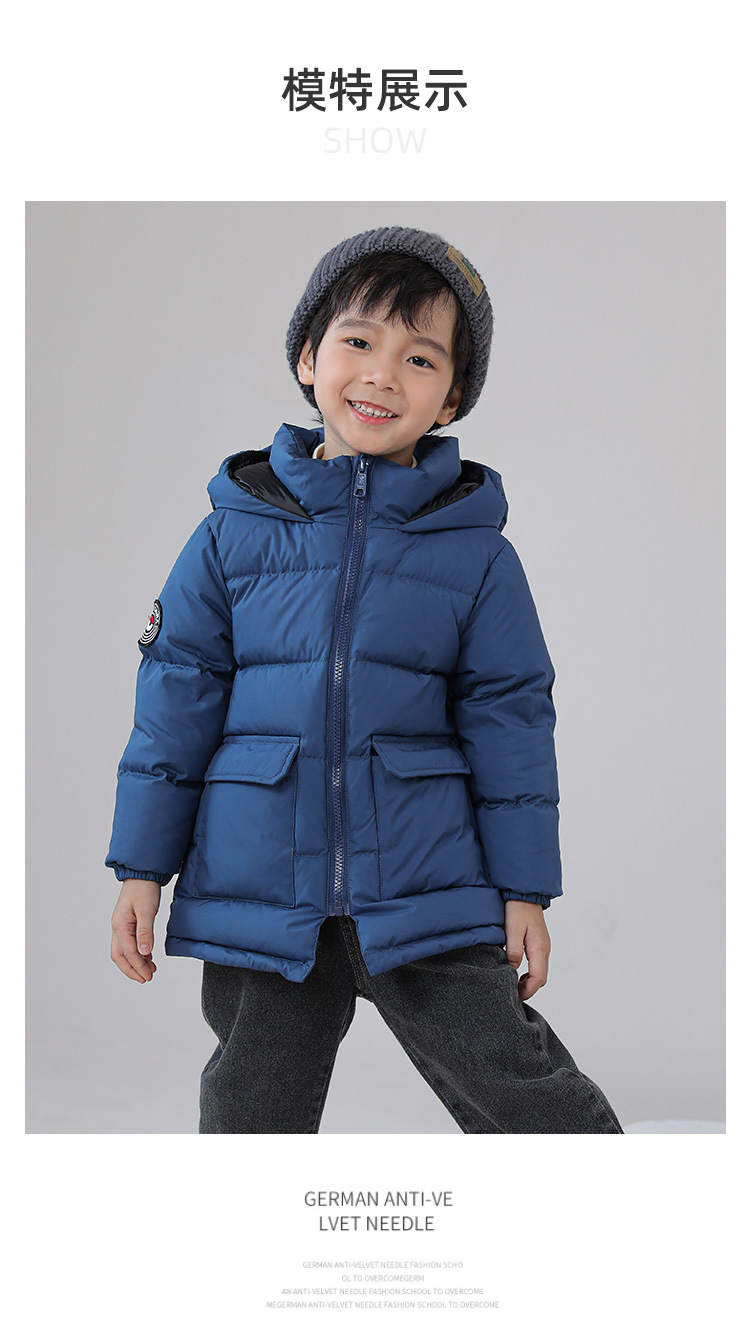 Детская одежда 2023, детский пуховик, утолщенный белый утиный пух средней длины, детская зимняя куртка среднего и большого размера, дропшиппинг