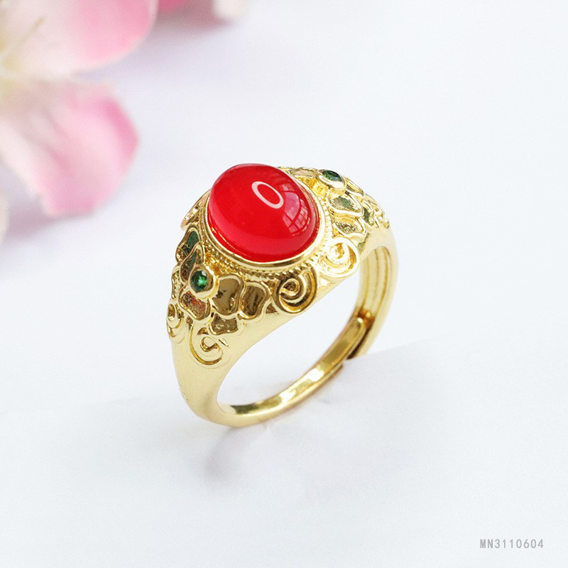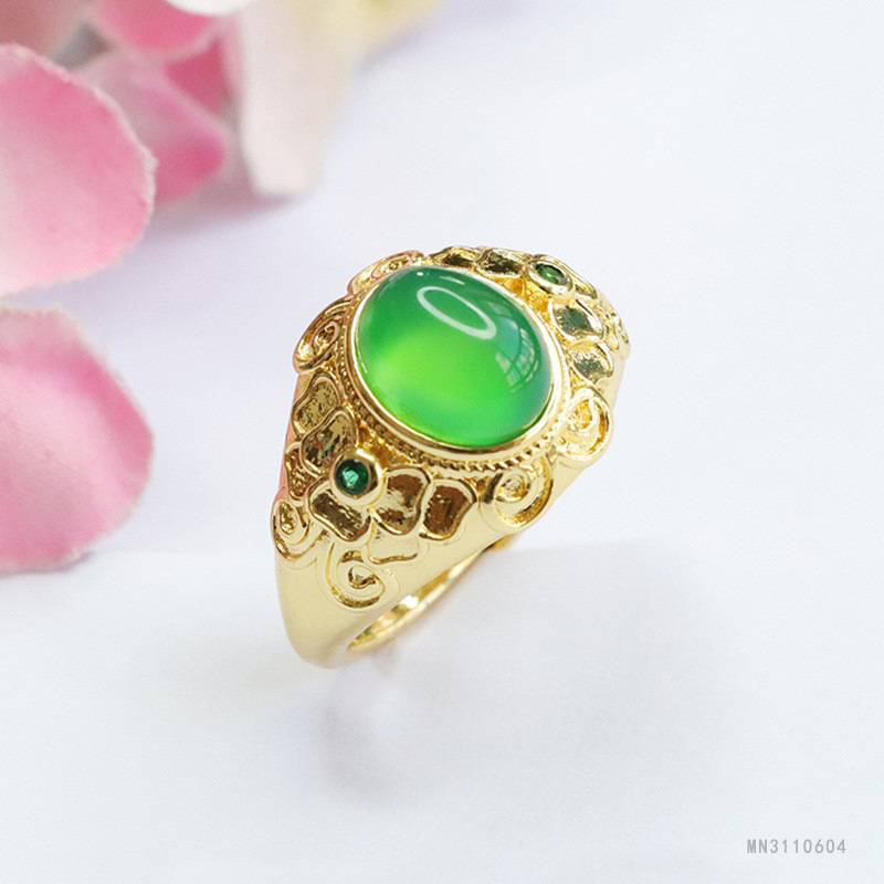 Yuyu натуральный зеленый халцедон кольцо голубь красный агат кольцо дворец ветровые украшения оптовая продажа поколение MN3110604