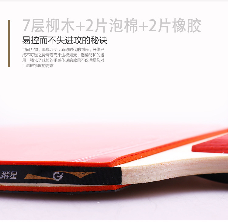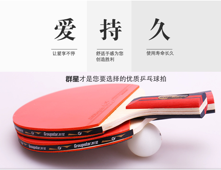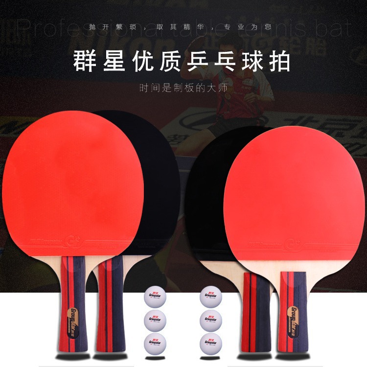 Ракетка для настольного тенниса Qunxing GS6131 с набором двойных ракеток с 4 шариками для учащихся начальной и средней школы, детей, начинающих, горизонтальная и прямая ракетка