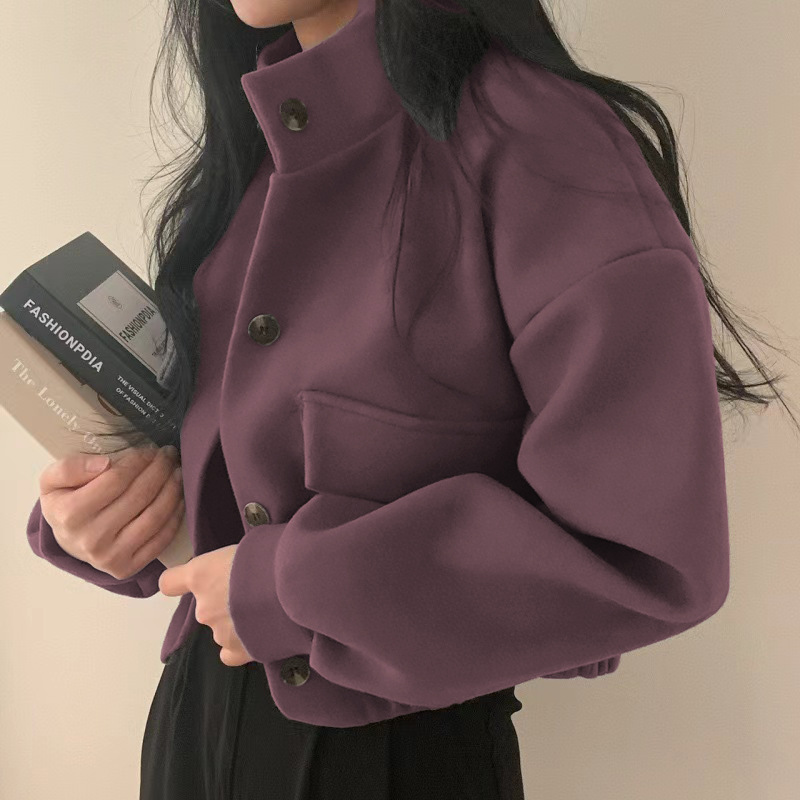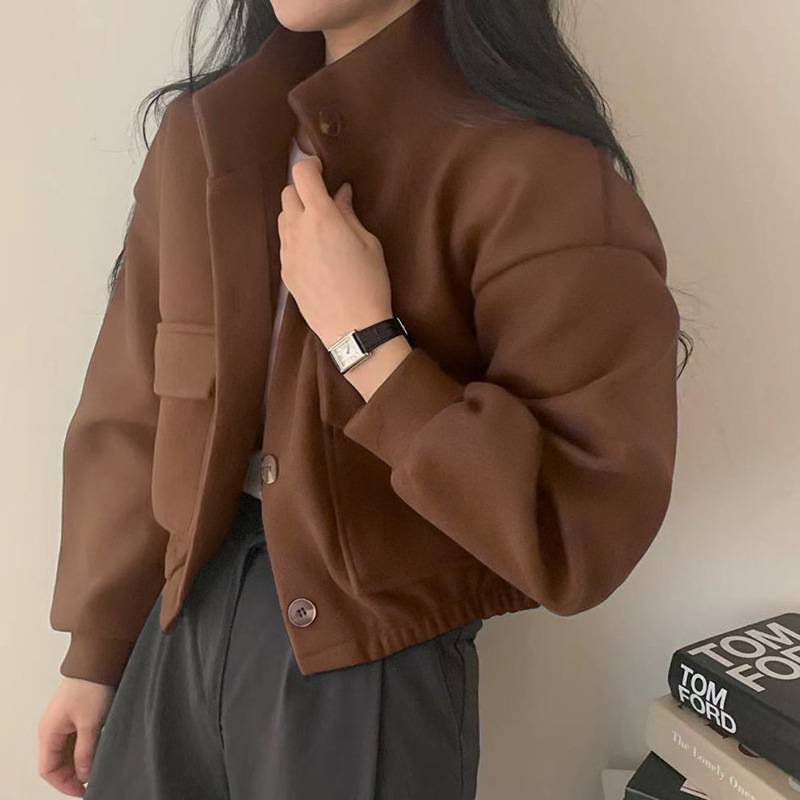 Интернет-знаменитости крутой красивый корейский стиль осень и зима новый воротник-стойка ниша короткое ленивое стильное свободное повседневное шерстяное пальто для женщин