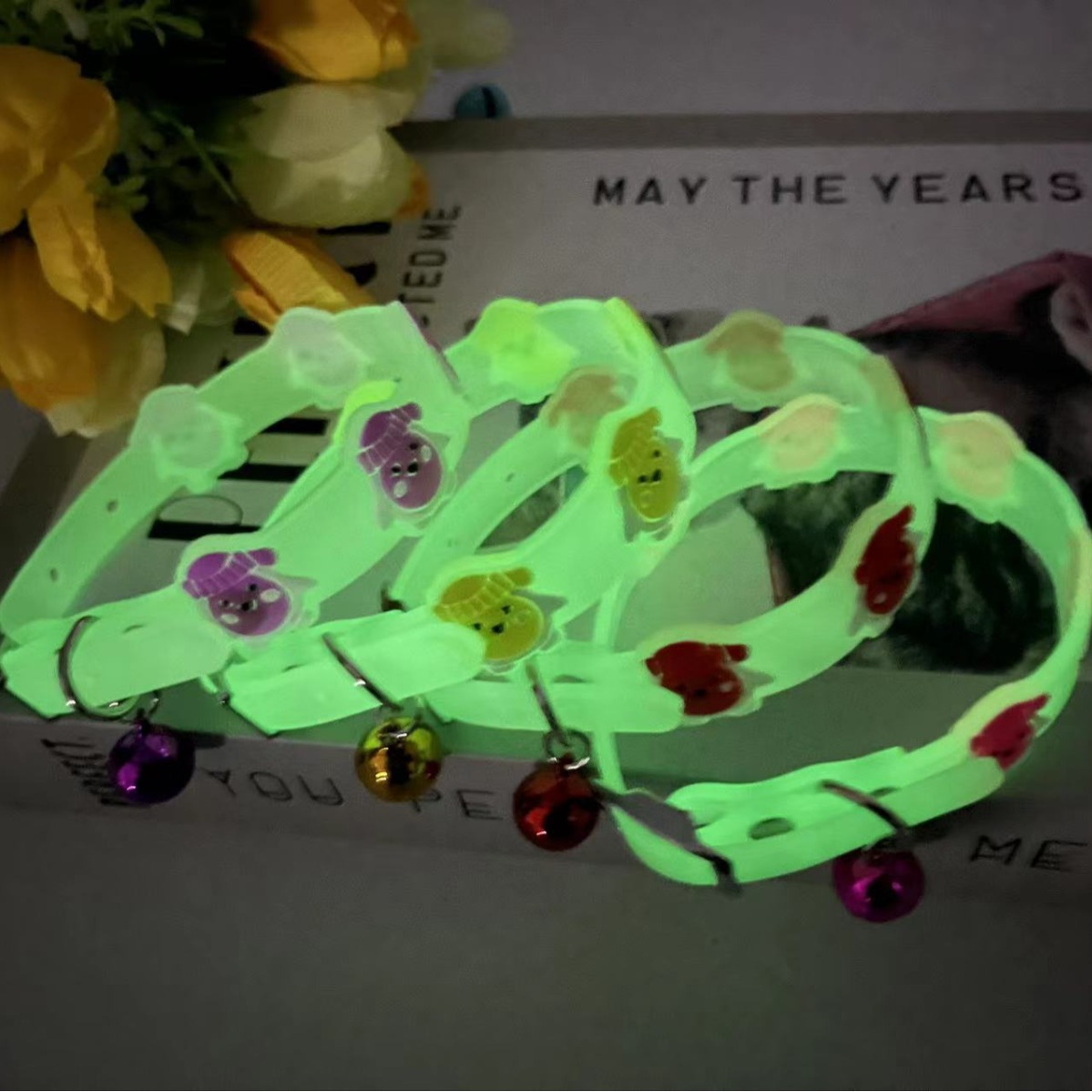 Светящаяся в темноте кошачья рыба; светящийся в темноте пингвин; Светящийся в темноте цветок кошки; Большое свечение в свечении; Светящаяся в темноте собака кусает кости; Светящиеся кости с черными краями; Светящиеся две собаки и одна кость; Светящиеся в темноте буквы любят; Светящийся КЕСТ кот; Светящиеся в темноте принты с тремя ножками; Светящиеся три кошачьи головки; Светящийся средний щенок; Светящаяся в темноте толстая голова рыба; Светящиеся черные следы по краям; Светящийся в темноте галстук-бабочка