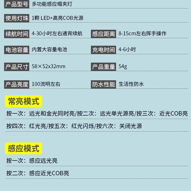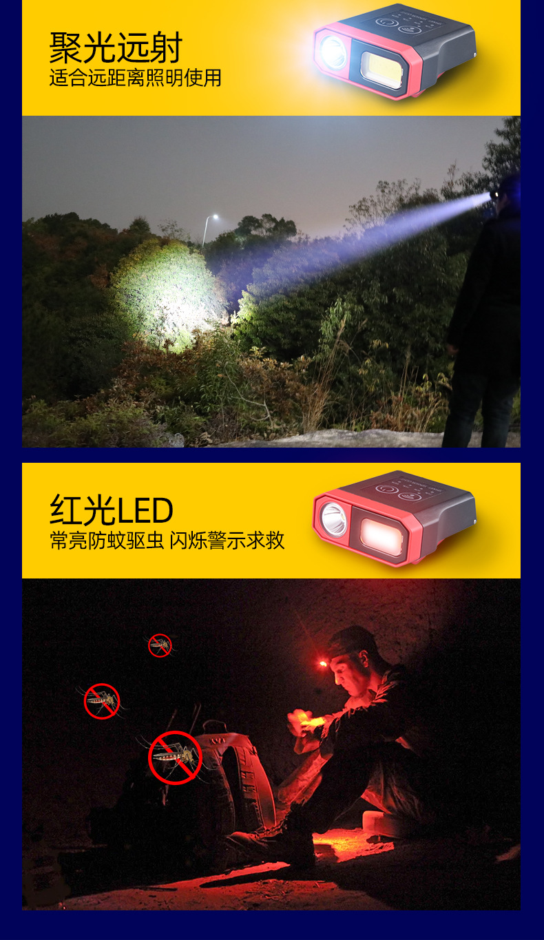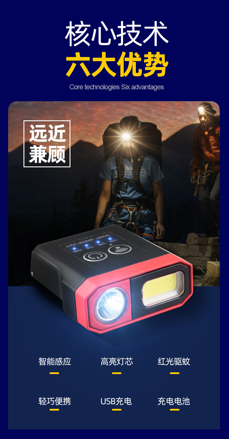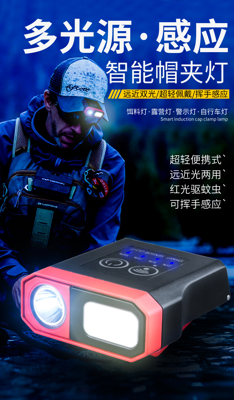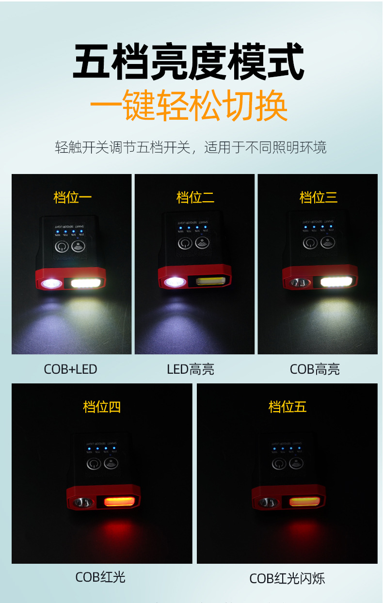 Новый ультраяркий сенсорный налобный фонарь, водонепроницаемый трёхточечный фонарь с креплением на клипсе, COB-лампа с красным светом для ночной рыбалки и отпугивания комаров, мощный свет