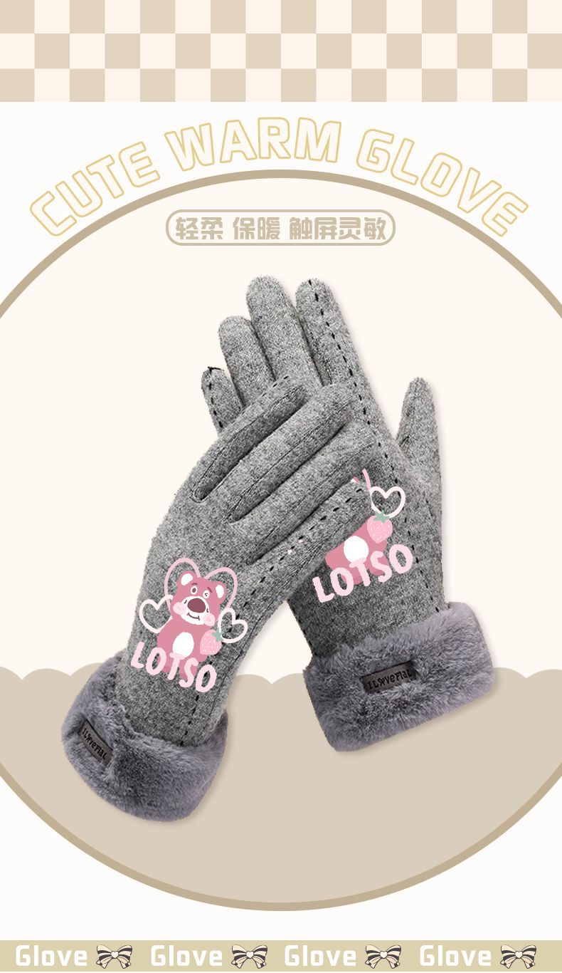 Клубничный медведь в той же перчатке милый мультфильм девушка розовый черный зимний бархатный сенсорный экран теплая пятипалый студент