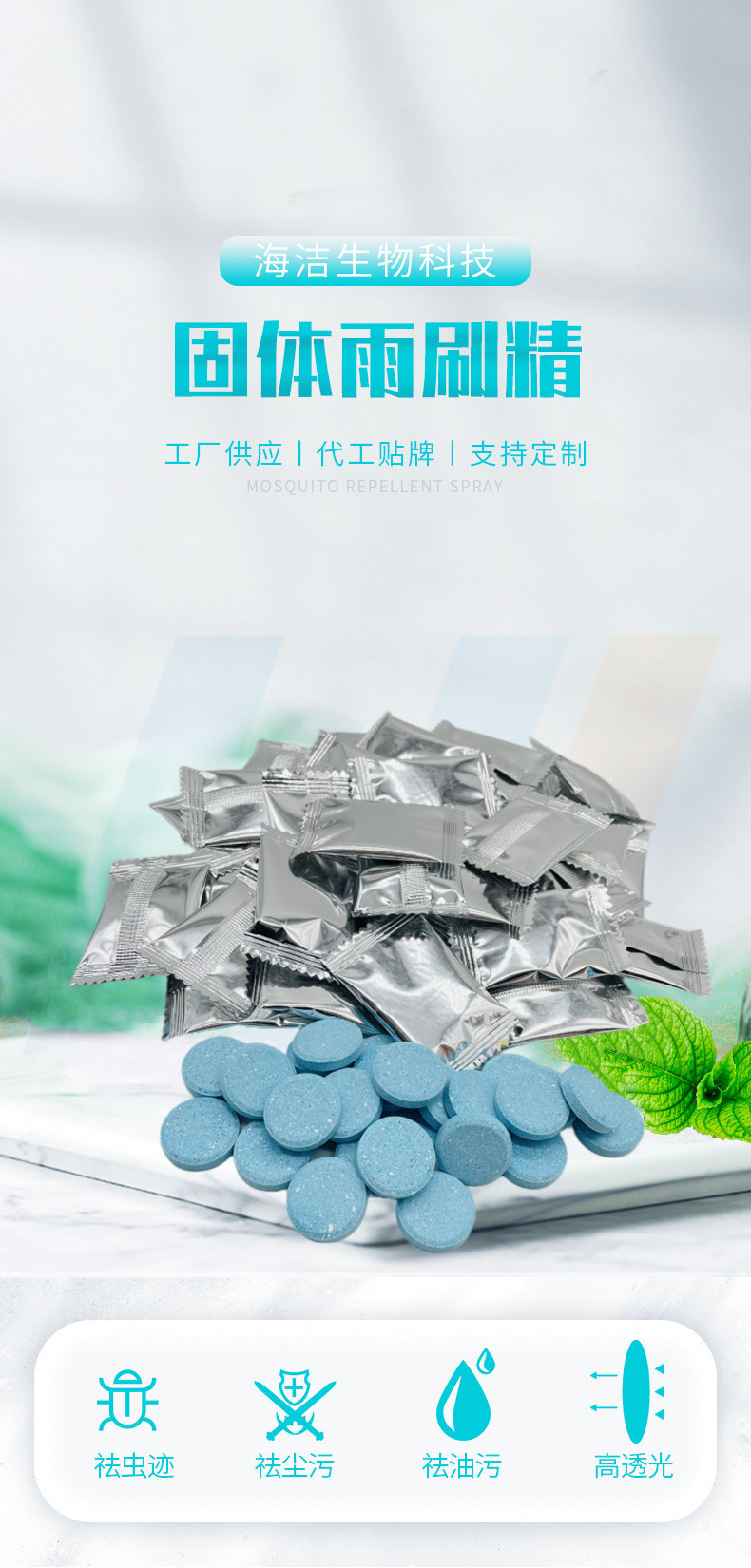Концентрированные автомобильные стеклянные водяные шипучие таблетки, твердые стеклоочистители, обезжиривающая пленка для воды, высокая коэффициент пропускания, универсальная для всех сезонов