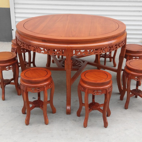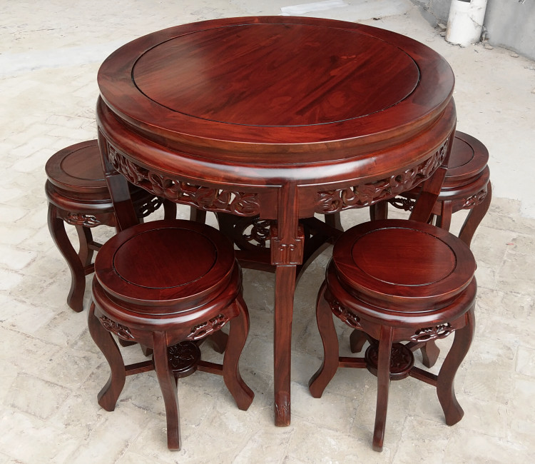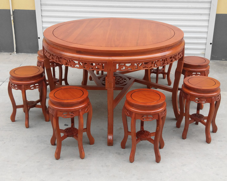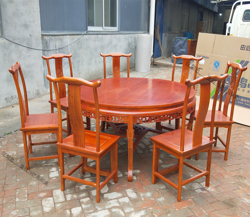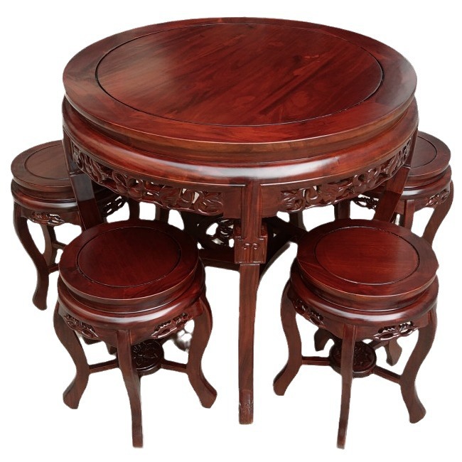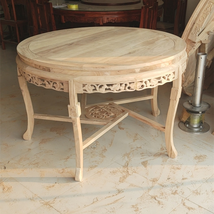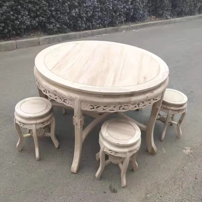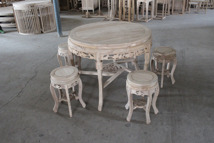 Комбинация обеденного стола и стула из цельного дерева Старый вяз Белый Stubble Белый эмбрион Заготовка Круглый стол Античная мебель Мин и Цин Новый китайский обеденный стол