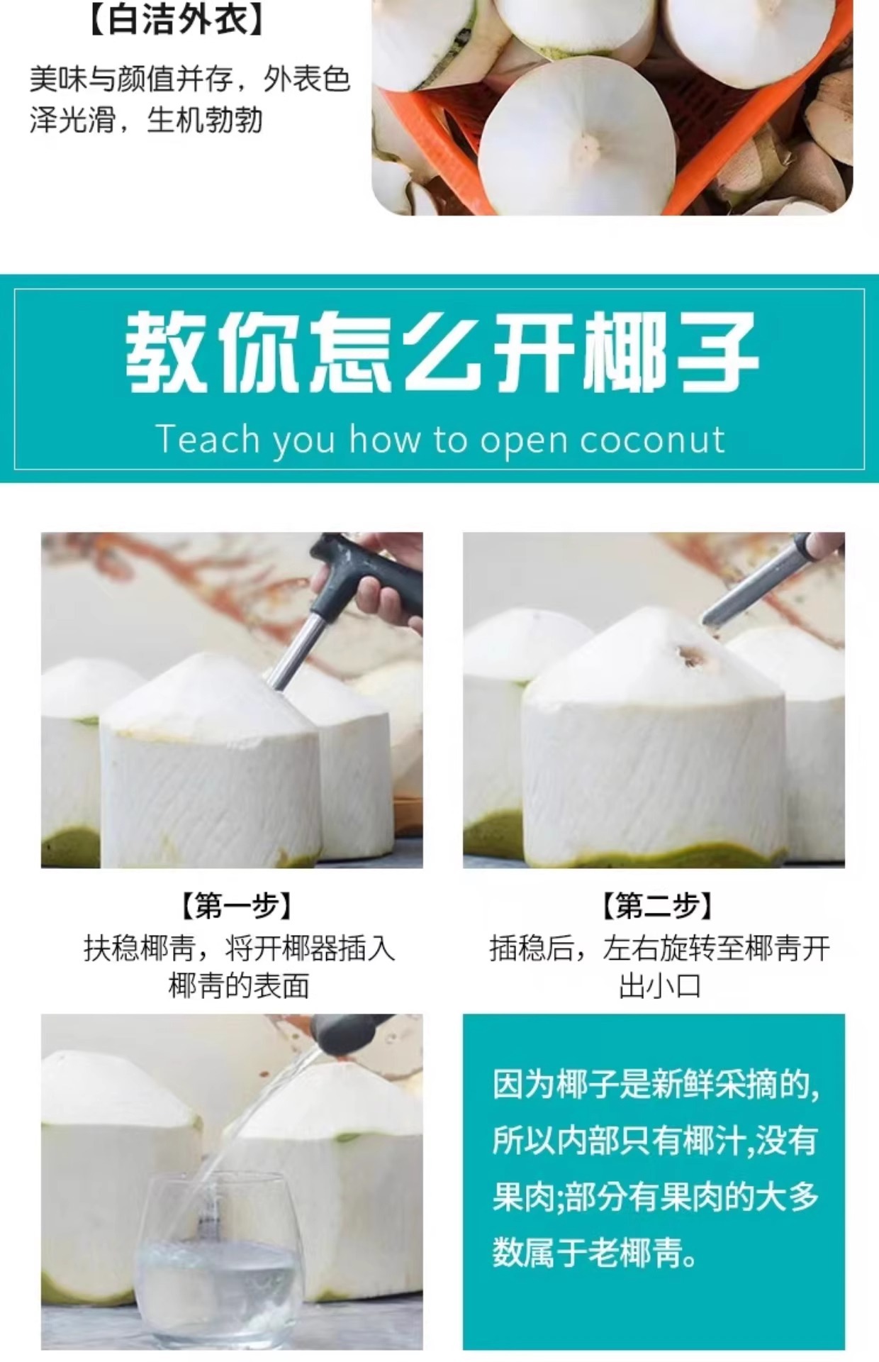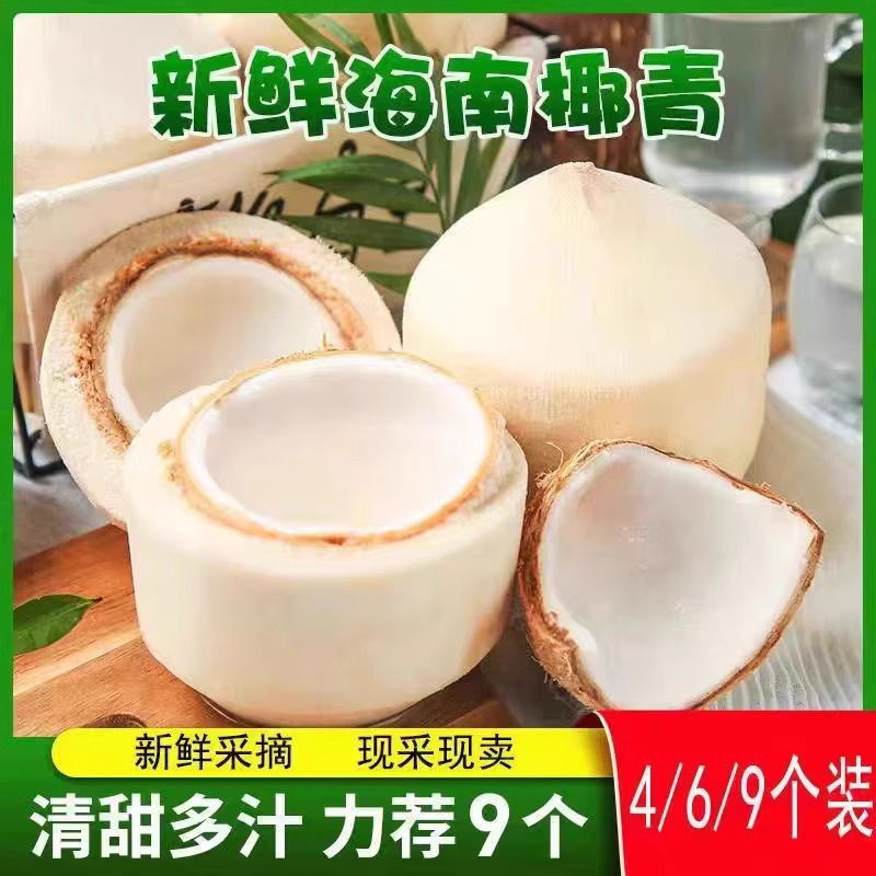 Оптовая продажа свежих кокосов из Хайнаня: 9 кокосовых шариков с открытыми крышками, 4 открывалки для кокосов, фрукты оригинального происхождения.