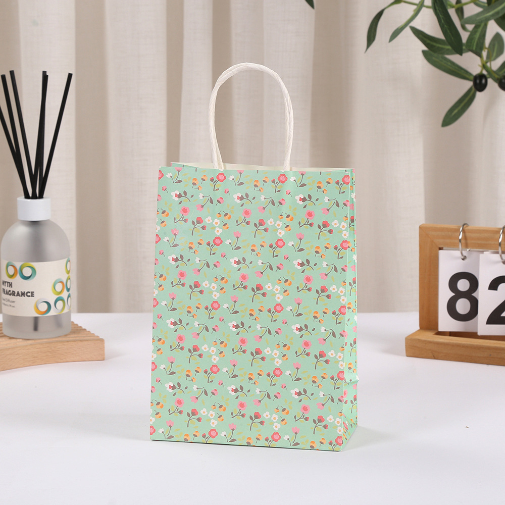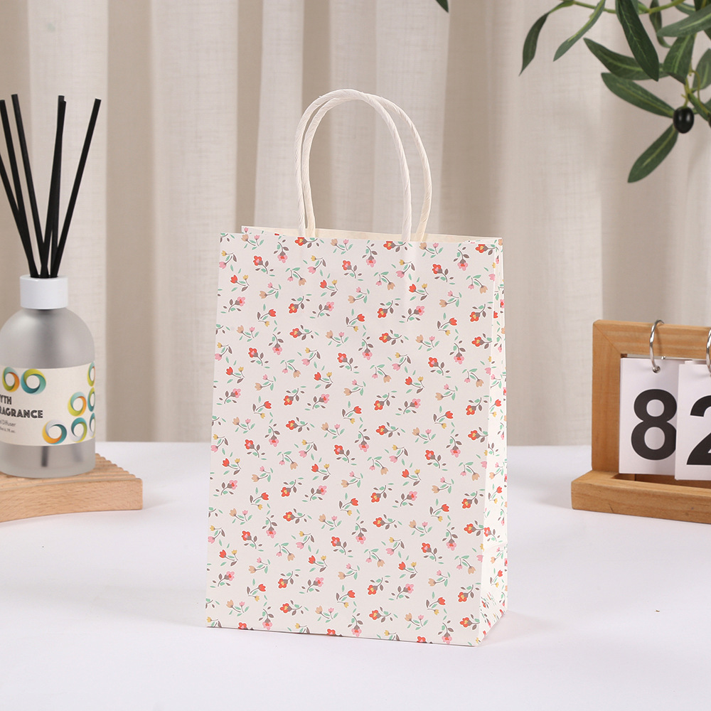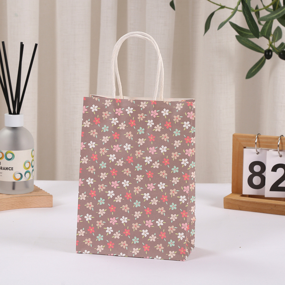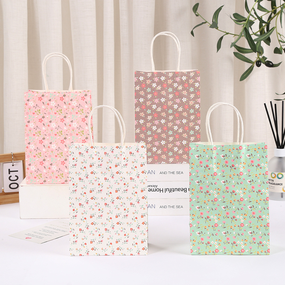 Пасторальный стиль Маленький цветочный бумажный пакет из крафт-бумаги Простая сумка для подарка на день рождения