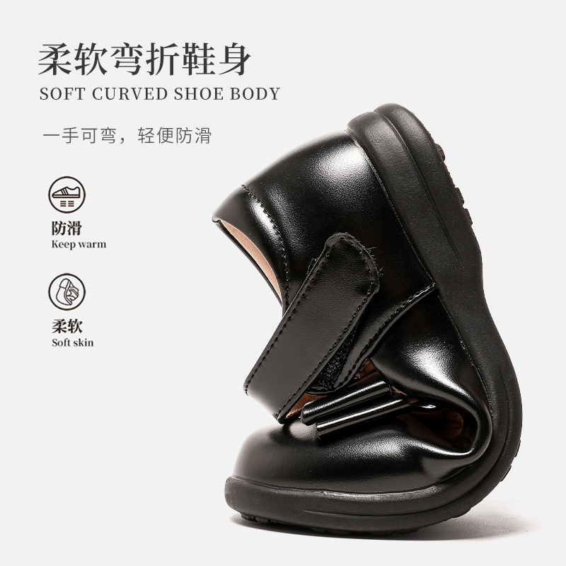 Кожаная обувь для девочек, весенне-осенняя черная детская одиночная обувь с мягкой подошвой, черные лоферы в британском стиле, обувь для большой принцессы для маленьких девочек