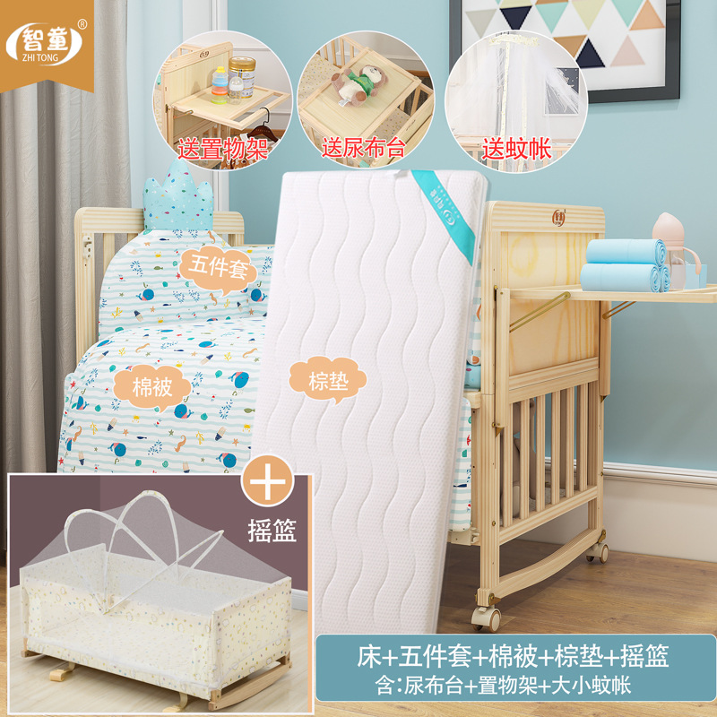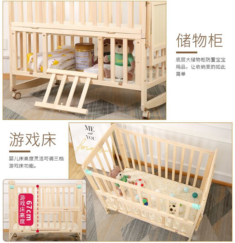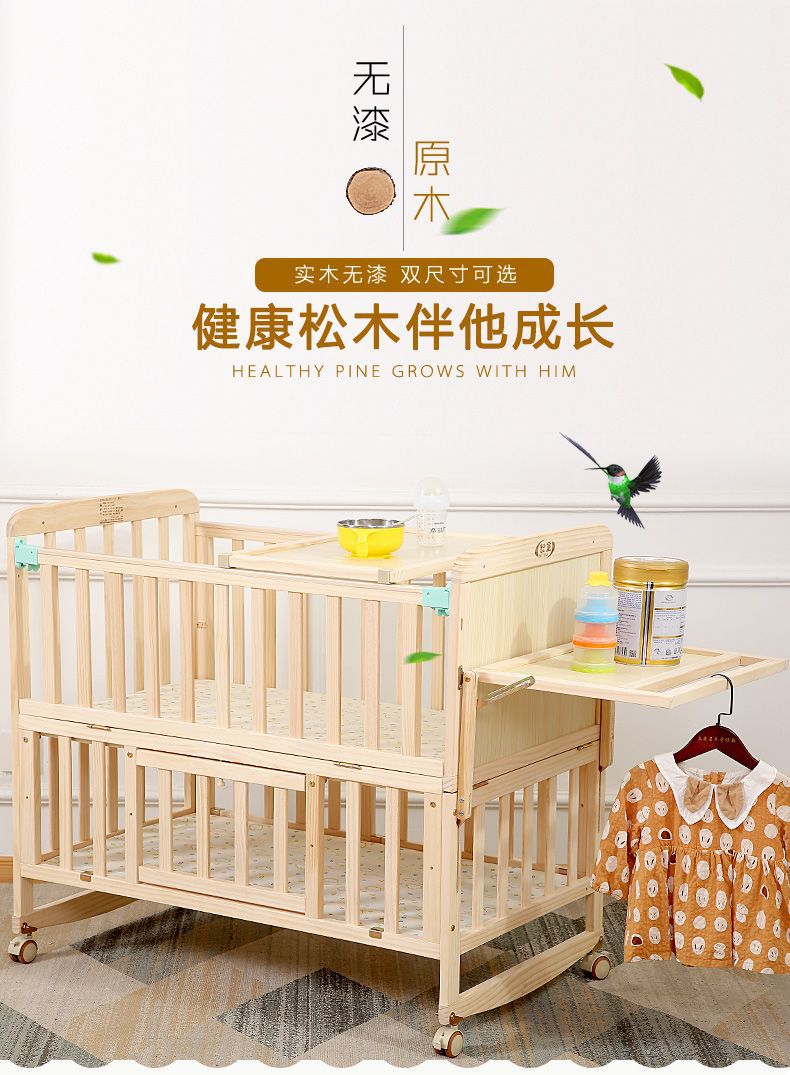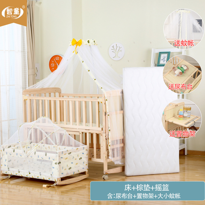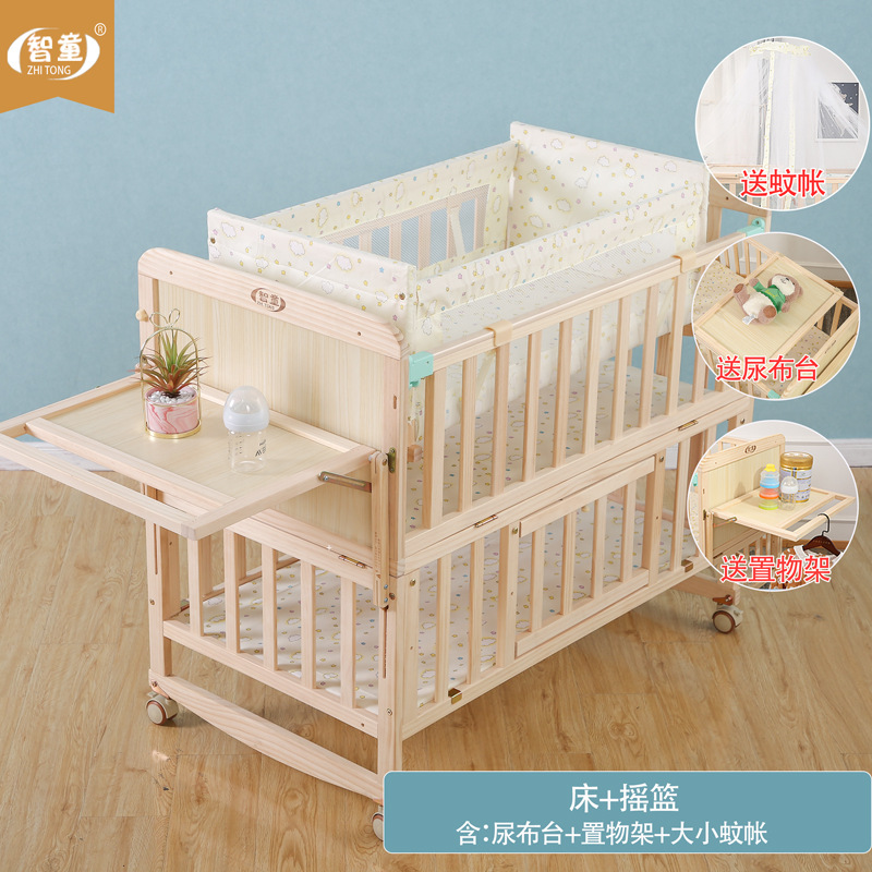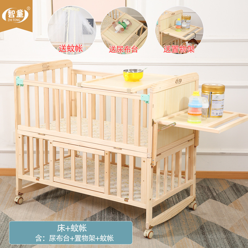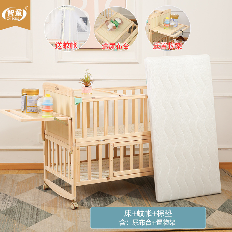 Zhitong сосновая кроватка из цельного дерева без лака детская кроватка BB Детская кроватка Колыбель многофункциональная сплайсинговая большая кровать для новорожденного