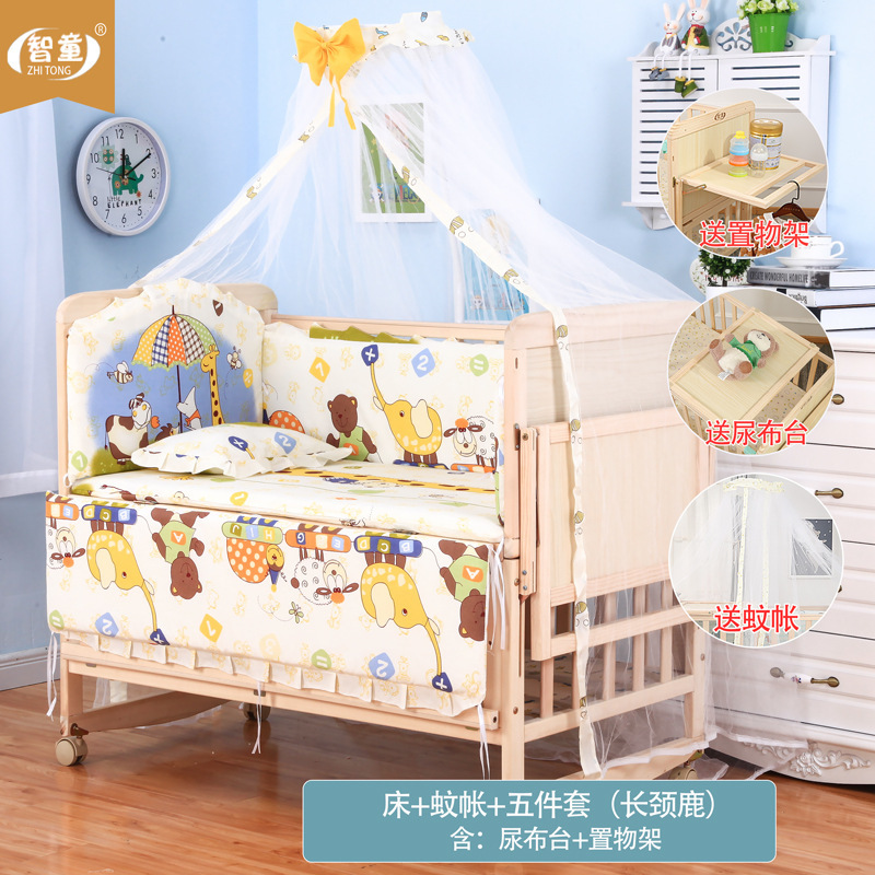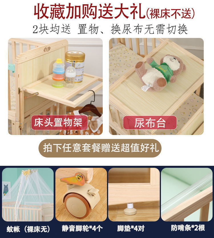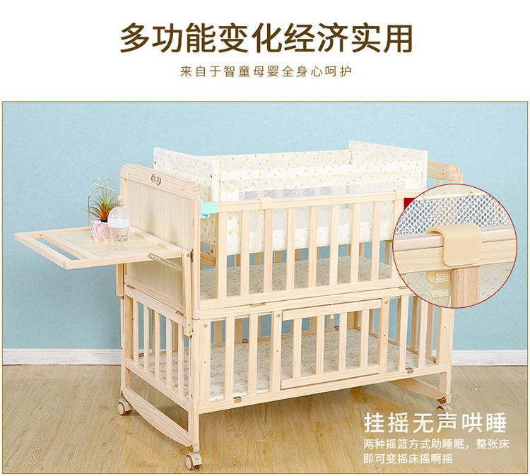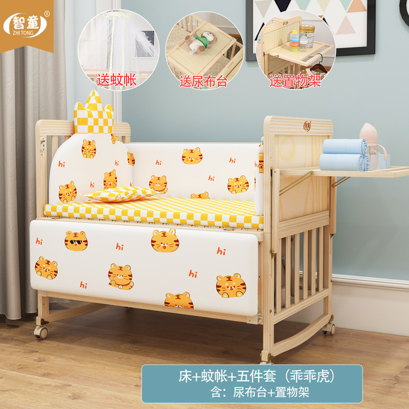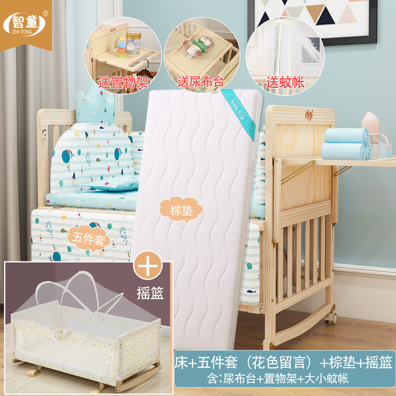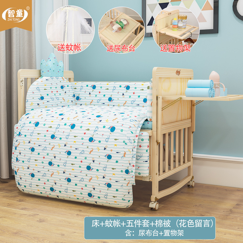 Zhitong сосновая кроватка из цельного дерева без лака детская кроватка BB Детская кроватка Колыбель многофункциональная сплайсинговая большая кровать для новорожденного