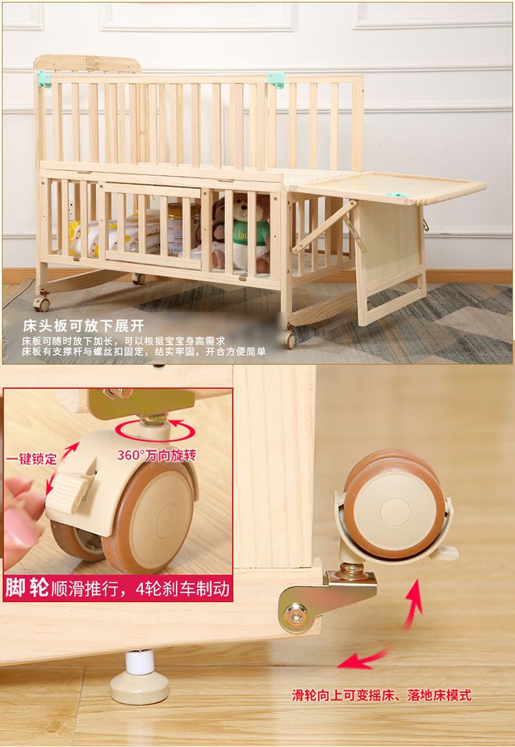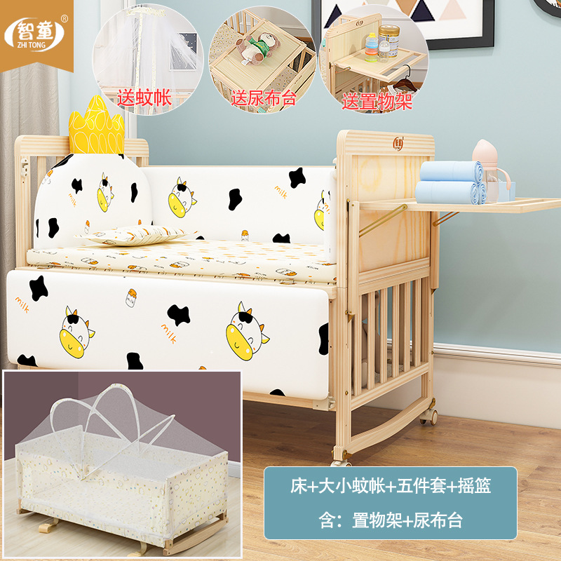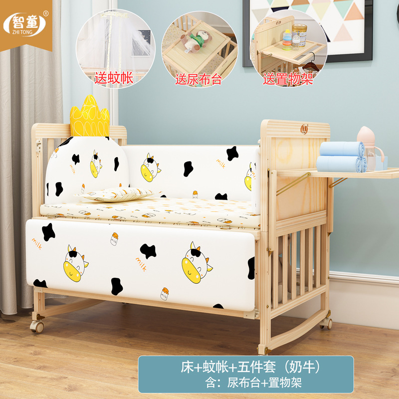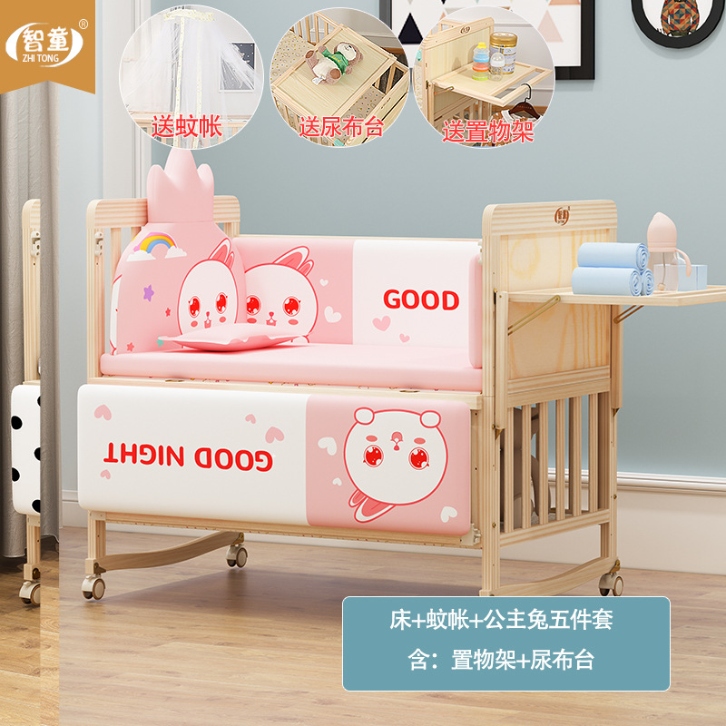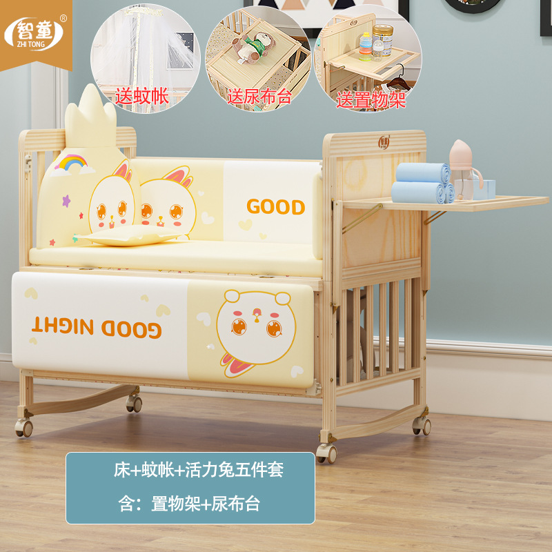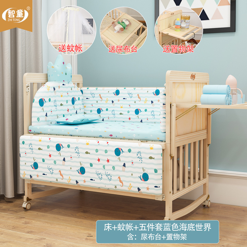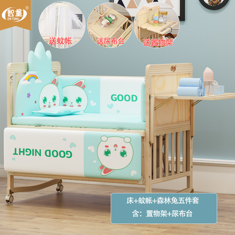 Zhitong сосновая кроватка из цельного дерева без лака детская кроватка BB Детская кроватка Колыбель многофункциональная сплайсинговая большая кровать для новорожденного