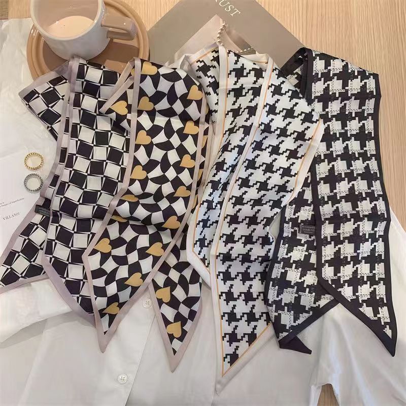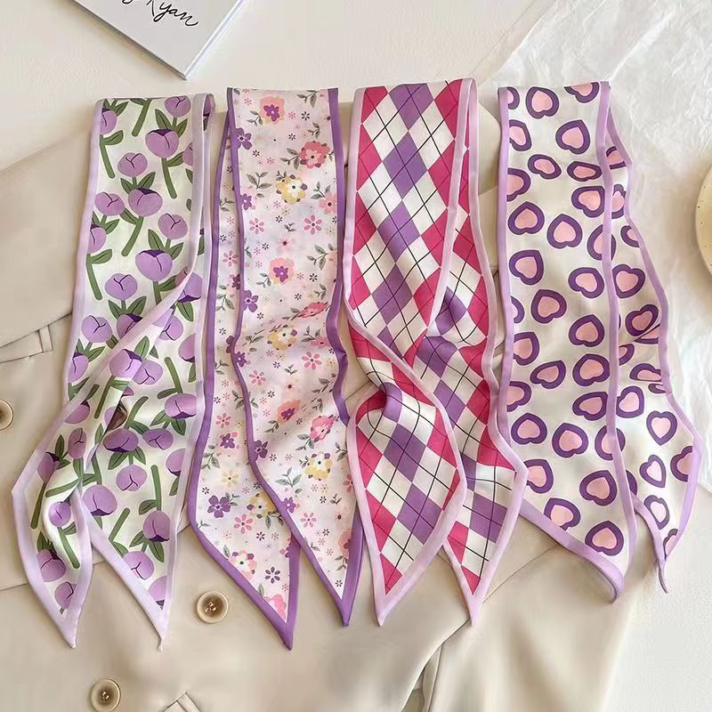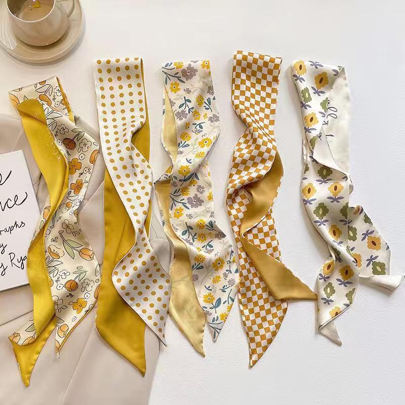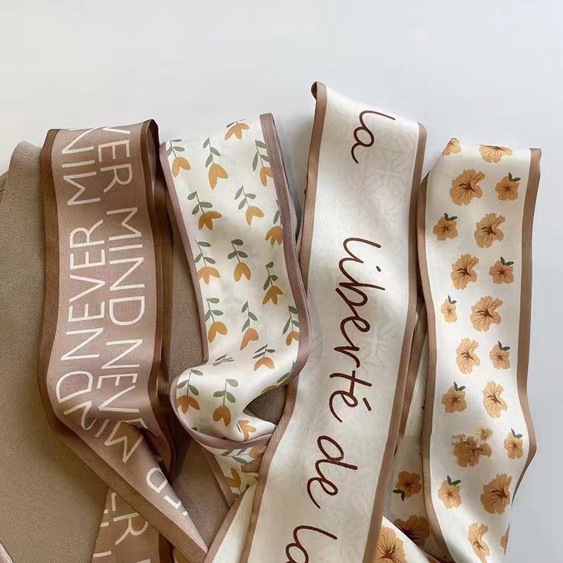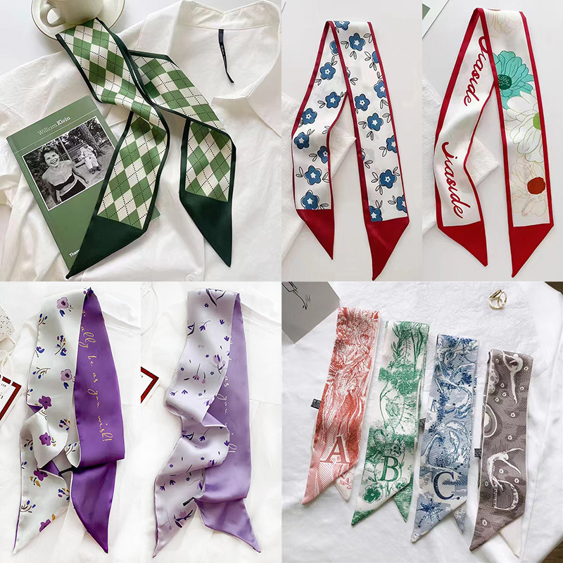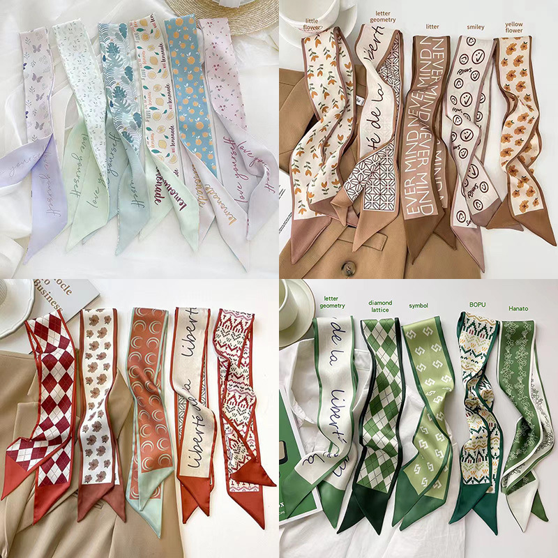 Белый и нежный зеленый маленький шелковый шарф женский весенне-летний узкий ремешок для волос резинка для волос сумка декоративный длинный шарф