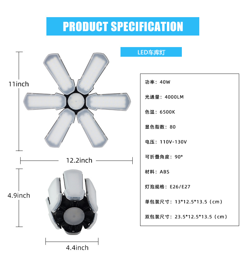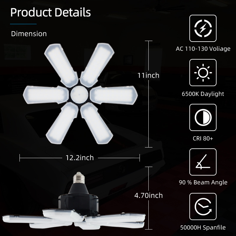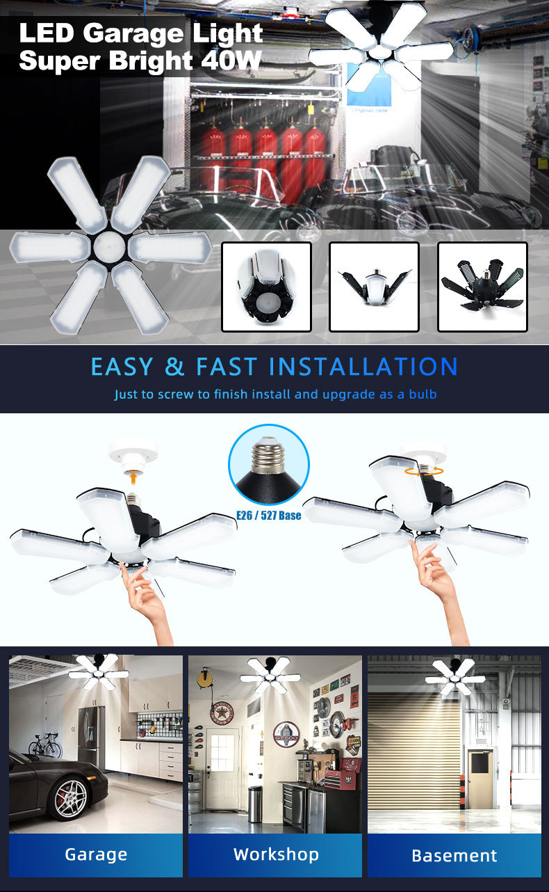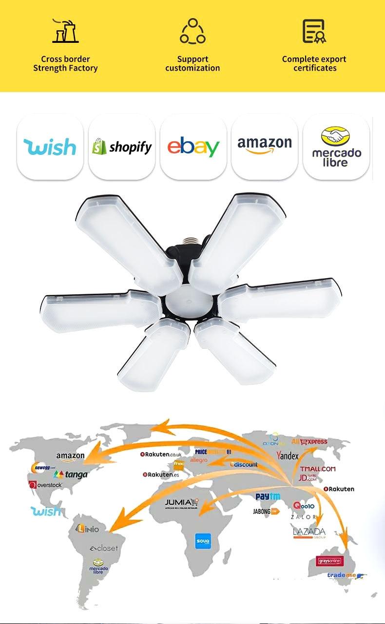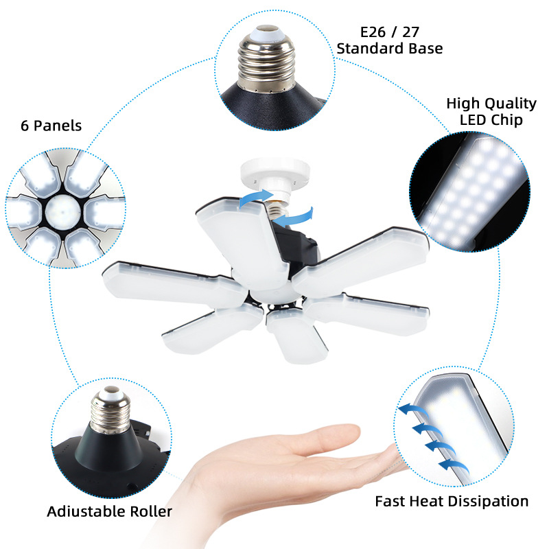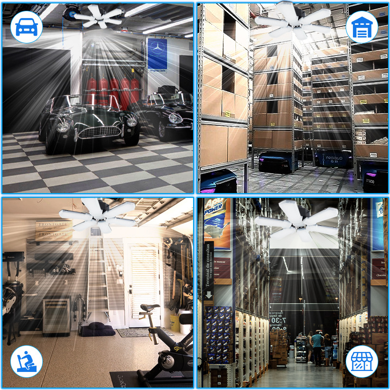 Трансграничный Новый светодиодный складной гаражный Веерообразный светильник в виде листьев складская Заводская люстра E26E27 винт 6 листьев горнодобывающая лампа