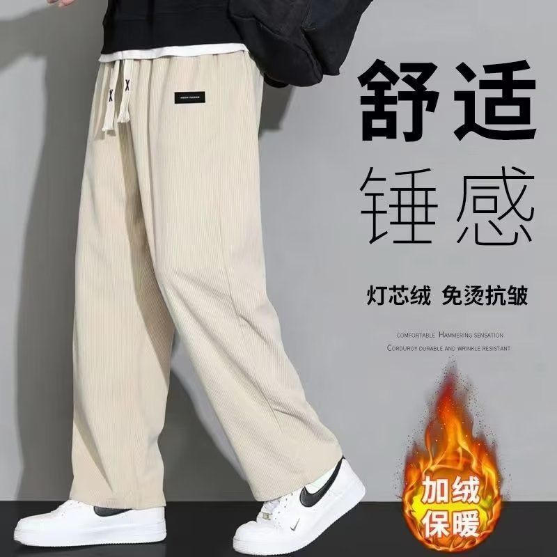 Зимние толстые повседневные длинные брюки на флисовой подкладке, мужские 2023 новый модный бренд, свободные прямые широкие спортивные брюки