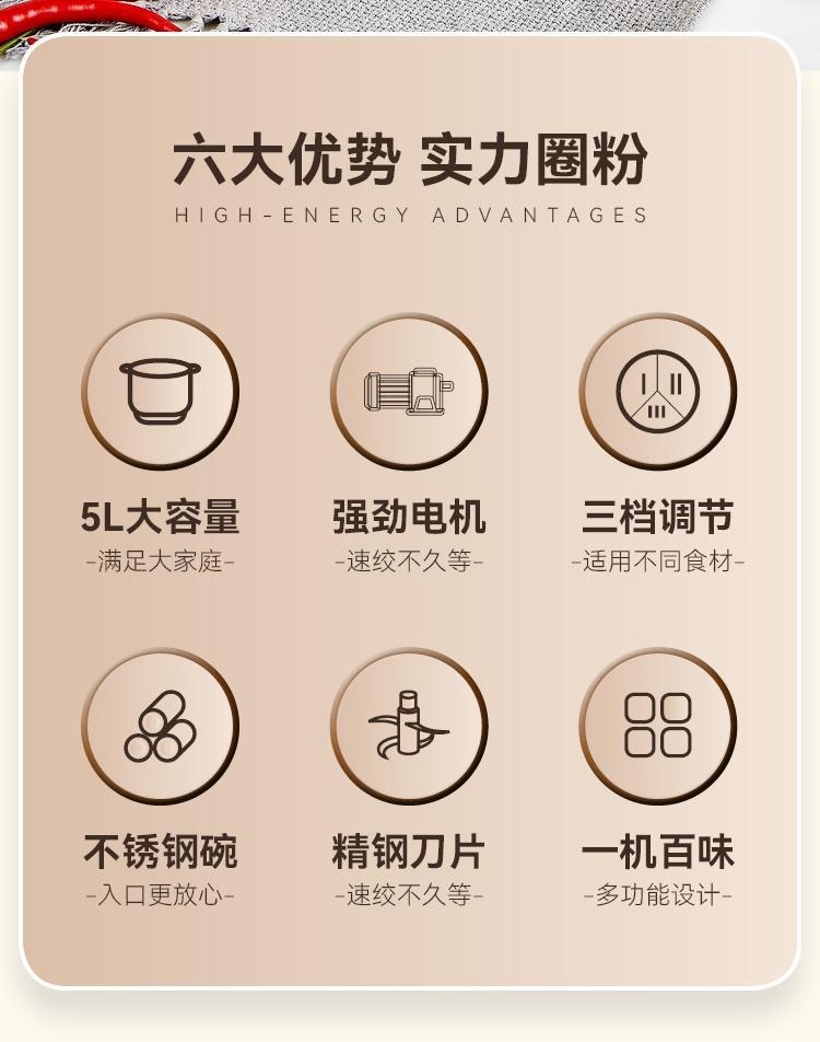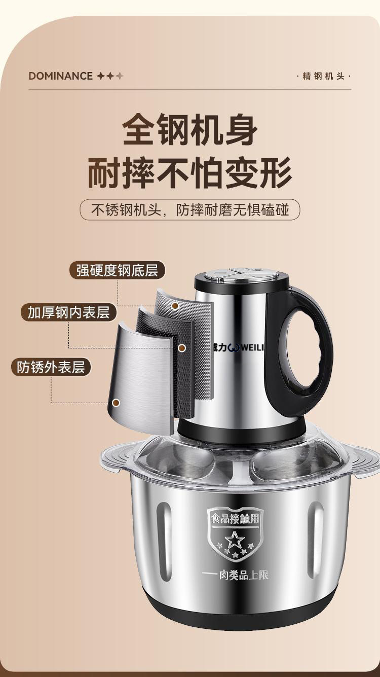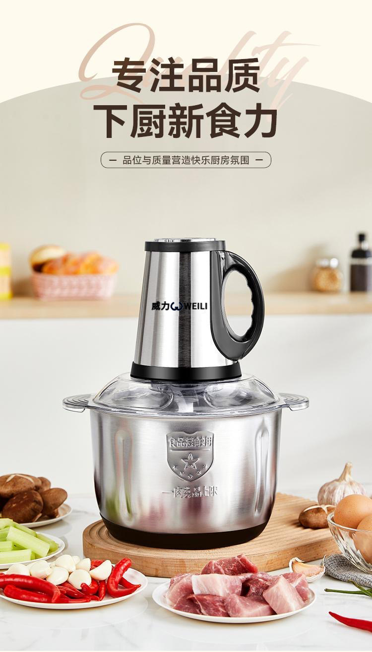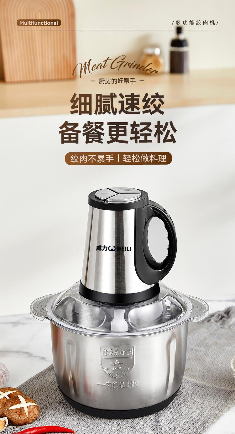Chuzhijia 5л, бытовая мясорубка из нержавеющей стали большой емкости, многофункциональная электрическая маленькая мясорубка для начинки мяса, чеснока, мяса