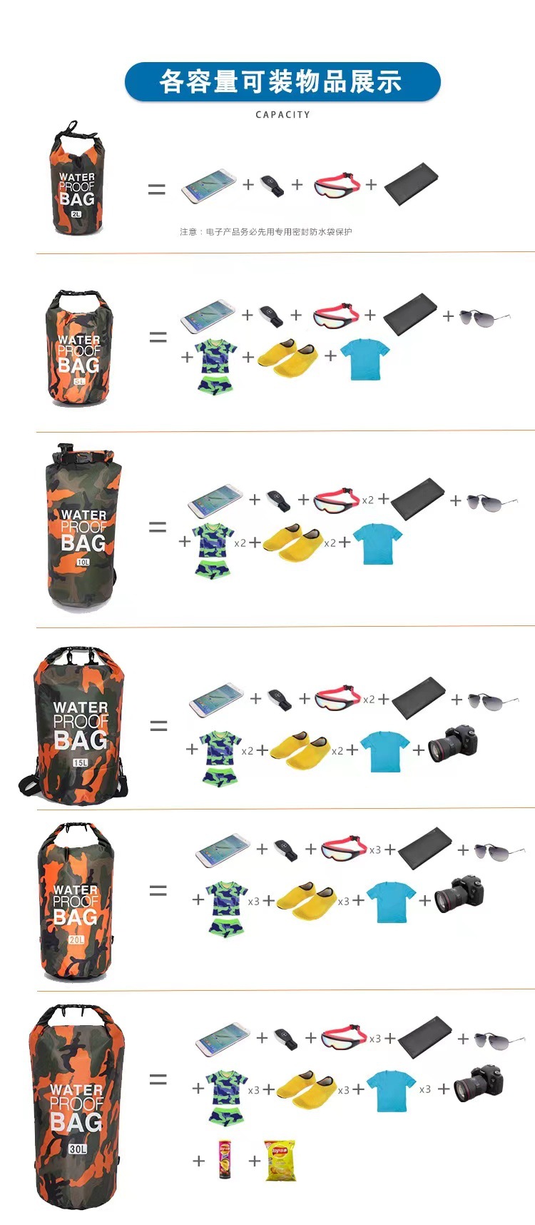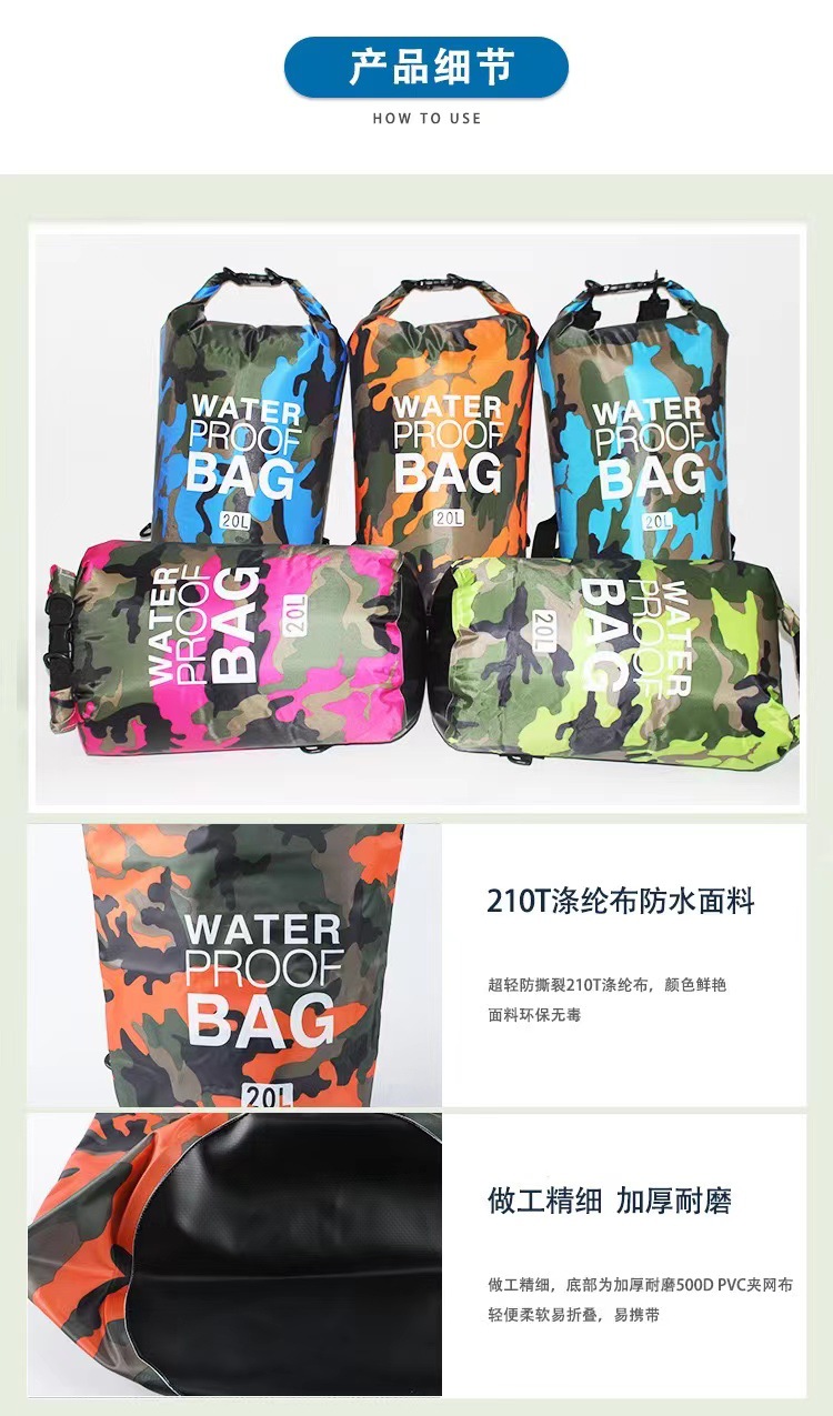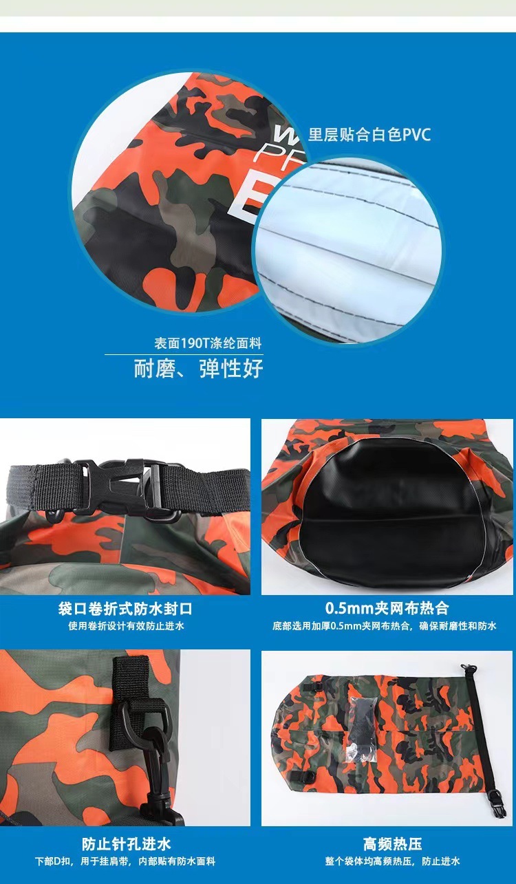 Трансграничный водонепроницаемый мешок камуфляж 210ПВХ водонепроницаемый мешок на открытом воздухе многофункциональный плавательный портативный ручей водонепроницаемый ведро спот