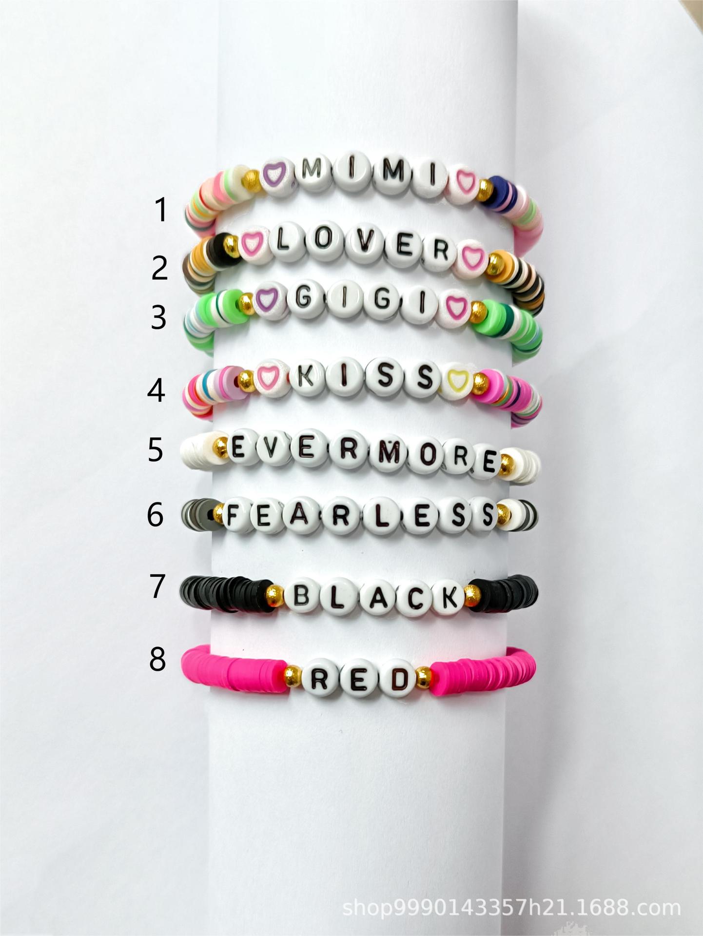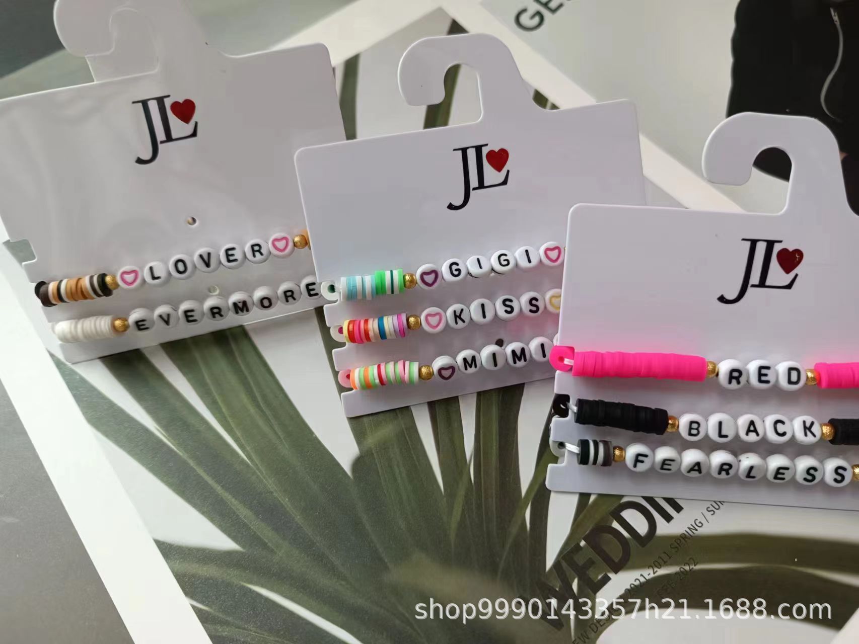 亚马逊跨境欧美爆款6mm彩色字母软陶手链阳光沙滩波西米亚风手饰