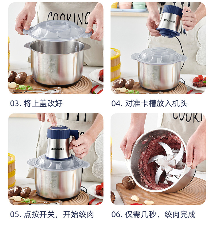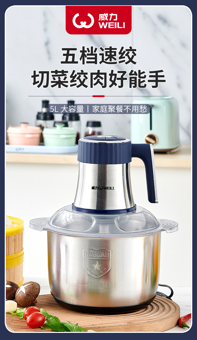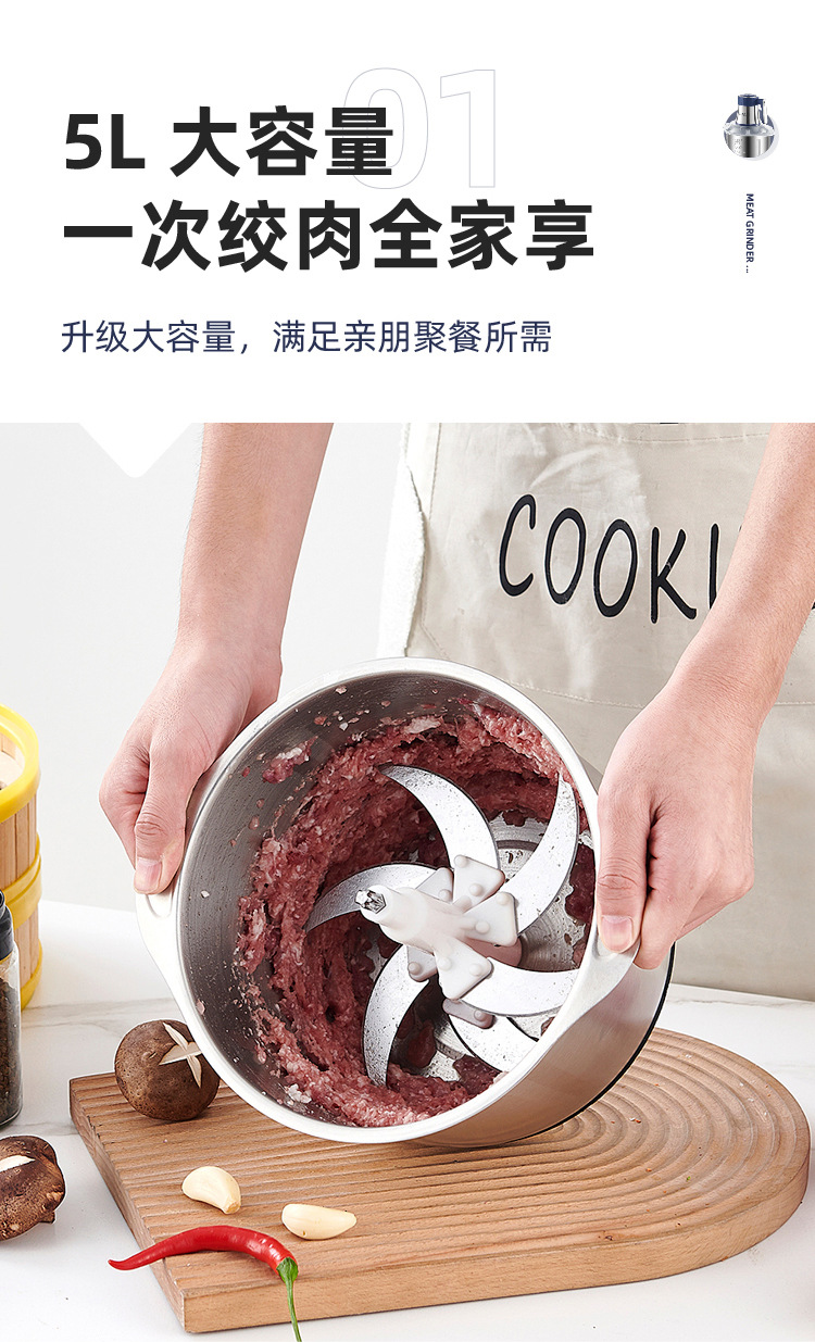 Трансграничная мощность бытовая 2L3L5L нержавеющая сталь большой емкости многофункциональная оптовая продажа Мясорубка кухонная машина Коммерческая