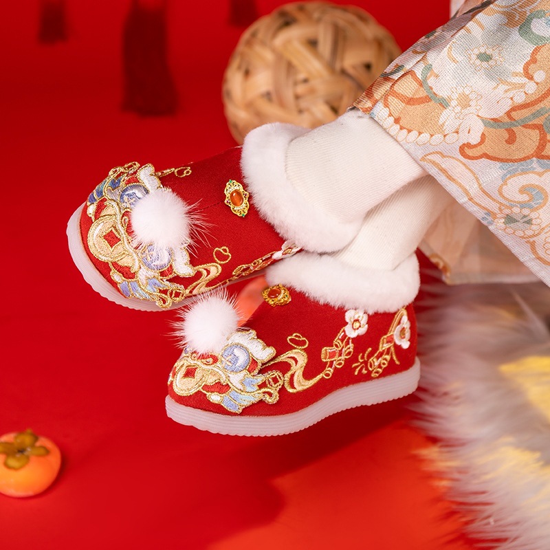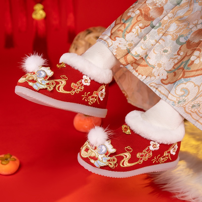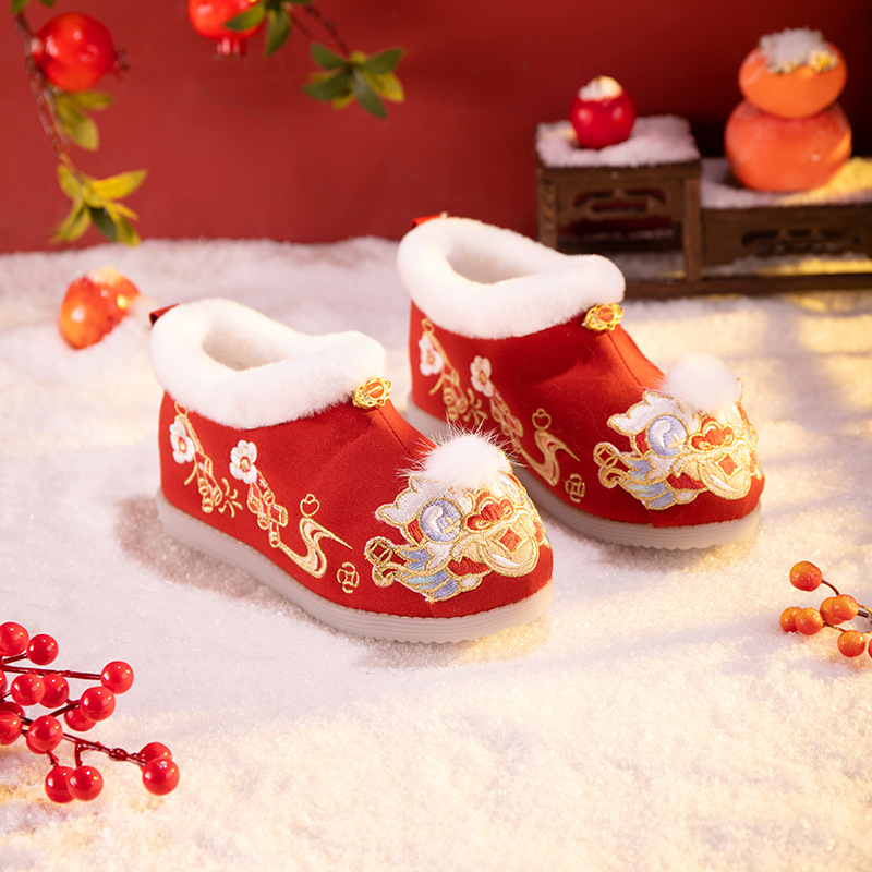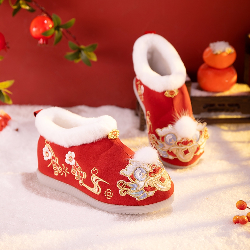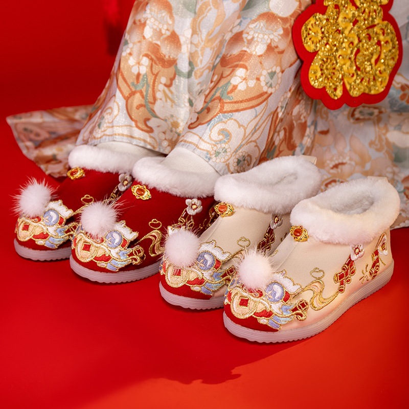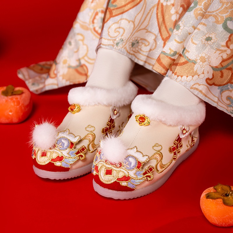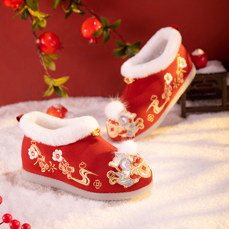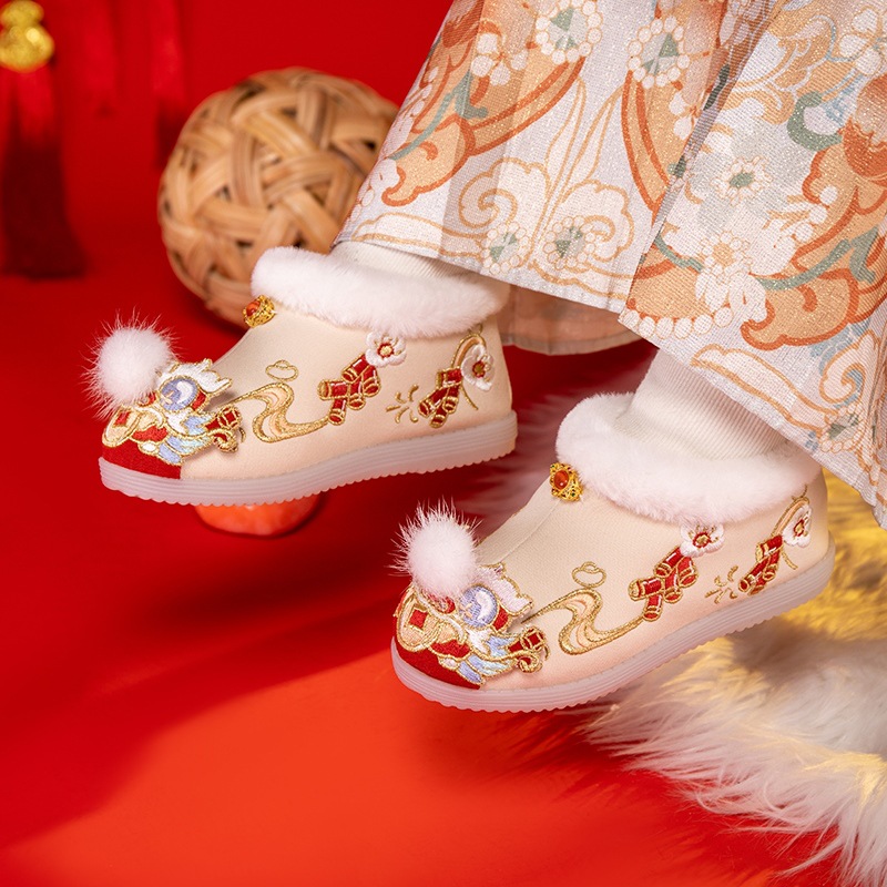 Золотой Дракон: Новинка Зимы 2023 – Праздничные Туфли Ханьфу в Стиле Древних Времен, Вышитые Тканевые Туфли для Танцев для Девочек, Год Дракона