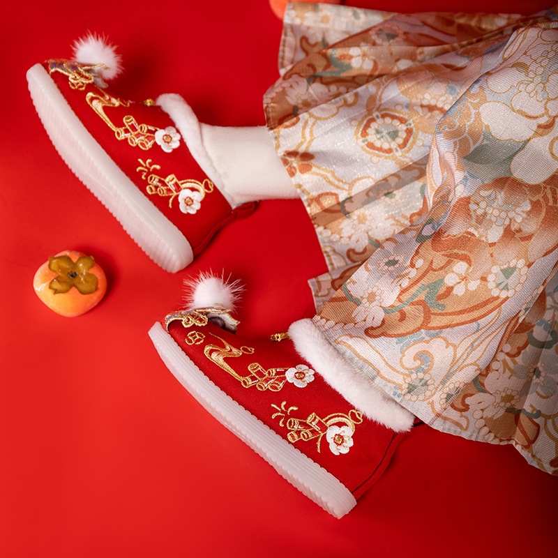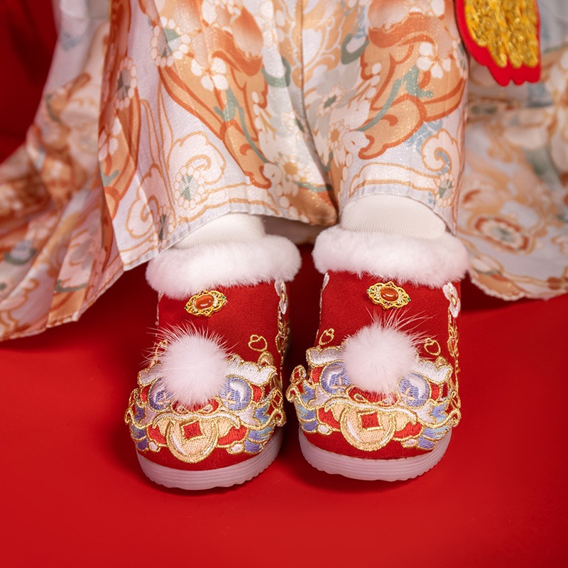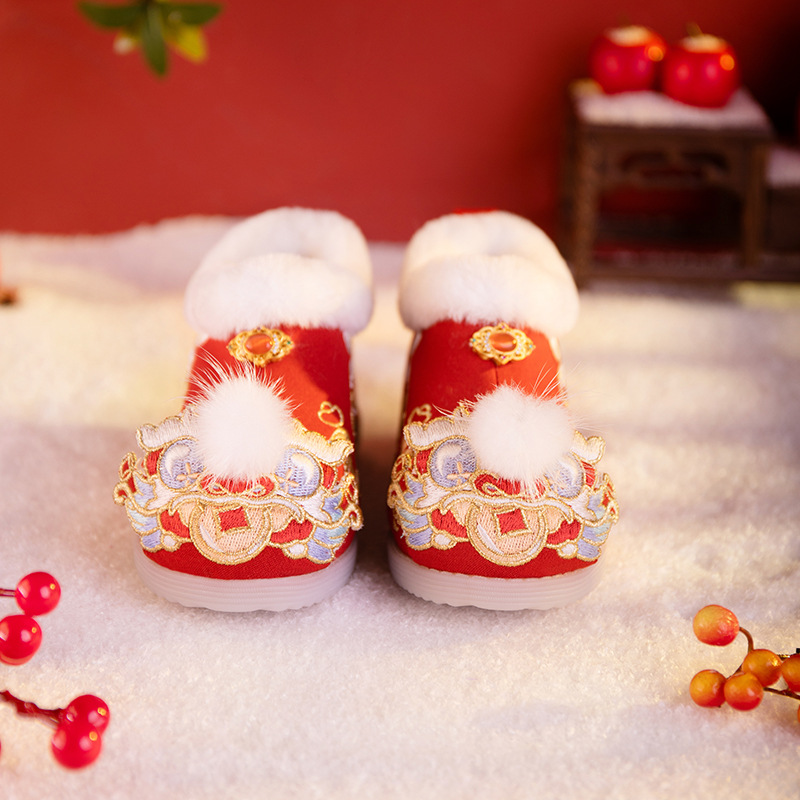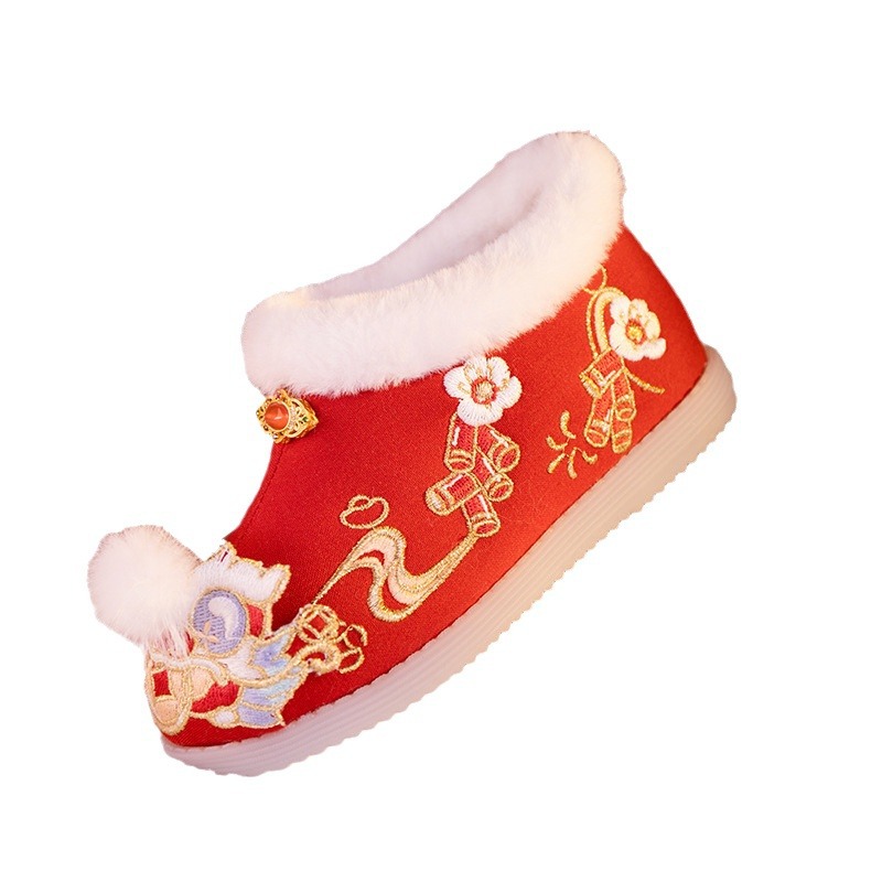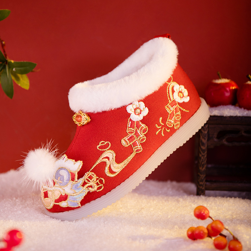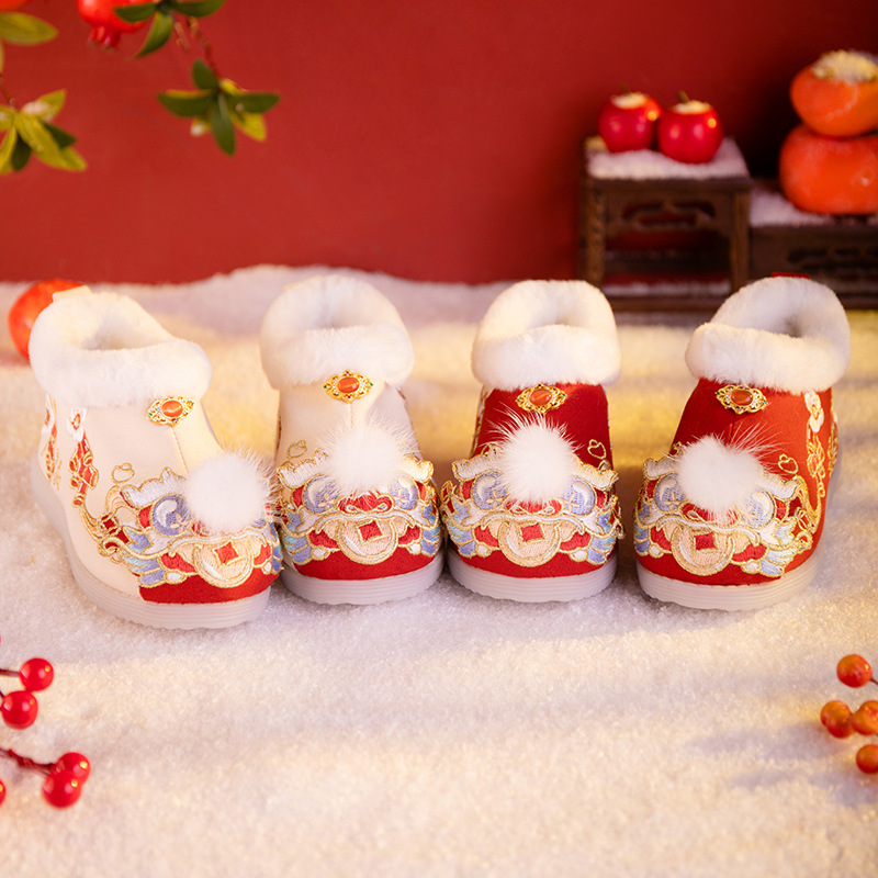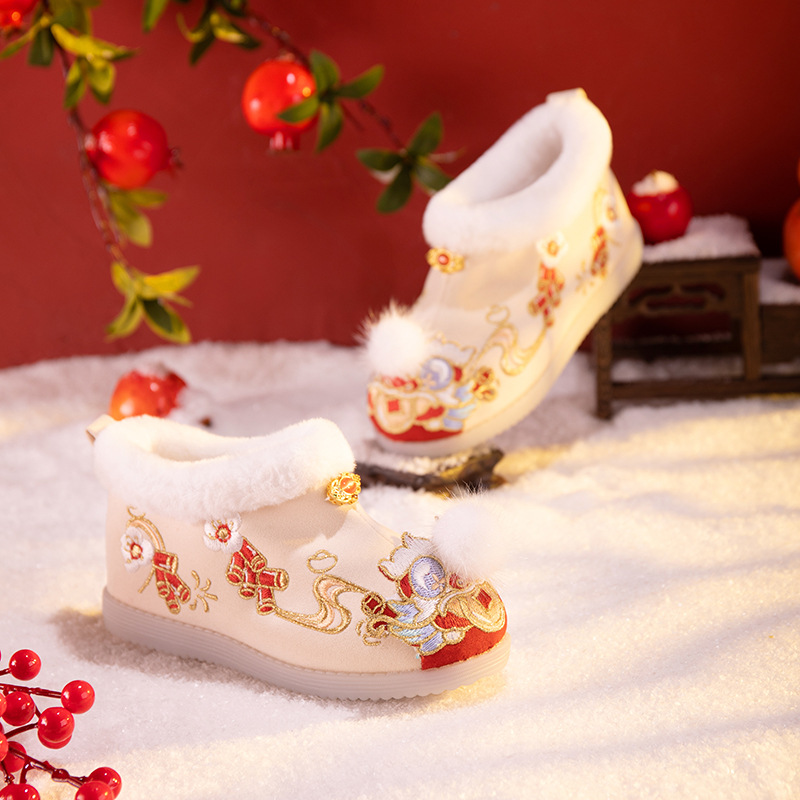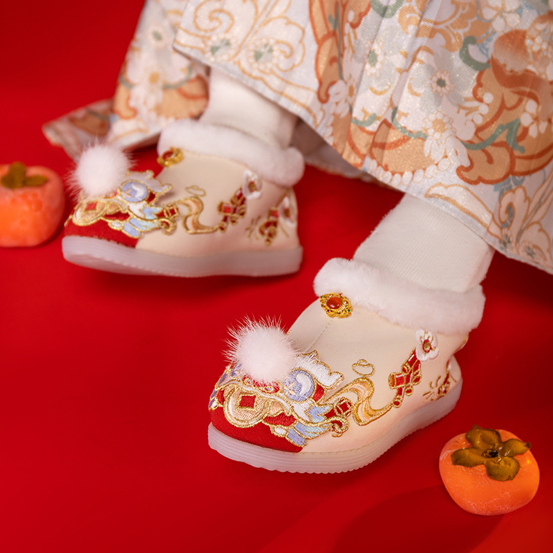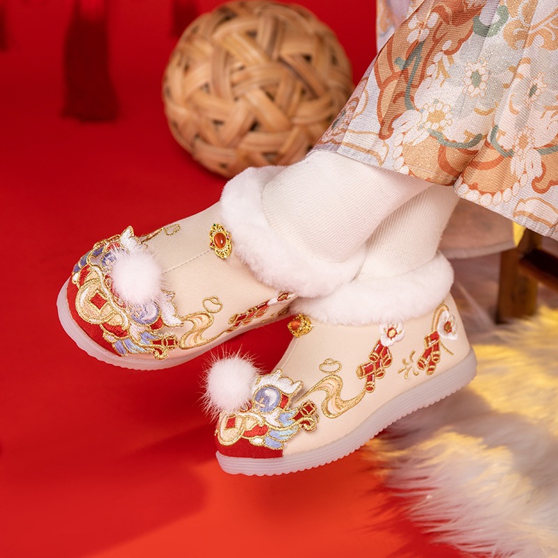 Золотой Дракон: Новинка Зимы 2023 – Праздничные Туфли Ханьфу в Стиле Древних Времен, Вышитые Тканевые Туфли для Танцев для Девочек, Год Дракона