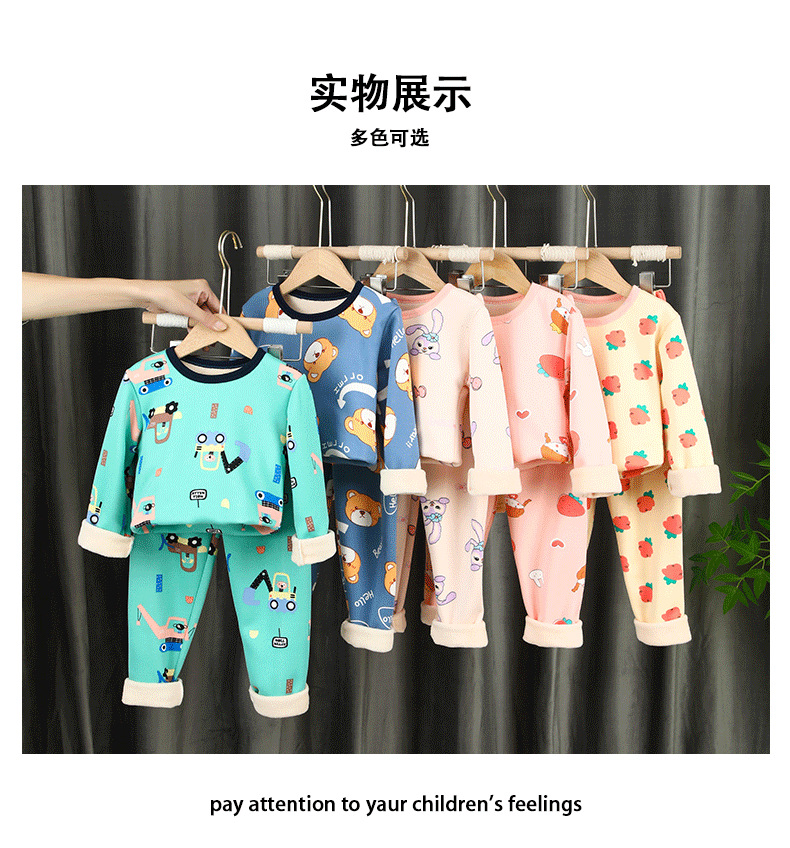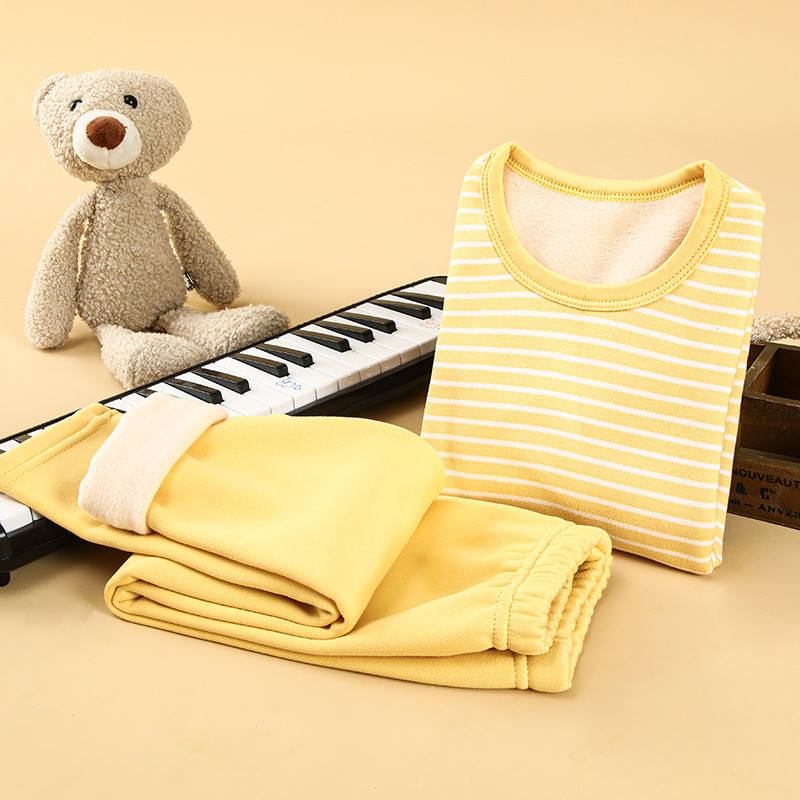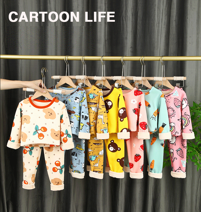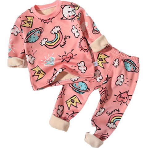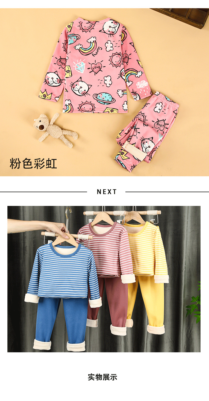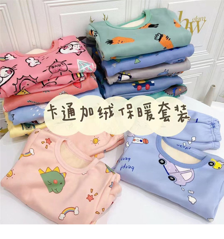 Осенне-зимний детский костюм с утолщенным базовым термобельем на флисовой подкладке, пижамы с героями мультфильмов для мальчиков и девочек, домашняя одежда, осенняя одежда и брюки